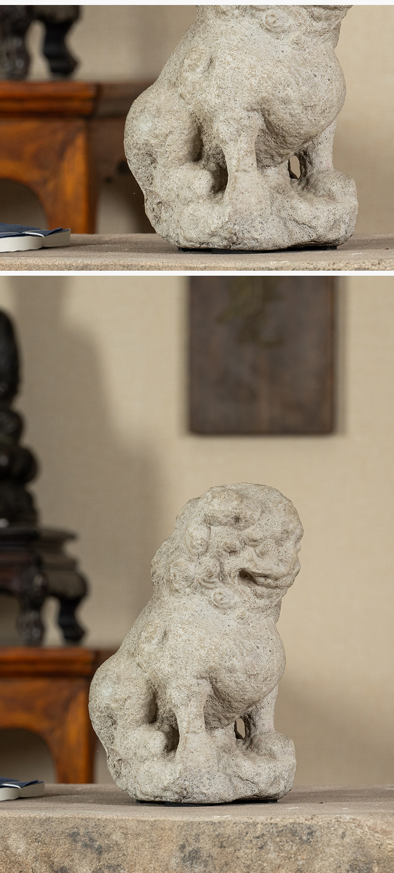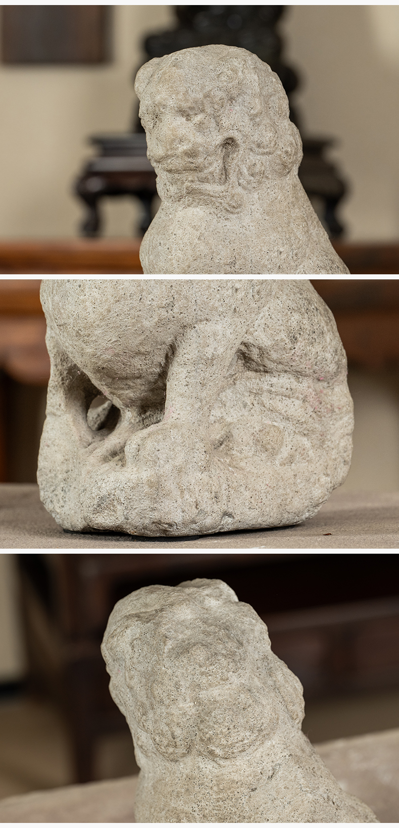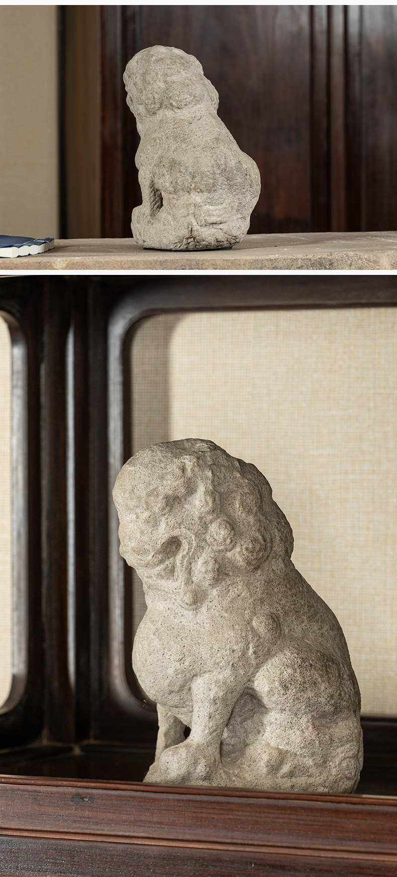 清 石雕狮子案头摆件