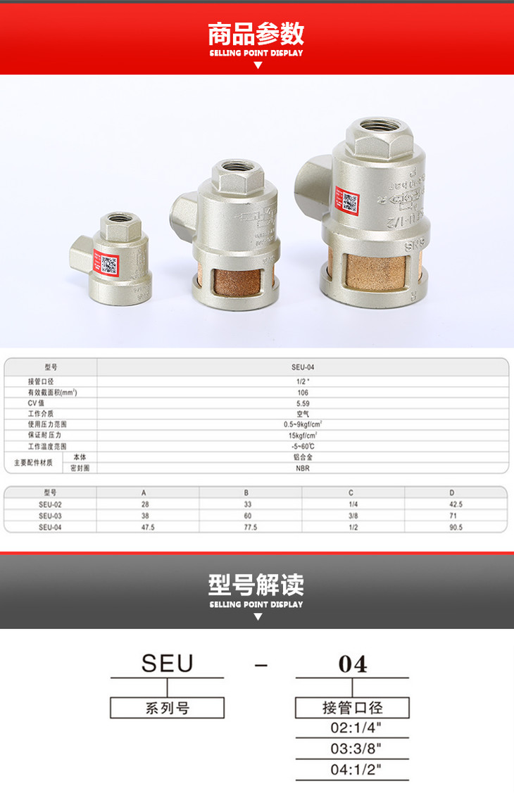 SNS神驰气动元件 SEU系列快速排气阀门 泄气阀 铝合金