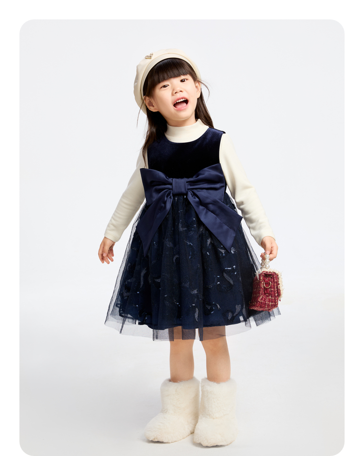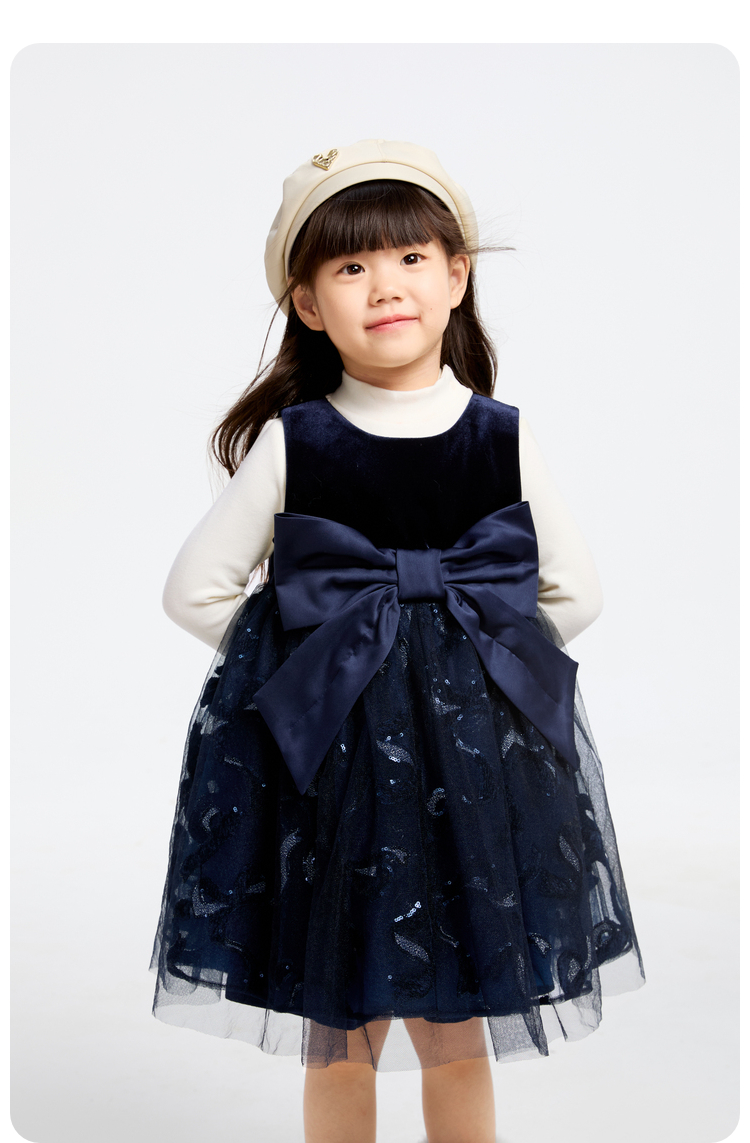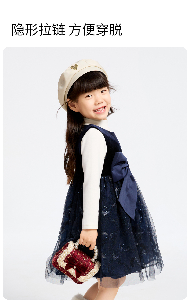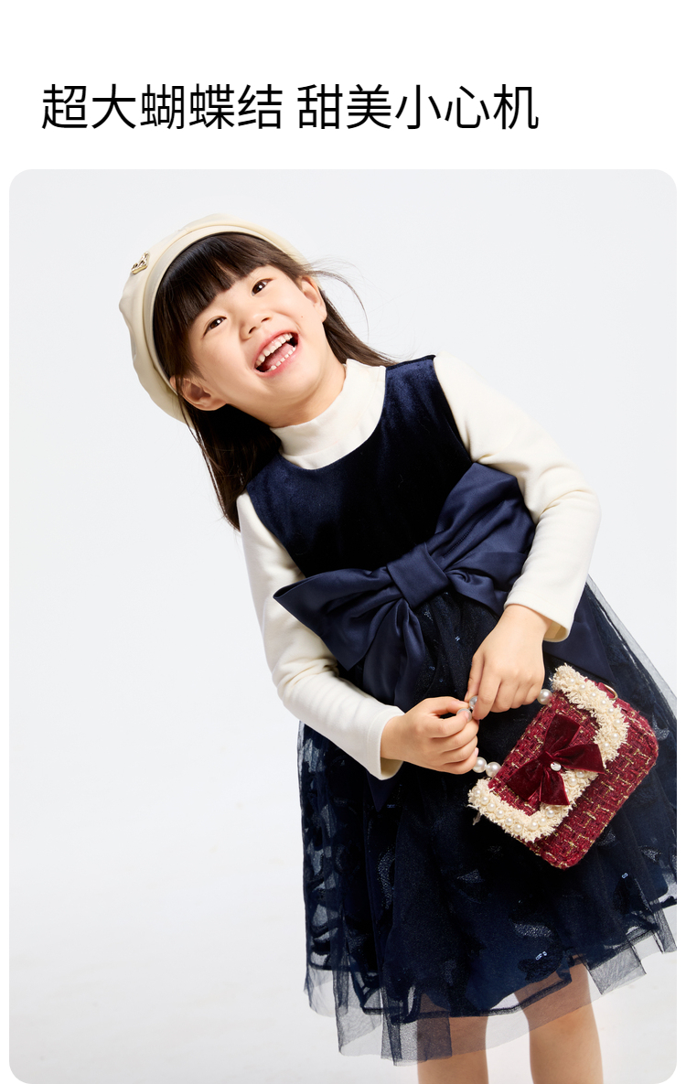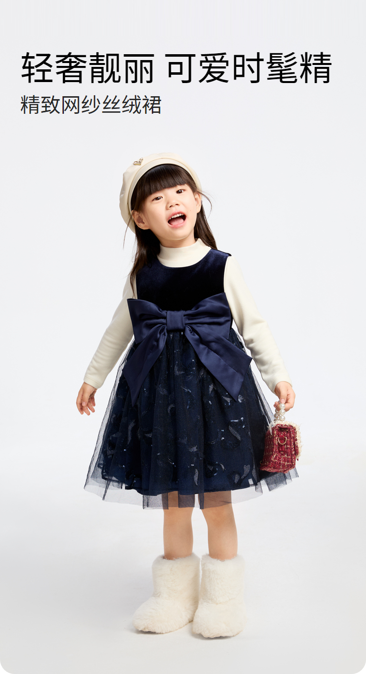 女童精致网纱丝绒裙冬季新款安奈儿童装实体店同款XG443759