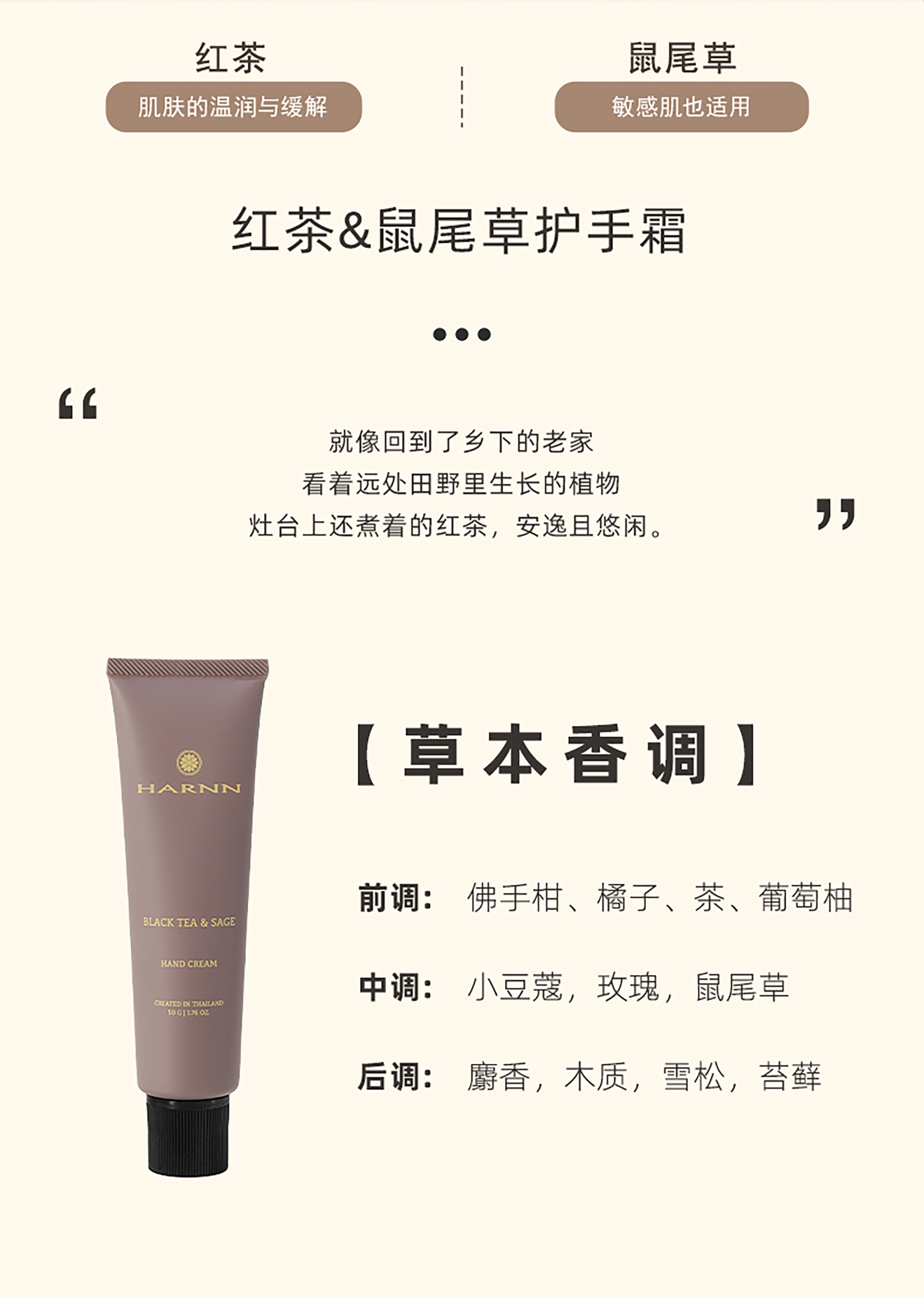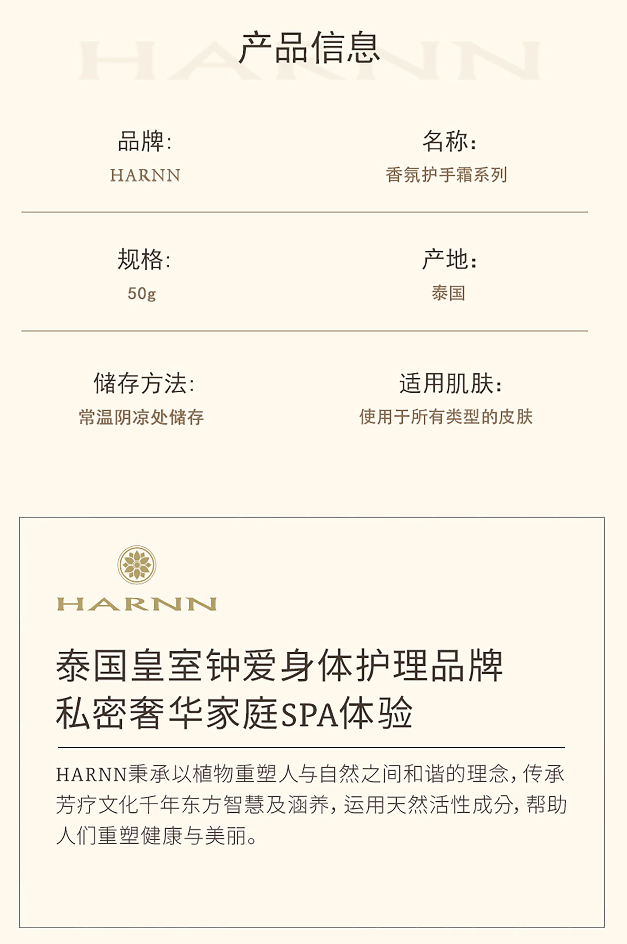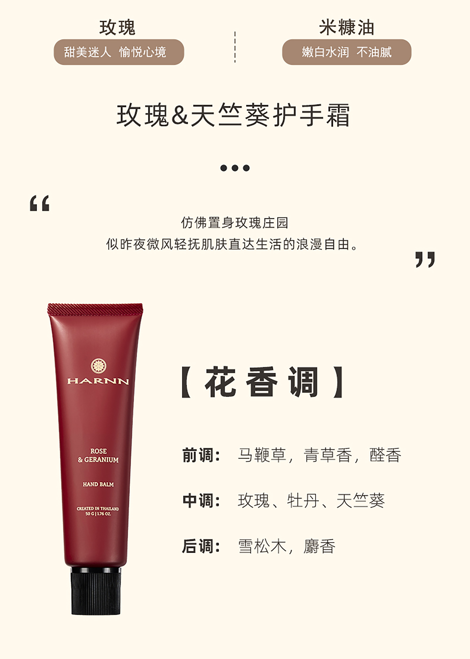HARNN泰国 香氛精油护手霜50g补水保湿滋润手部护理留香