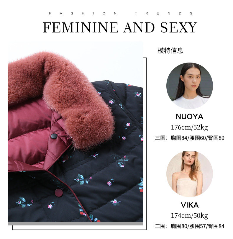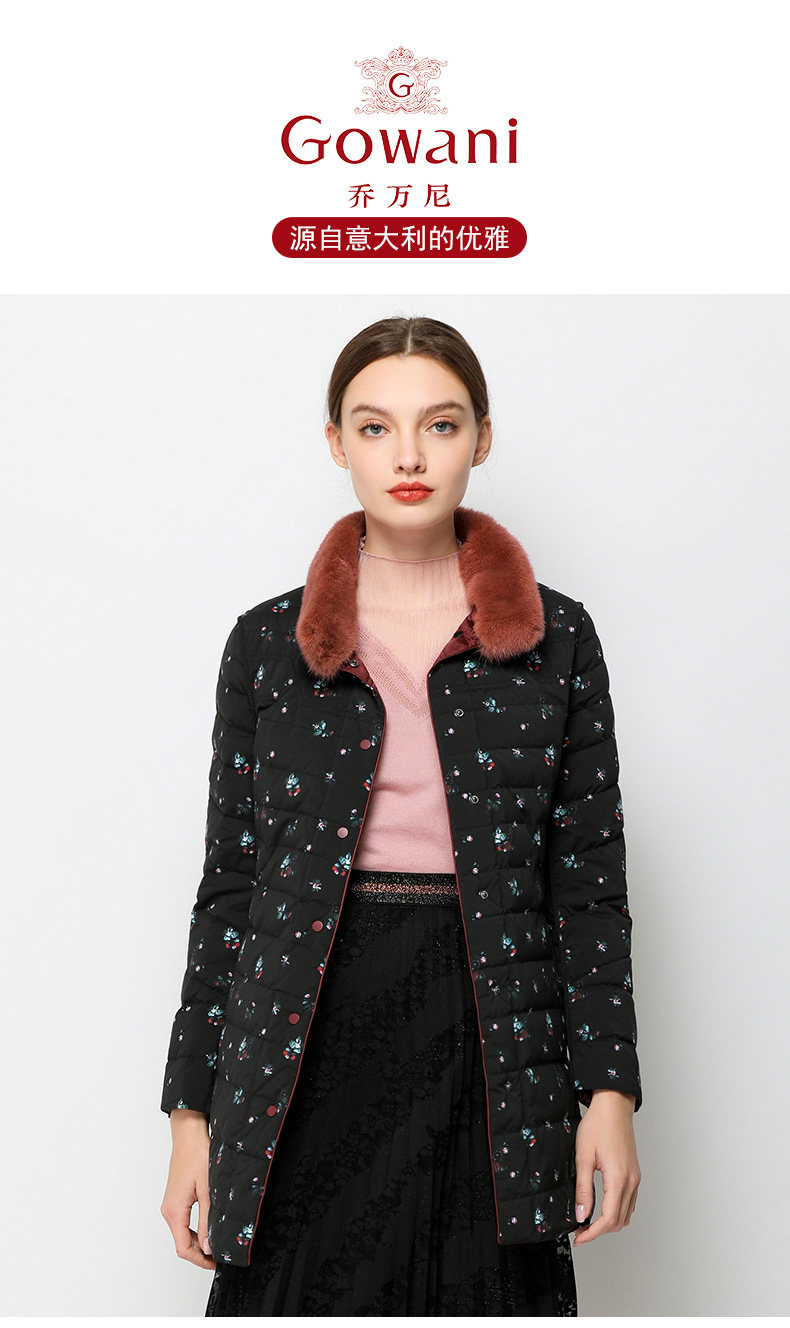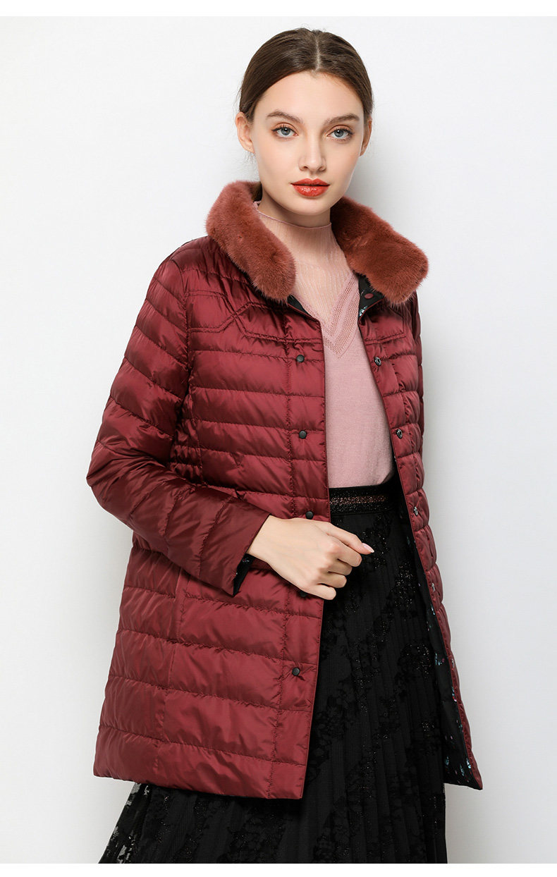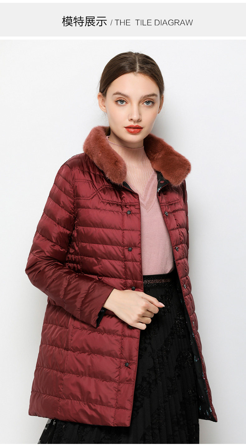 乔万尼羽绒服女修身保暖两面穿中长款水貂毛领韩版潮EN4T858