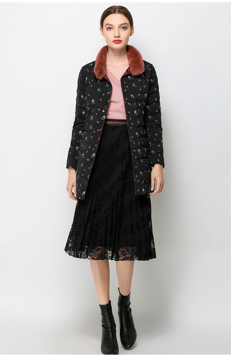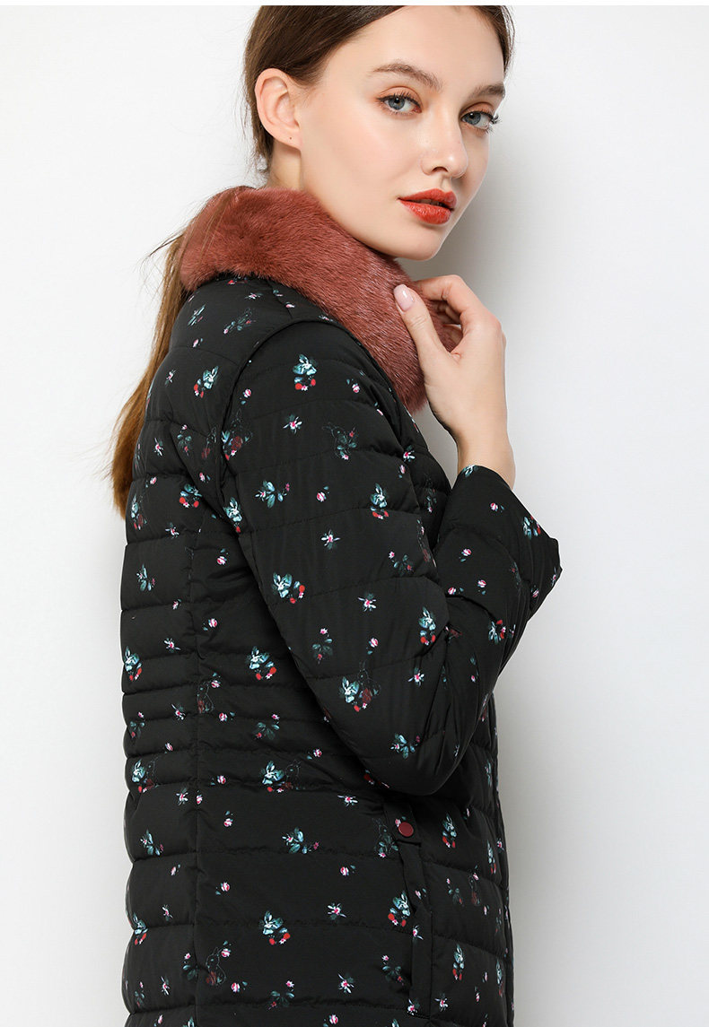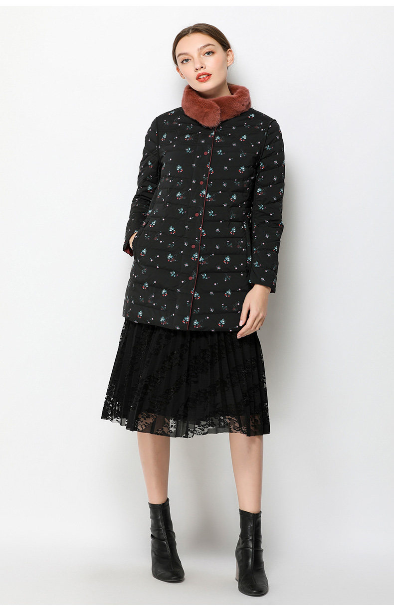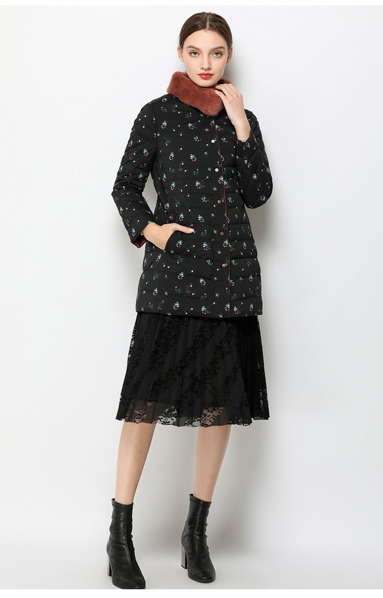 乔万尼羽绒服女修身保暖两面穿中长款水貂毛领韩版潮EN4T858
