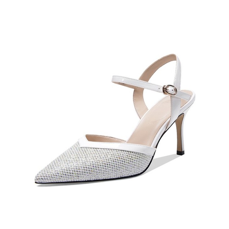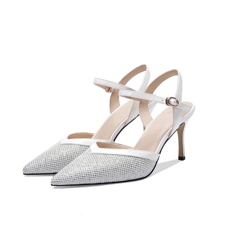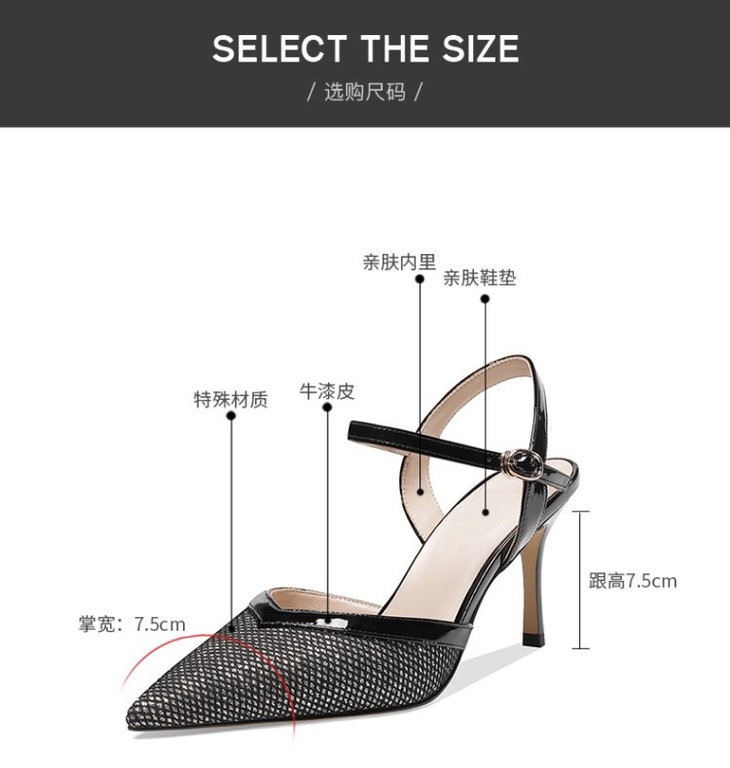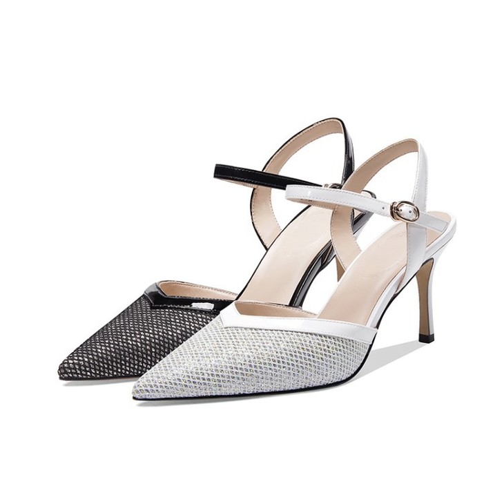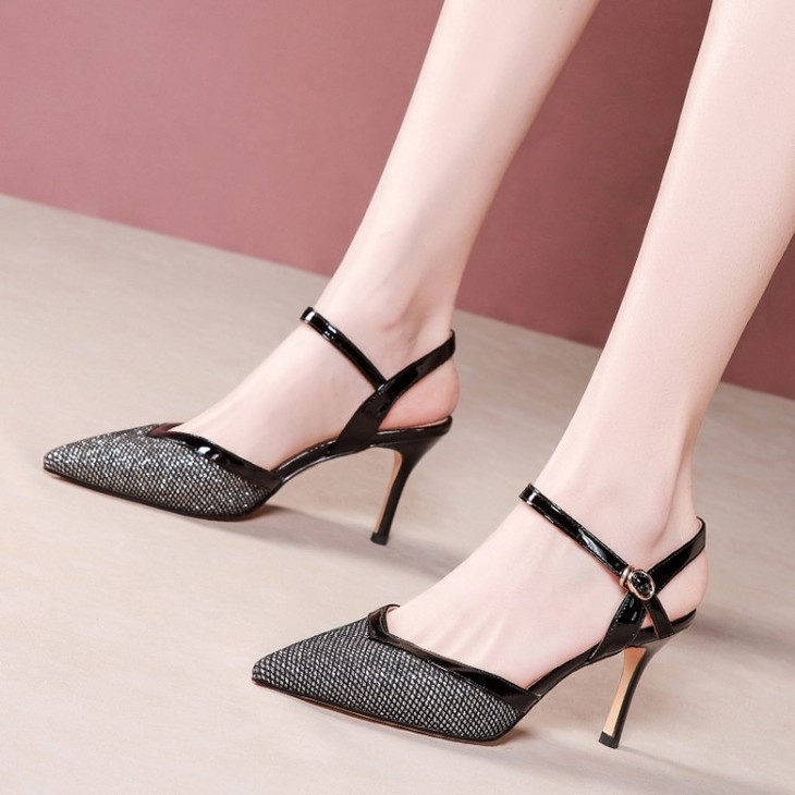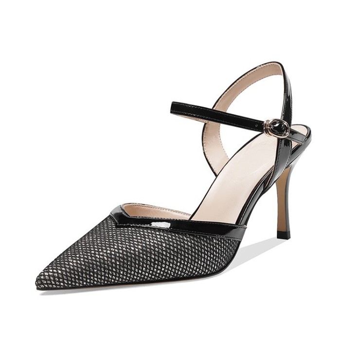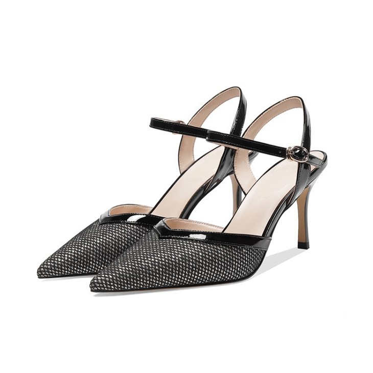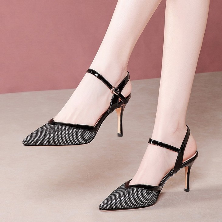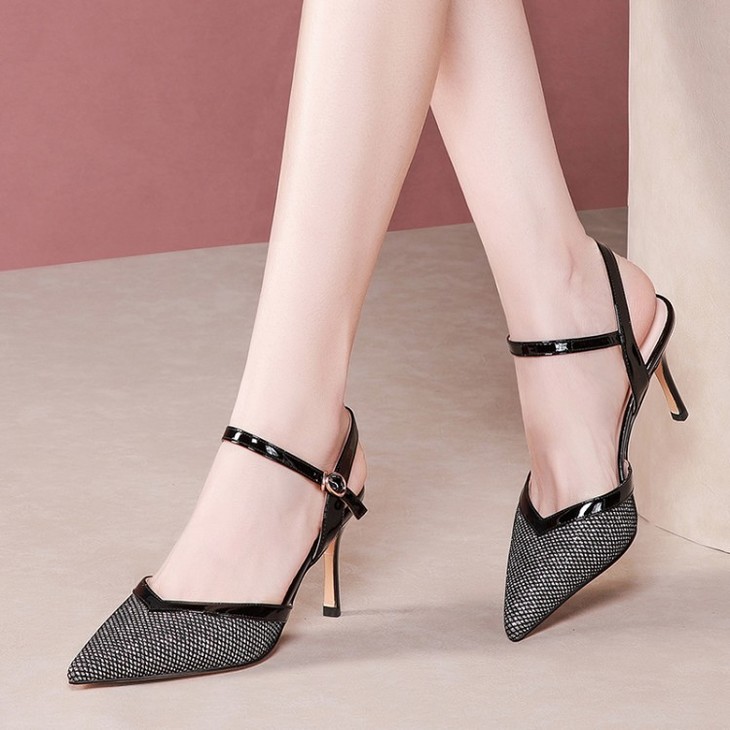 OLD-6185拼色百搭一字扣尖头高跟细跟包头凉鞋