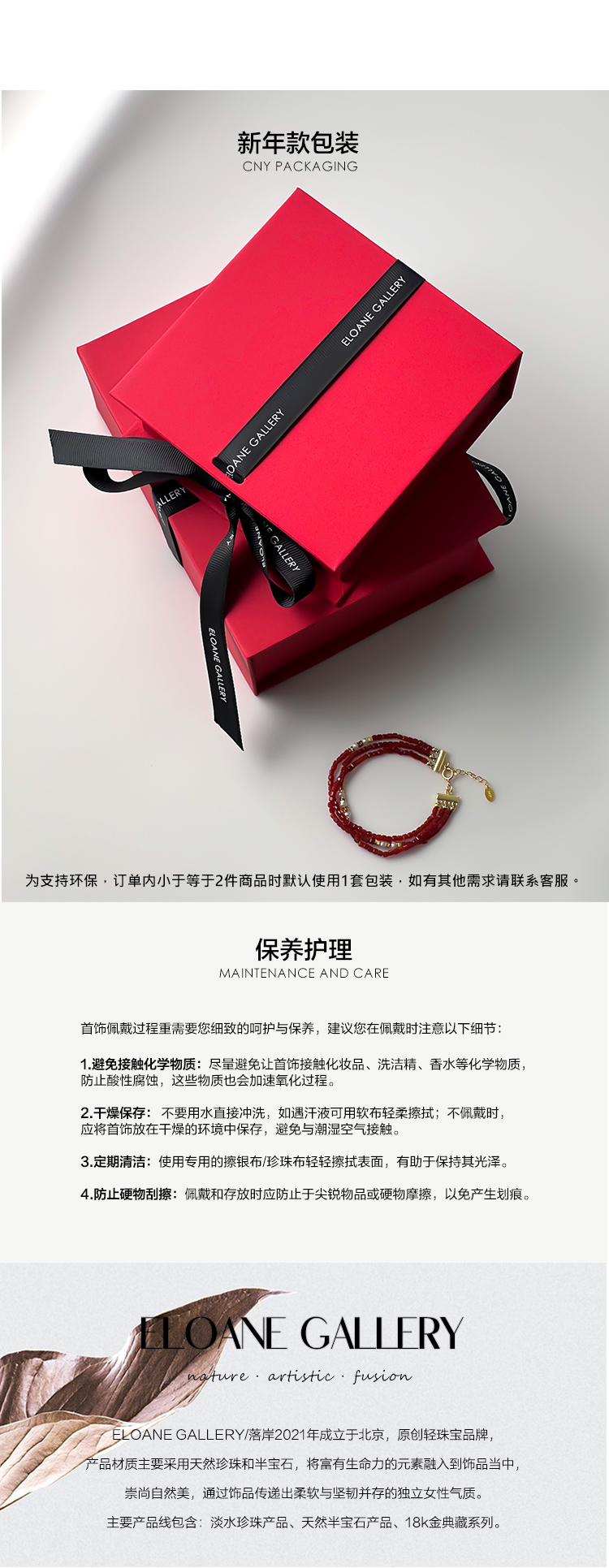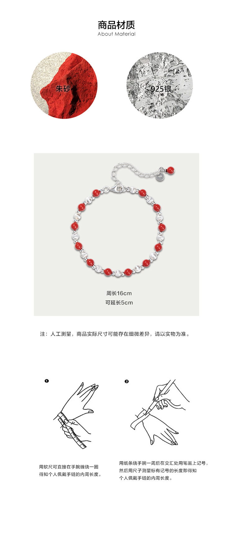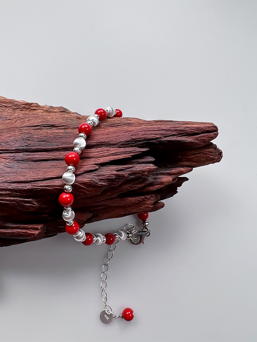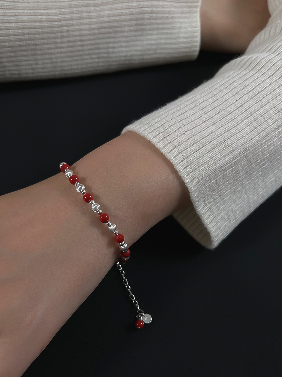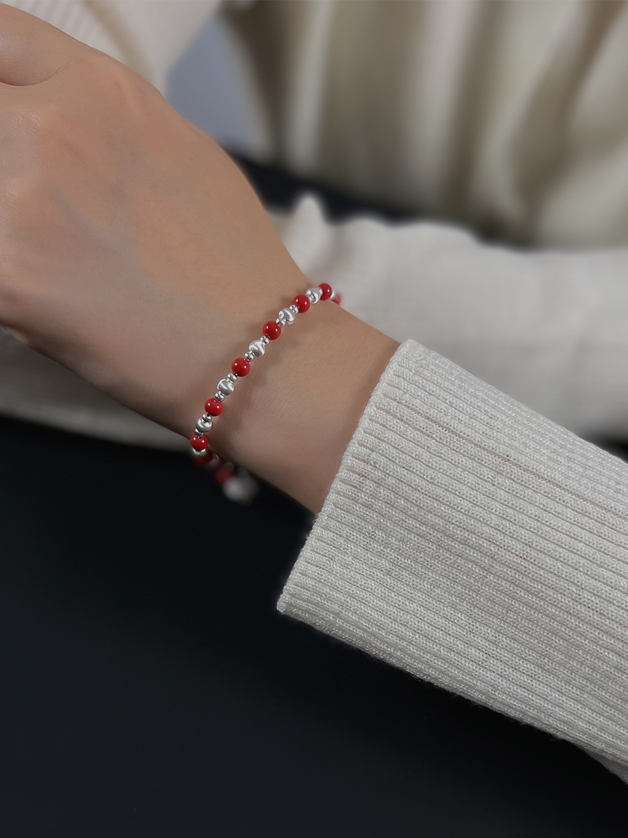 ELOANE GALLERY落岸天然朱砂间隔纯银猫眼珠红色手链(7天内发货)