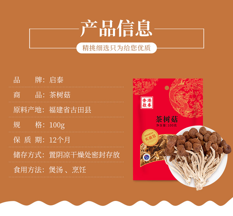 香港啟泰茶树菇干货100g不开伞福建古田菌菇山珍南北干货煲汤食材