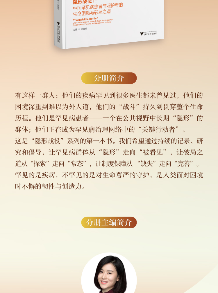 这是“隐形战役”系列的第一本书。我们希望通过持续的记录、研究和倡导,让罕见病群体从“隐形”走向“被看见”,让破局之道从“探索”走向“常态”,让制度保障从 “缺失”走向“完善”。
