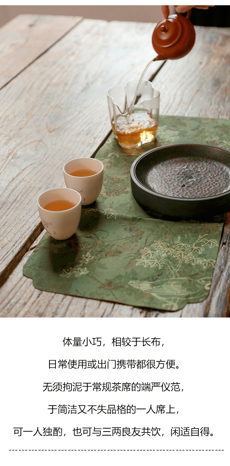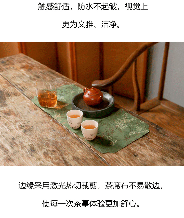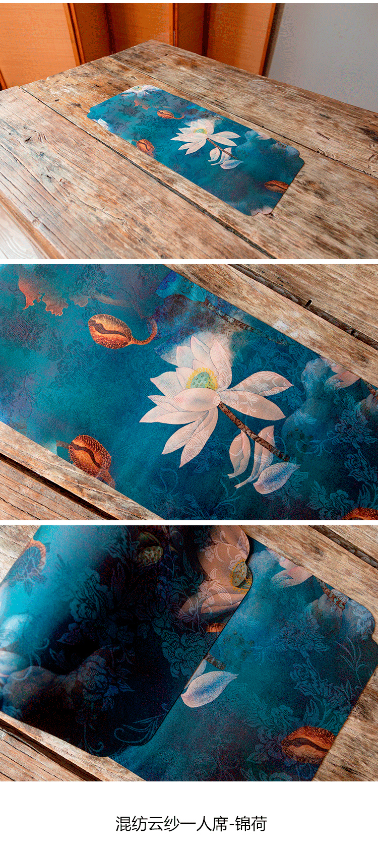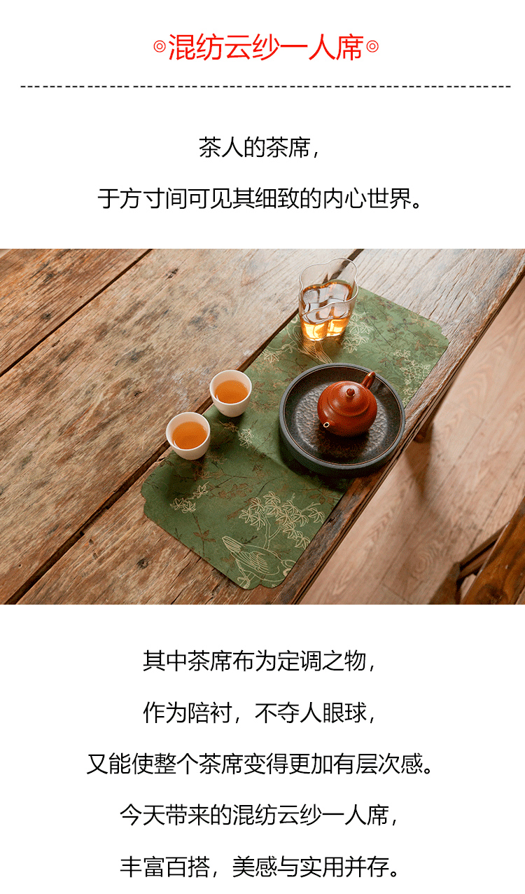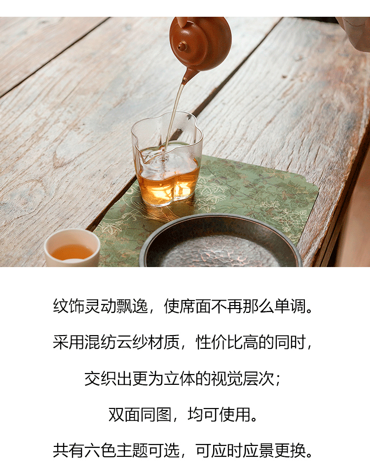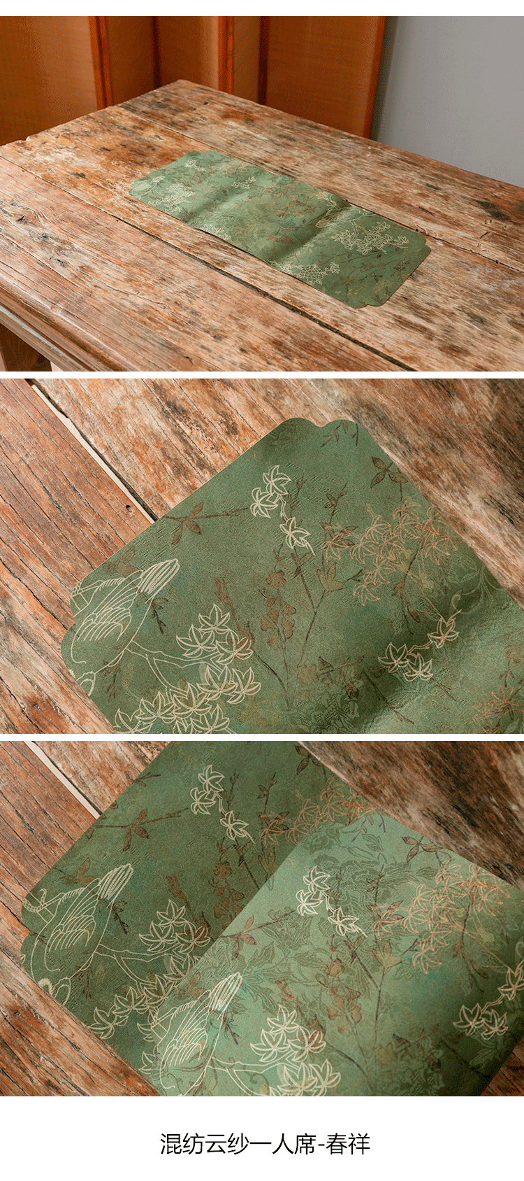 茶香记 混纺云纱一人席 六种花色 精致典雅 双面可用 携带方便 百搭好用 题材丰富 性价比高