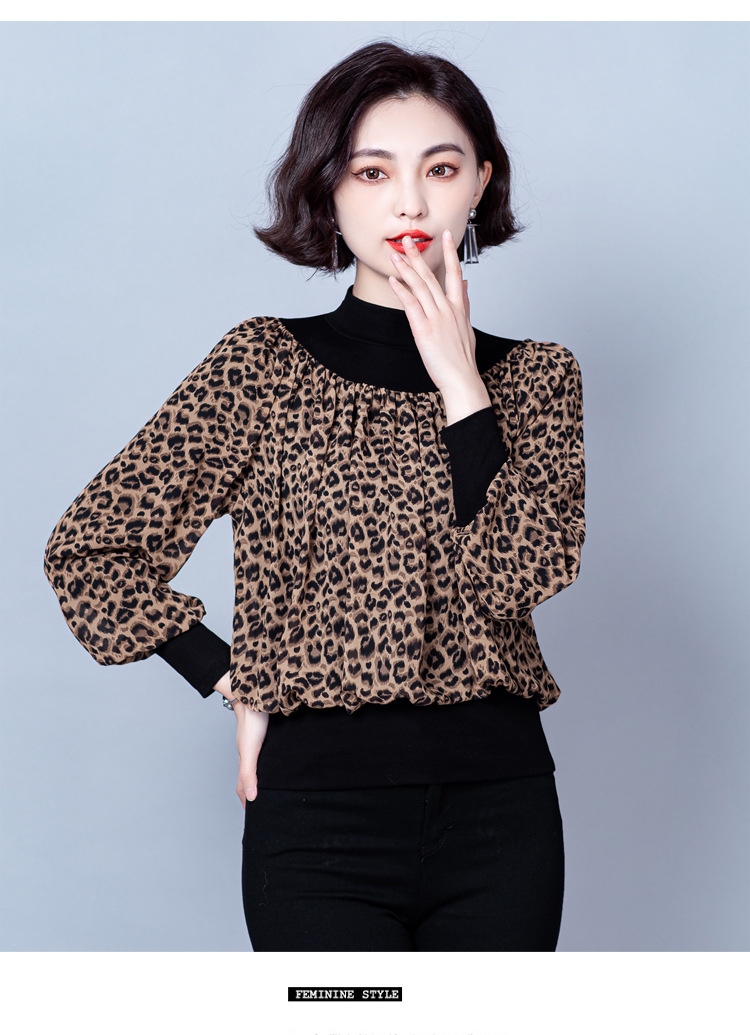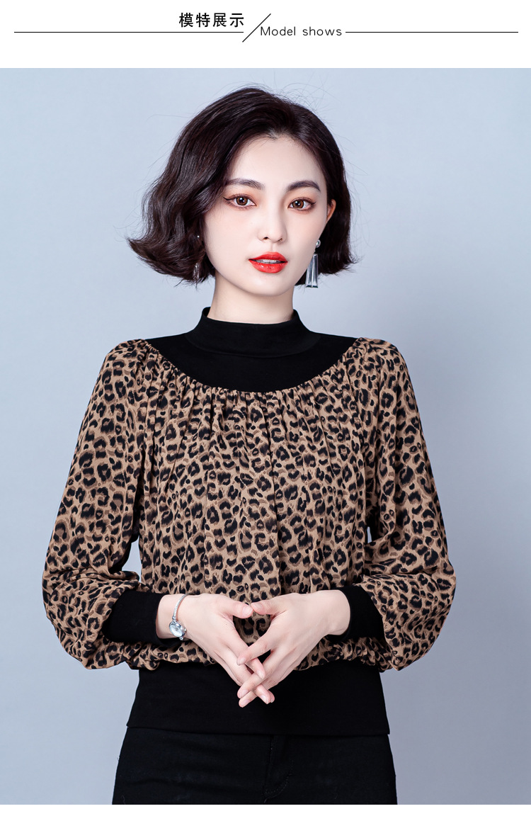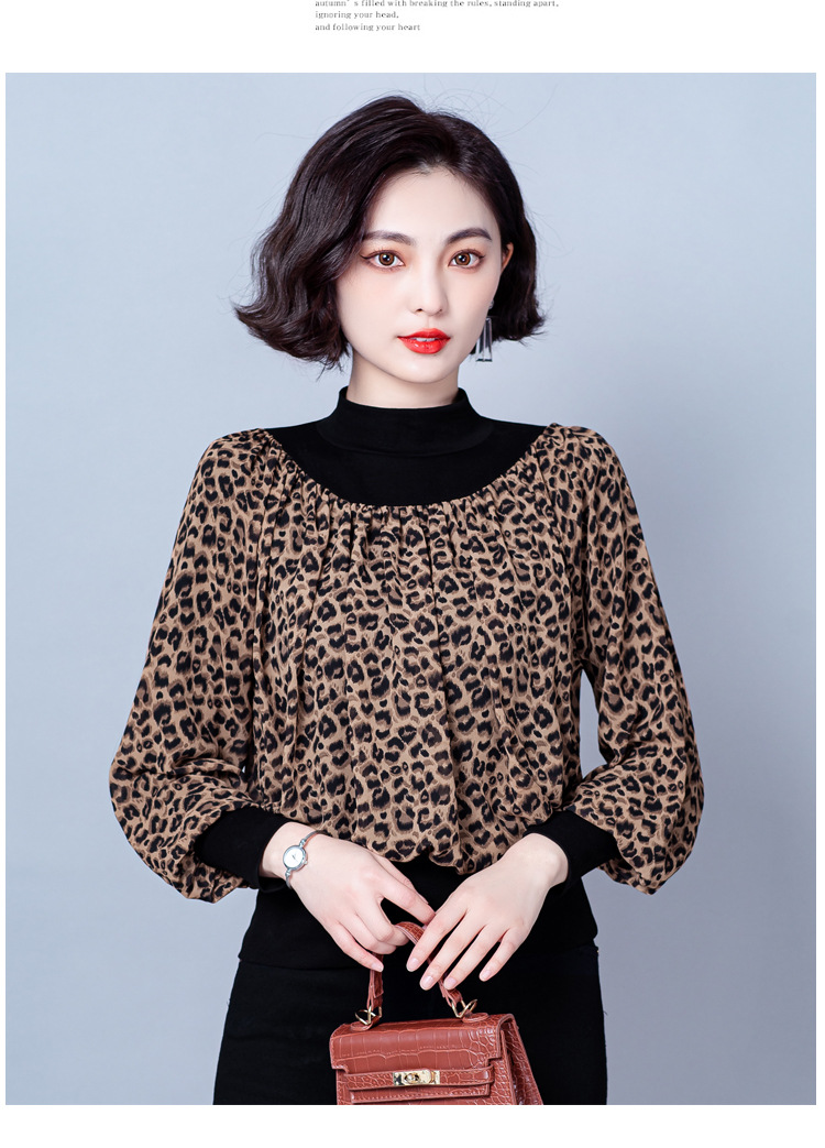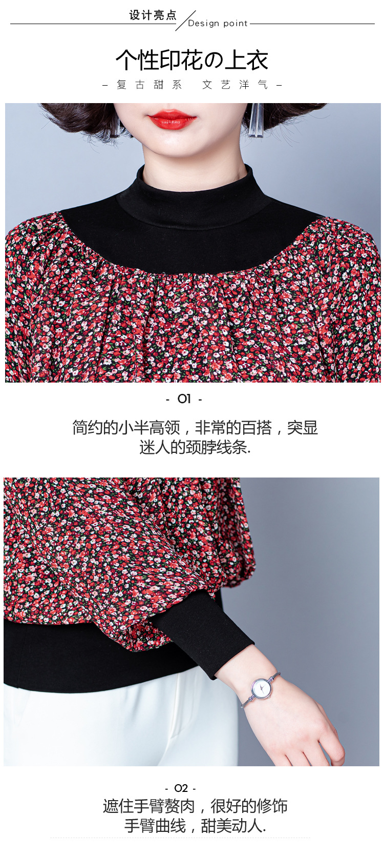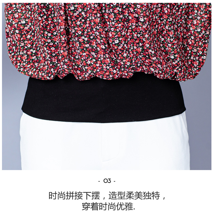 NY 65226时尚洋气半高领拼接宽松遮肉显瘦碎花上衣