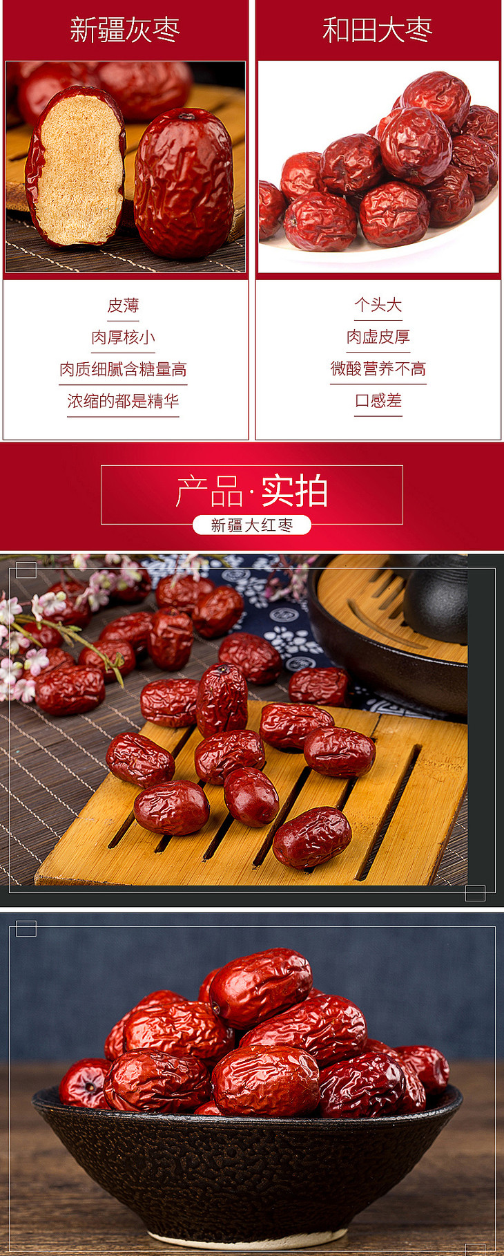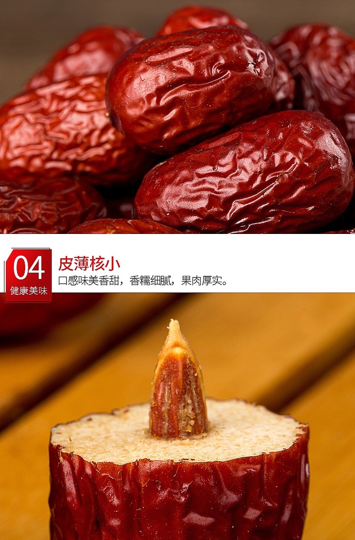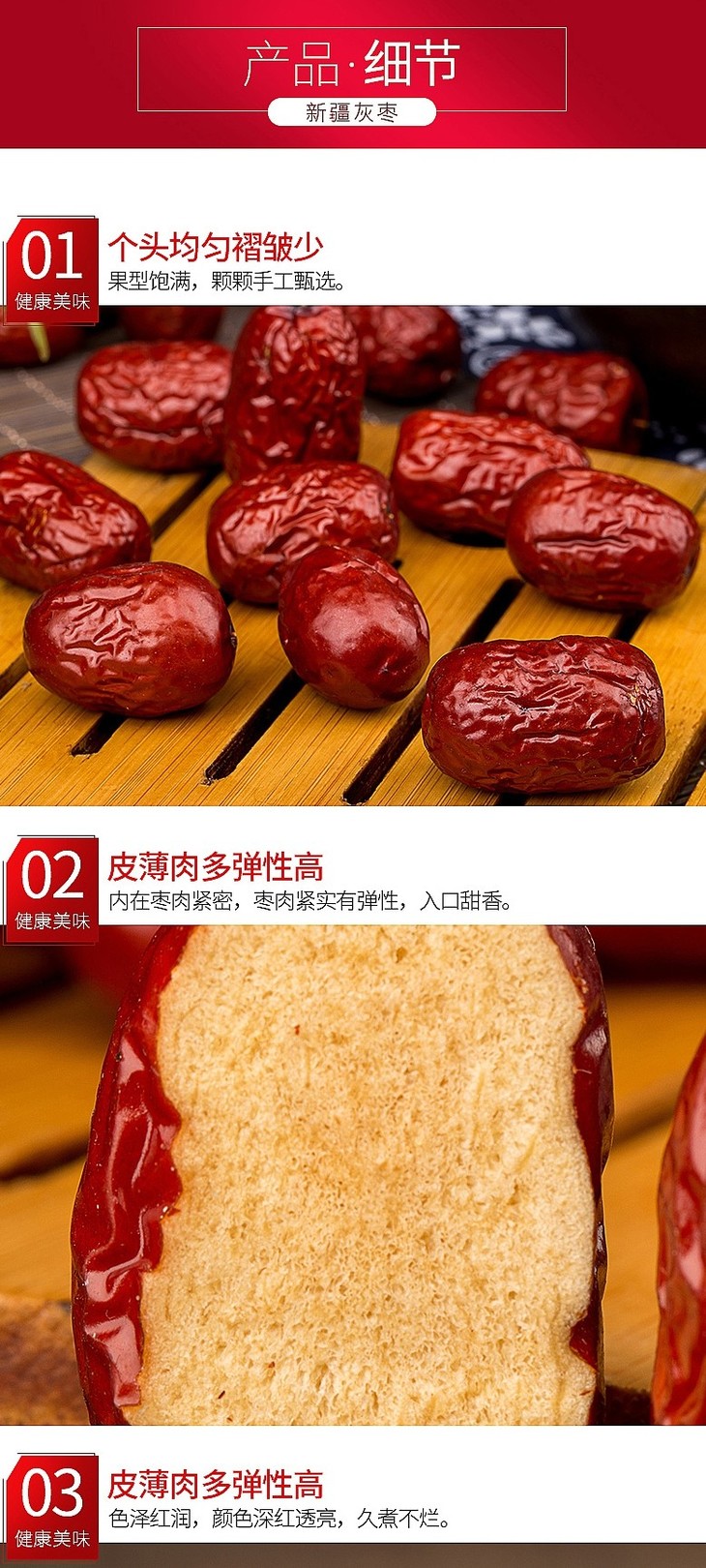 【产品介绍】若羌名气红枣若羌灰枣,不是因为枣上有灰,而是因为若羌枣在成熟变红之前,通体发灰,好似挂了一层霜,所以得名"灰枣”口感纯甜,若羌枣果皮极薄,丝毫没有感,果肉绵密有嚼劲,一颗甜蜜芬芳,两颗口留余香,每天吃几颗,皮肤红润有光泽!
