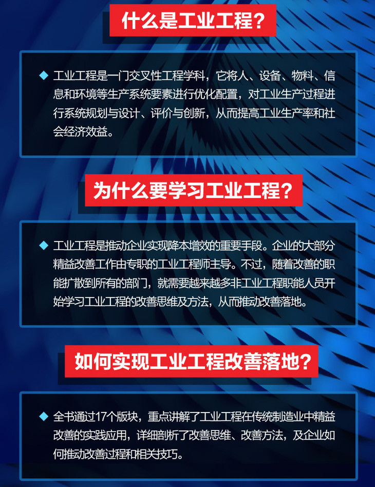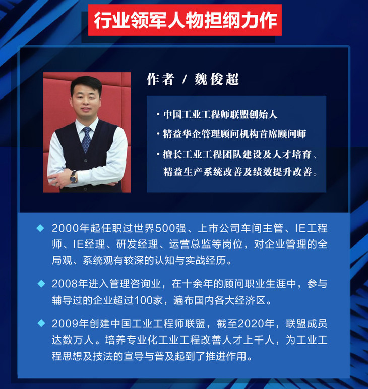 如今我们可以通过无数的渠道来获得知识,但如果对工业工程缺乏实践与研究,你会发现许多知识过于零散,不成系统。工业工程由于知识范围过广,更会让人不知所措。近20年的工业工程实践经验,再加上服务上百家制造企业的经历,使我相对比较了解大多数制造企业的改善需求。同时,由于平时与国内工业工程师朋友们的交流甚多,这使我能够掌握个人能力与企业需求之间的差异点。