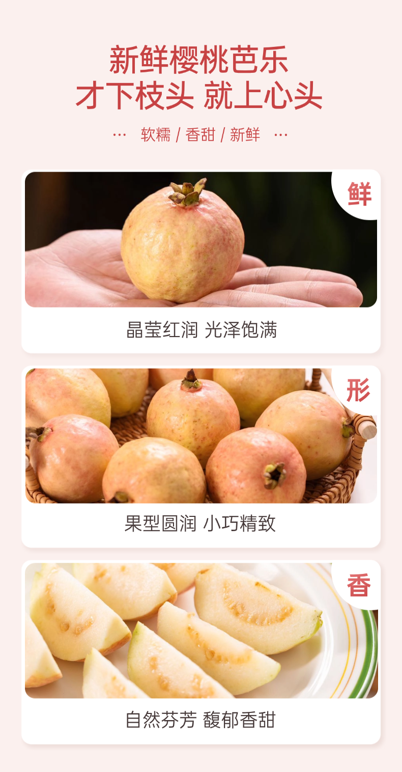 【斌哥优选】樱桃芭乐。秋冬限定的美味。绵密丝滑的奶油口感,个头偏小,是迷你芭乐。收到就软糯的,放冰箱哦