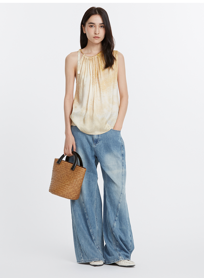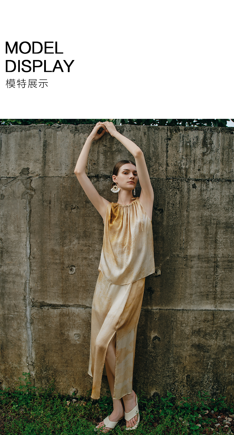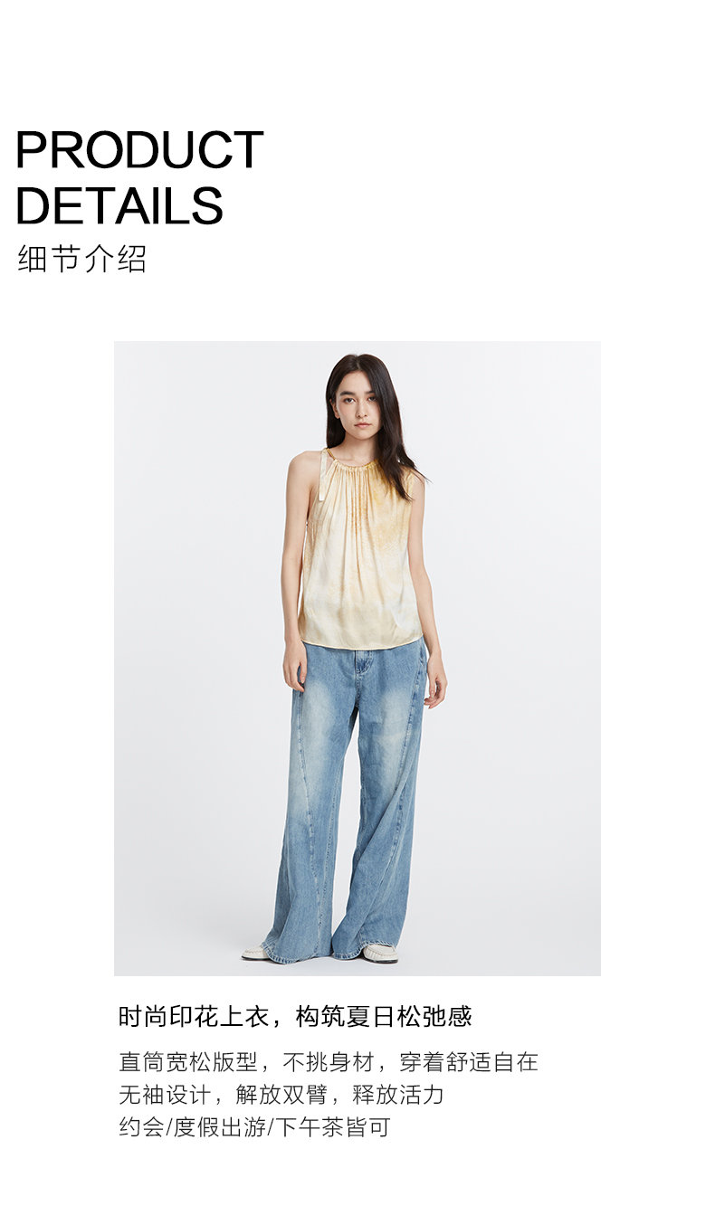 VIMAGE纬漫纪设计感晕染印花显瘦无袖T恤上衣2025夏季新款V2313917