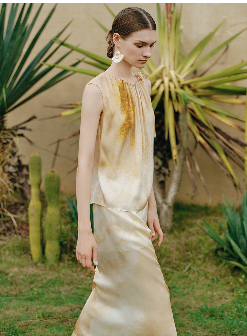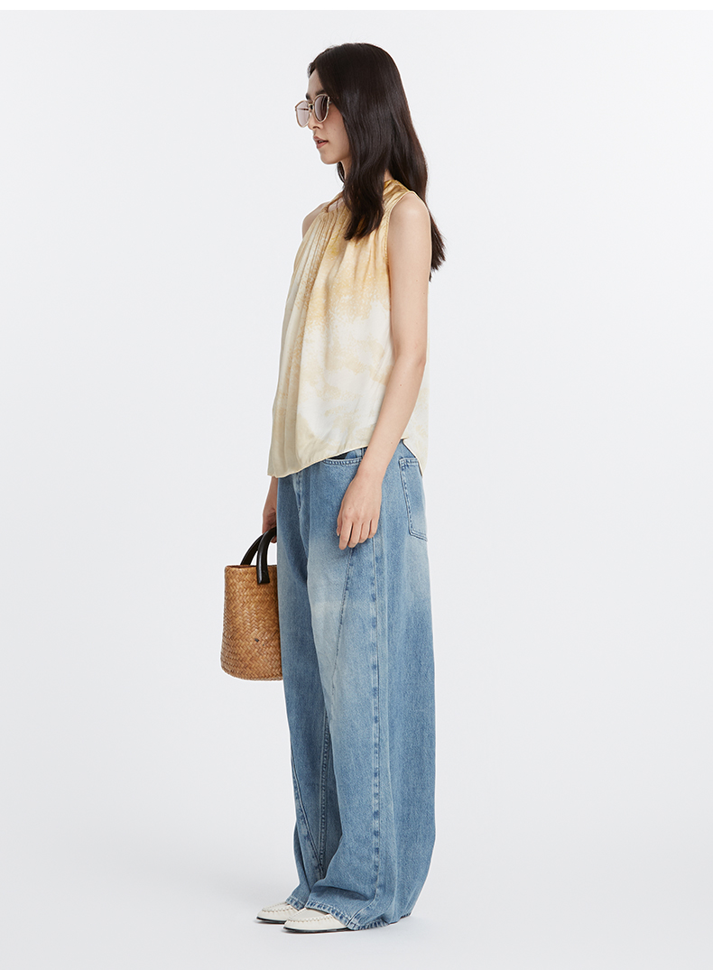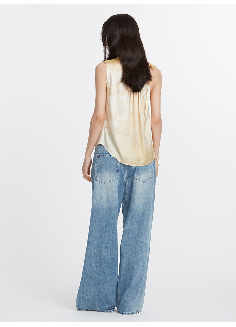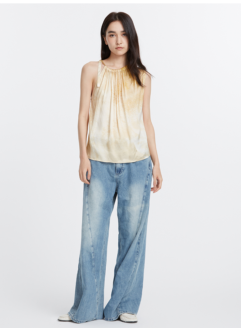 VIMAGE纬漫纪设计感晕染印花显瘦无袖T恤上衣2025夏季新款V2313917