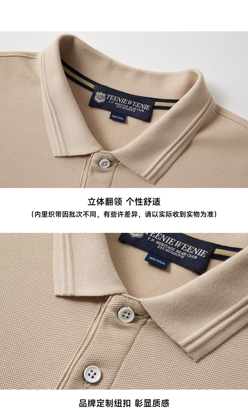 【大都会】TeenieWeenie小熊男装POLO衫T恤男2024秋季白色休闲翻领短袖上衣