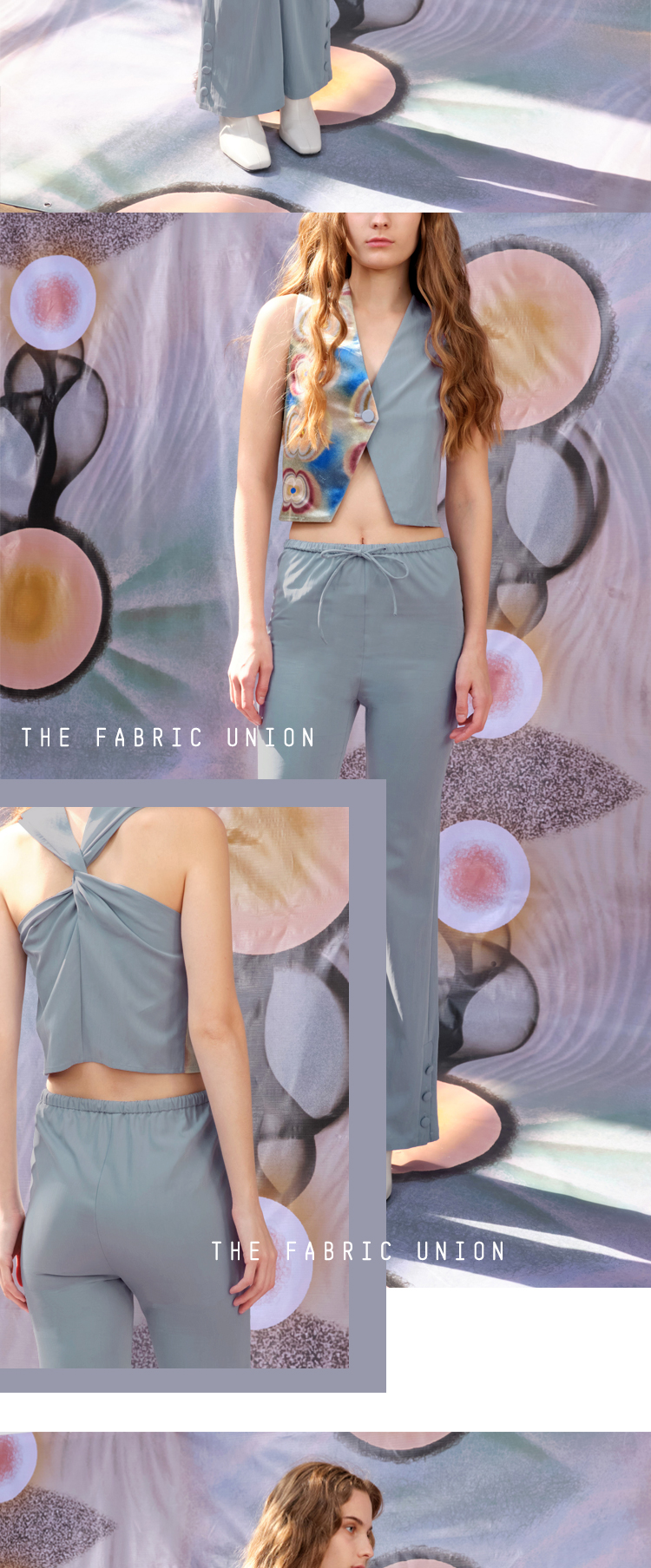 THE FABRIC UNION背部扭结马甲休闲微喇叭裤