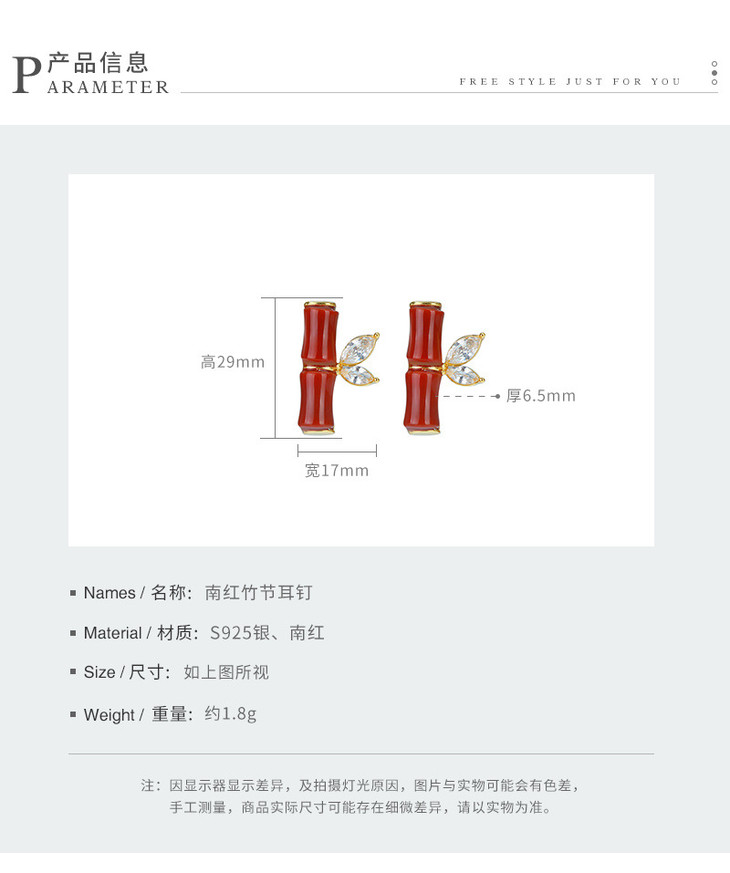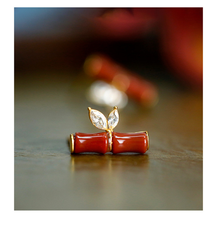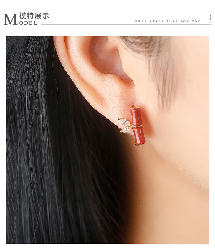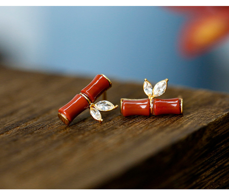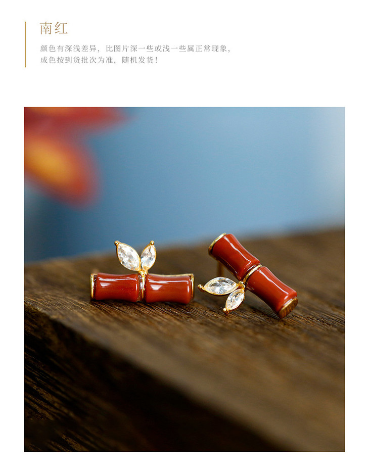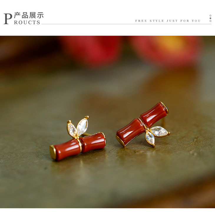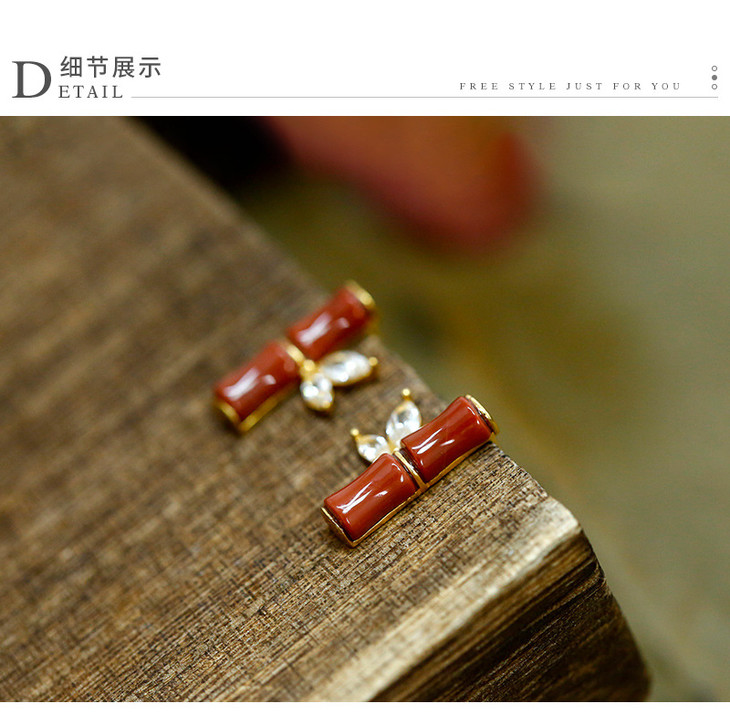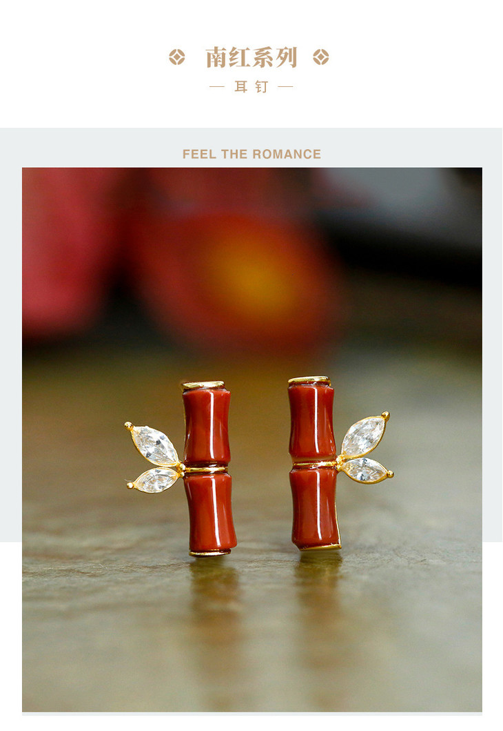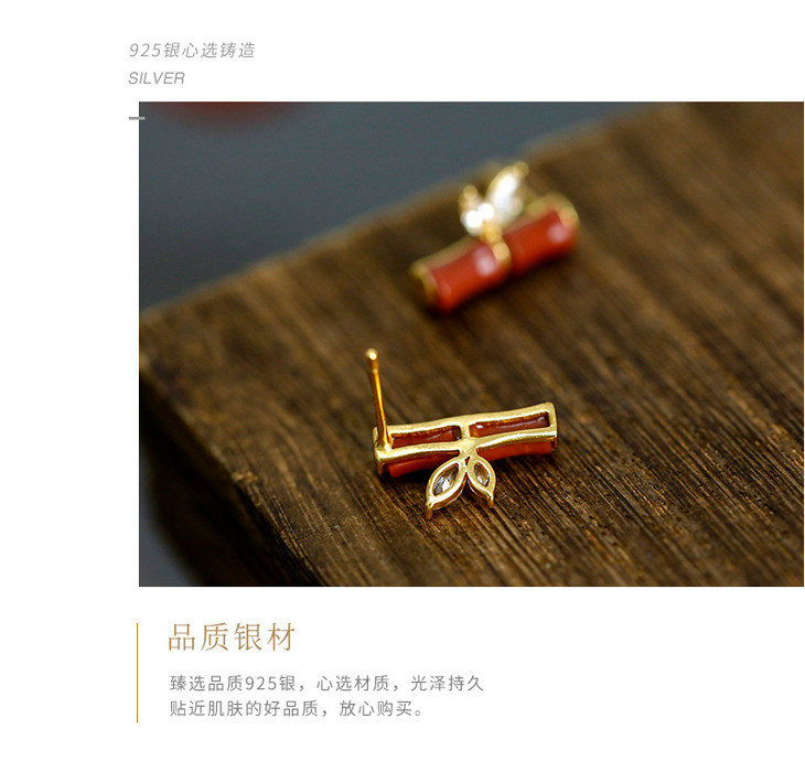 古风潮流,S925银镶南红玛瑙竹节仙女耳饰爆款HBL-008