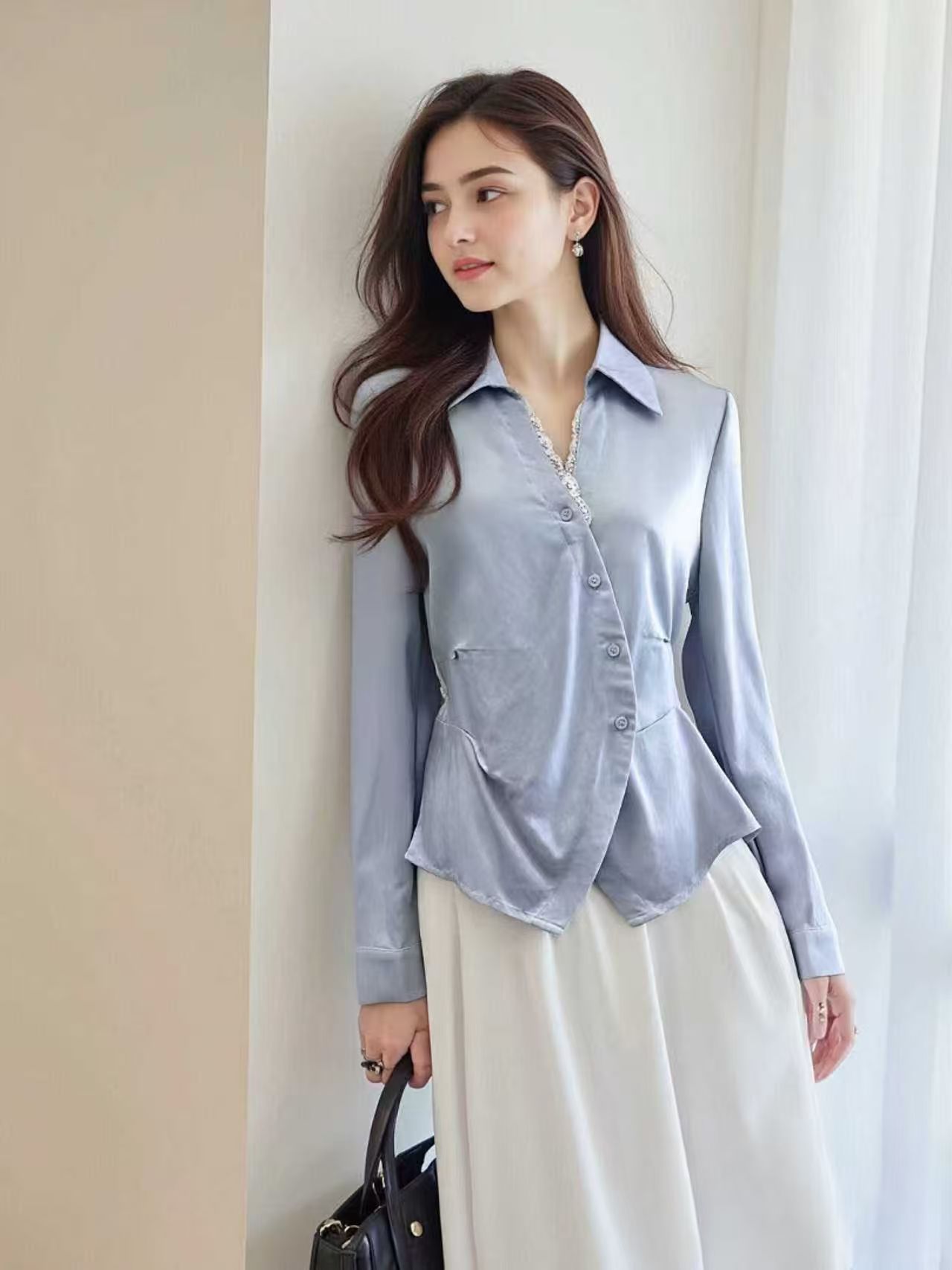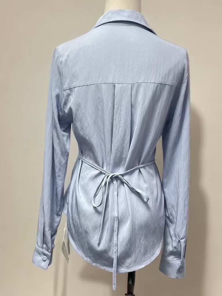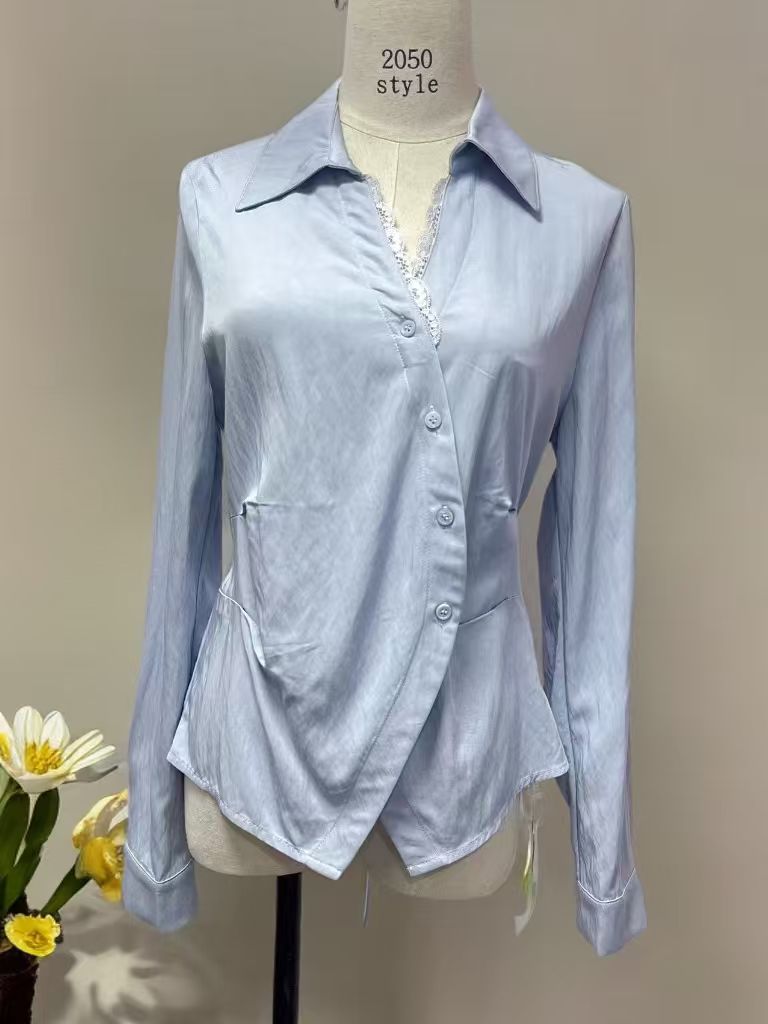 冰点价!仅限11.11!退货勿拍【秋新品】维纳真蒂2829蕾丝V领系带衬衫-喜出