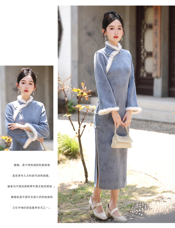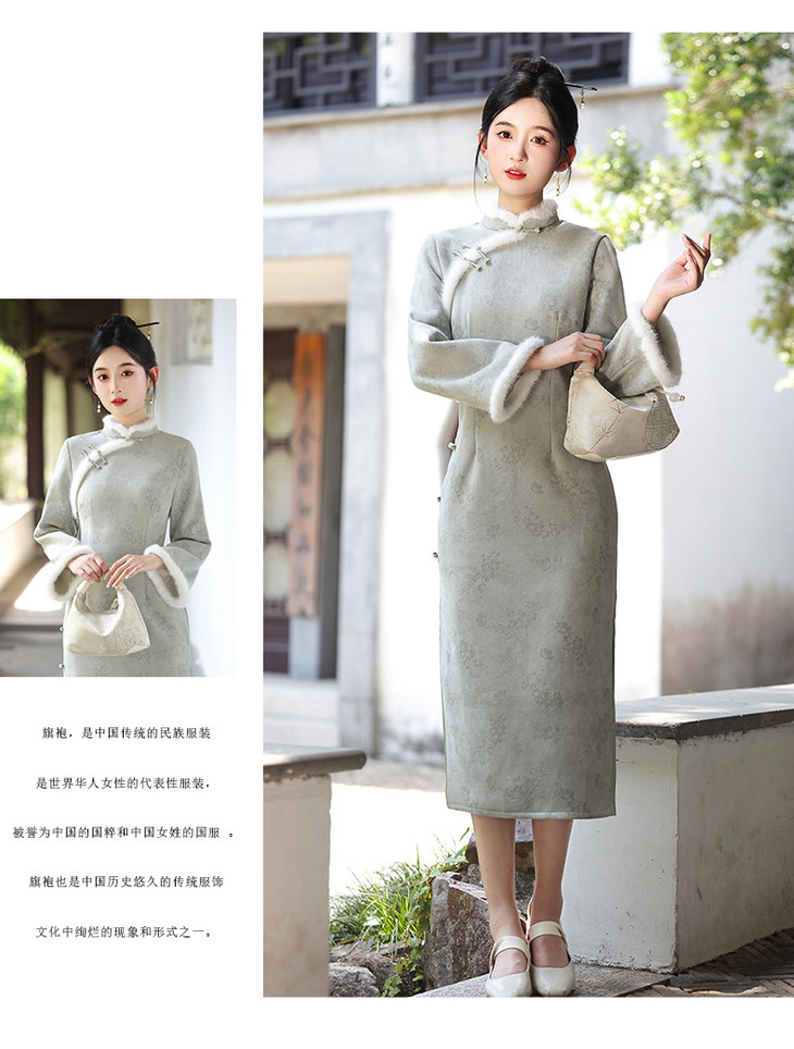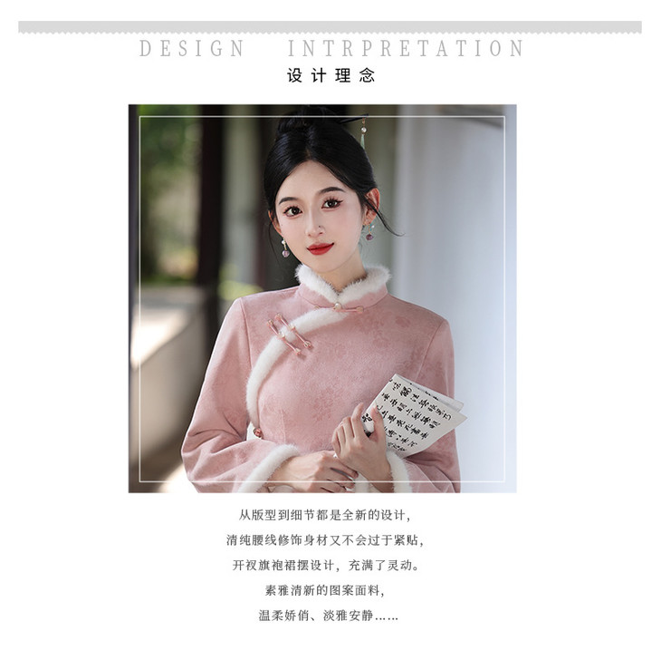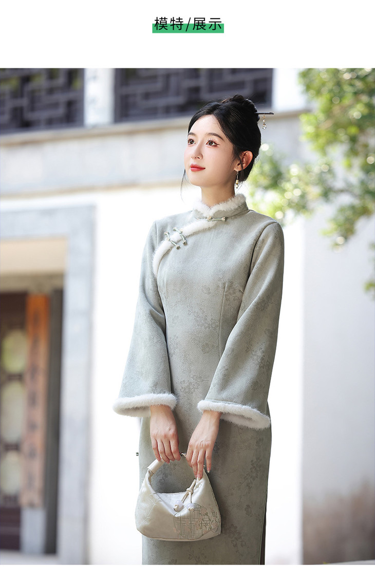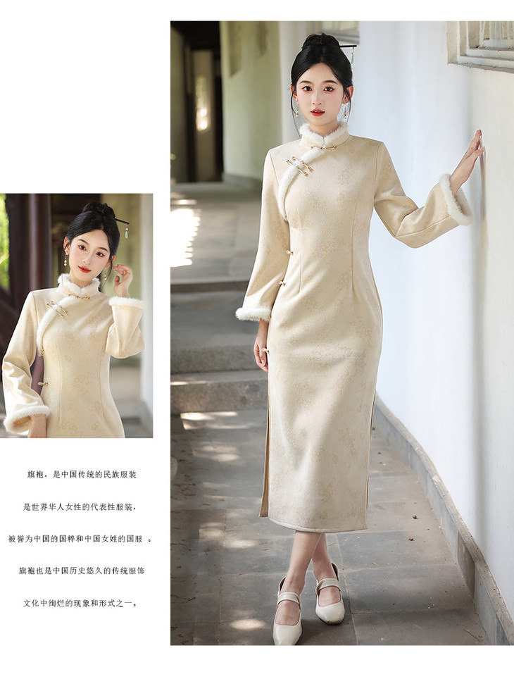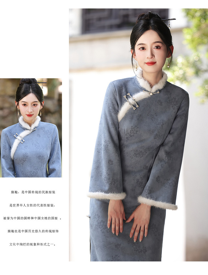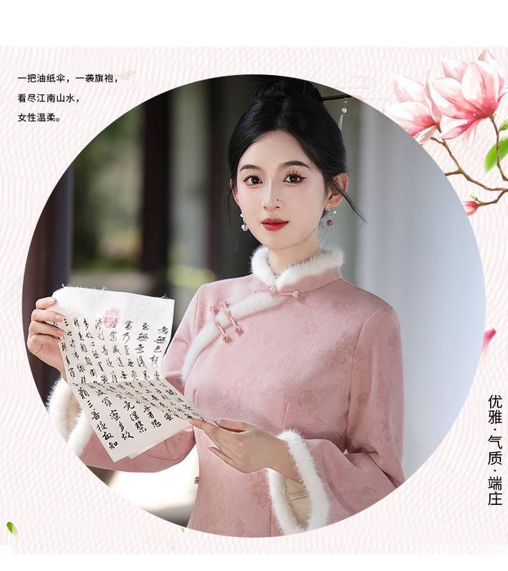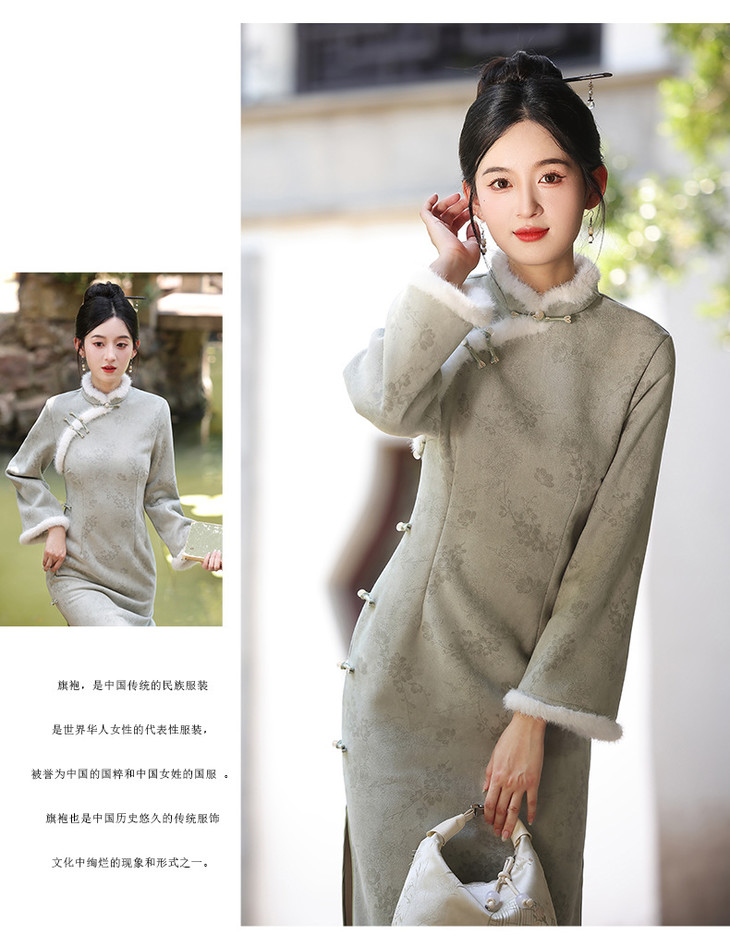 复古新中式新款加绒保暖旗袍长款日常改良年轻款旗袍MLS7216