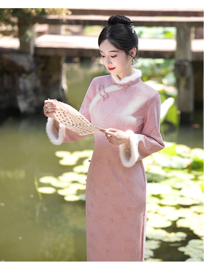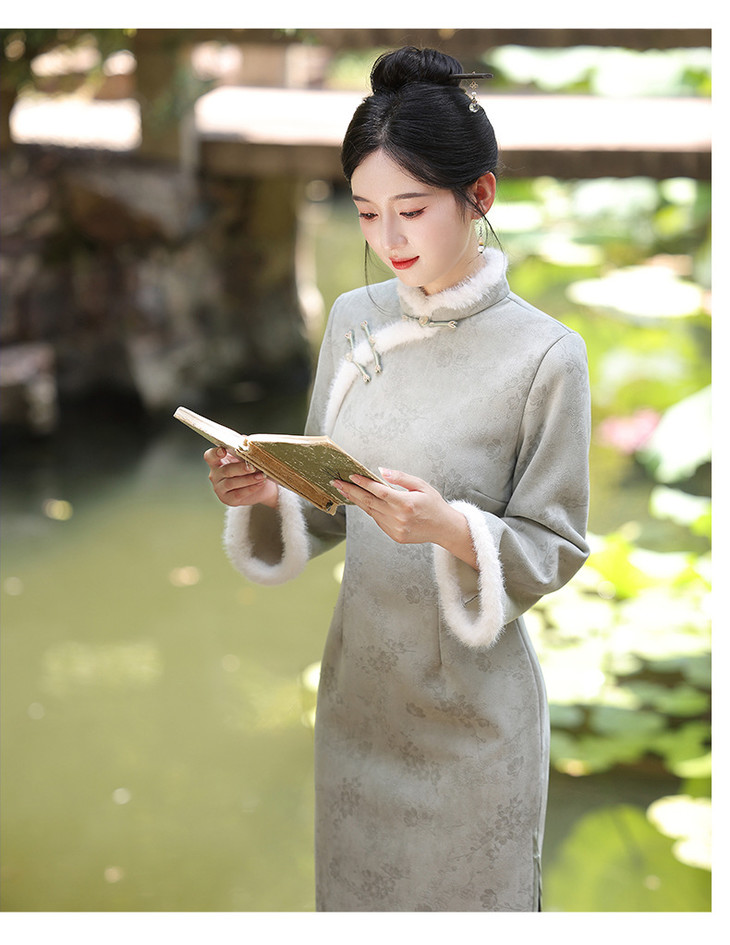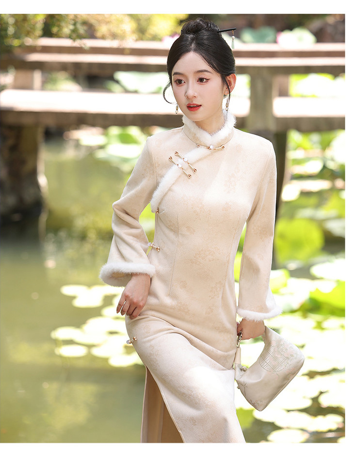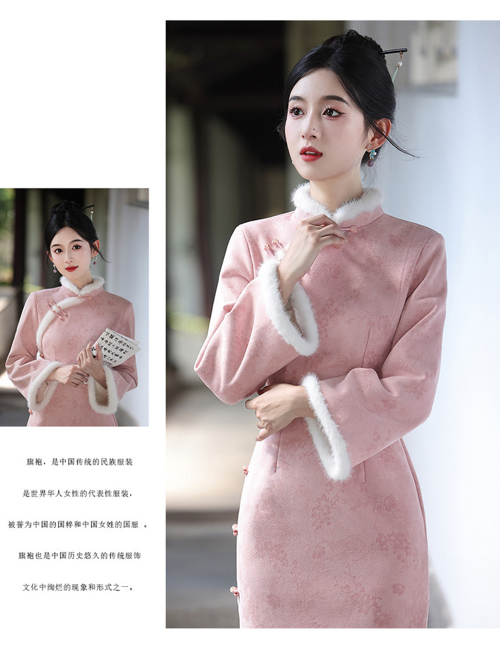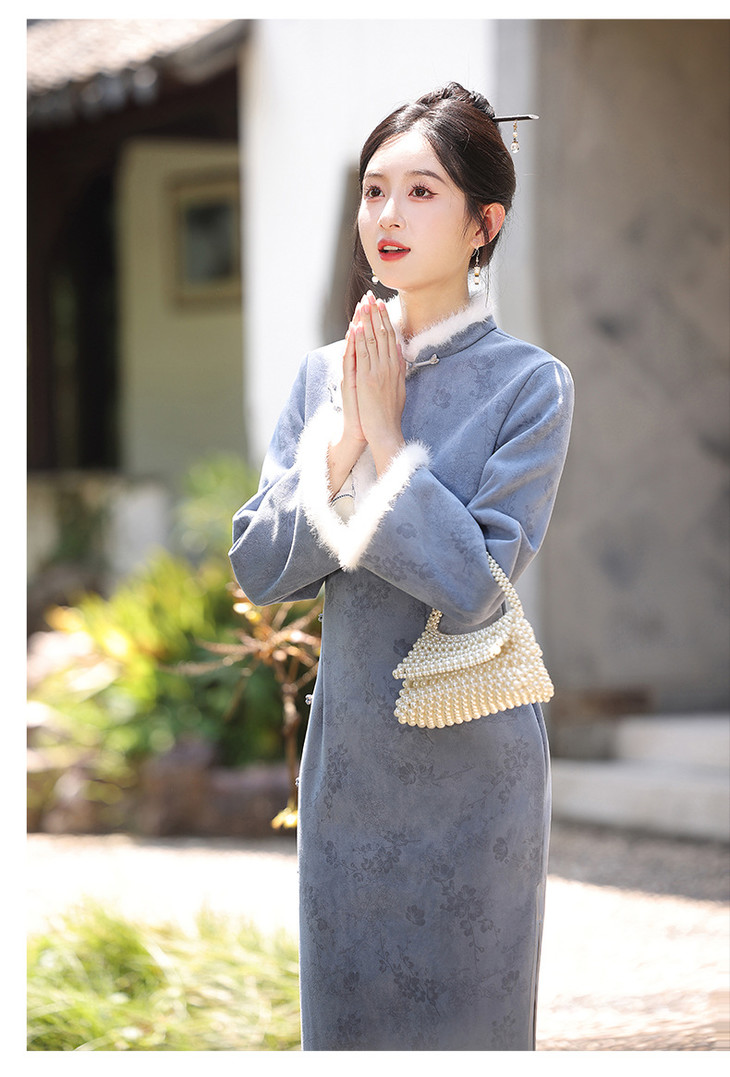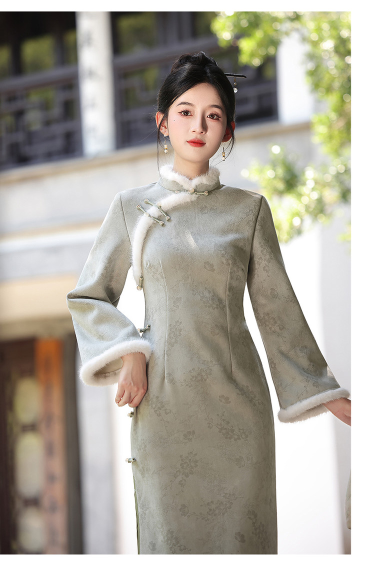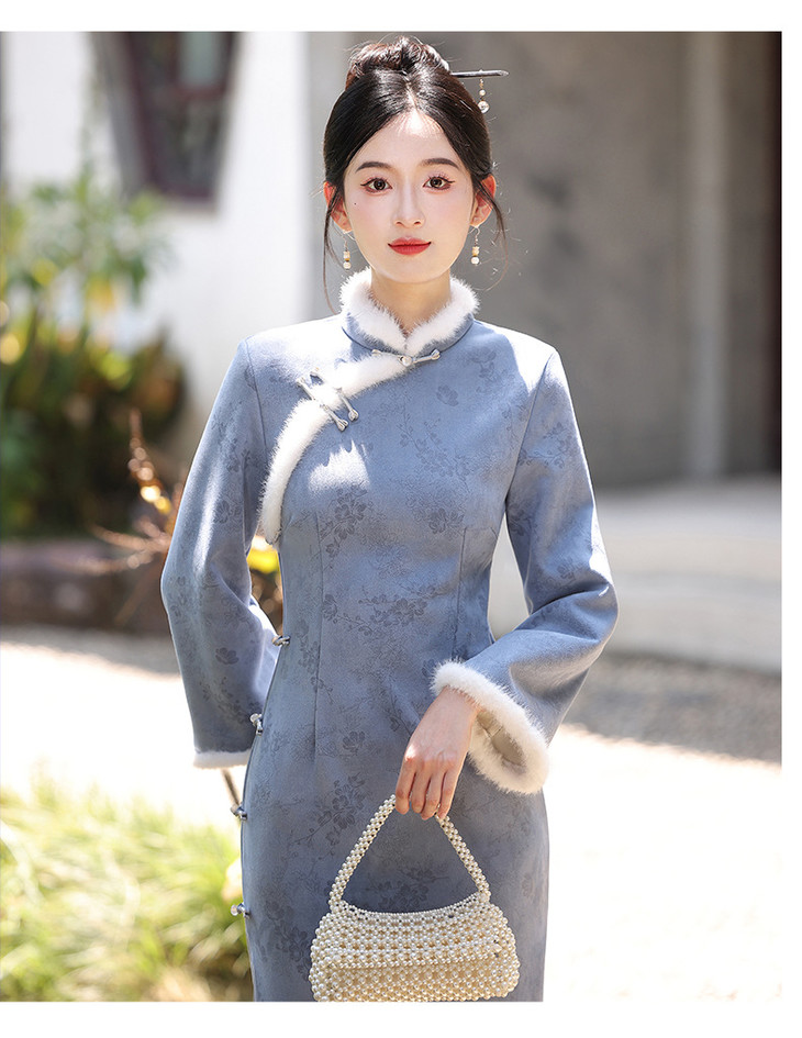 复古新中式新款加绒保暖旗袍长款日常改良年轻款旗袍MLS7216
