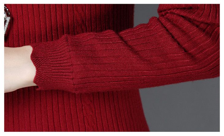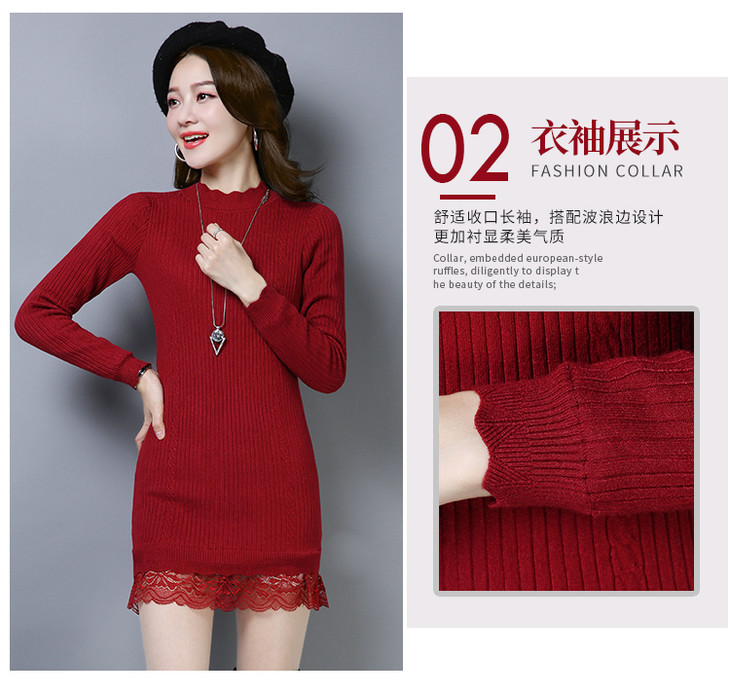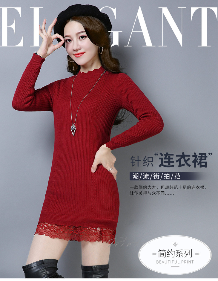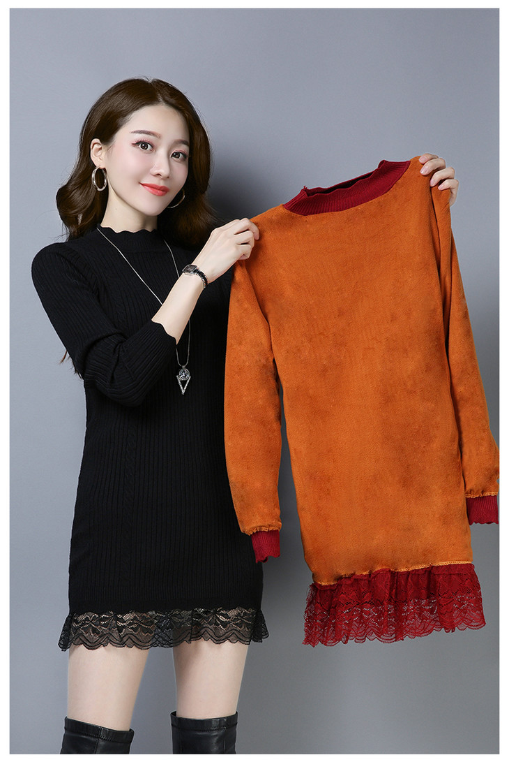 CQ- HYF679新款加绒加厚蕾丝花边高领套头针织打底衫裙