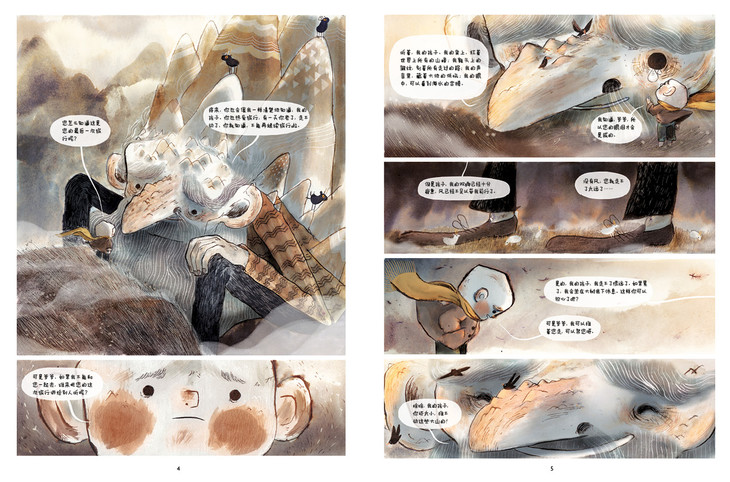 爷爷、大树包括山羊国王,其实都是以老人的形态出现,和小男孩展开对话,启发小男孩开始独立思考关于人生的许多问题。