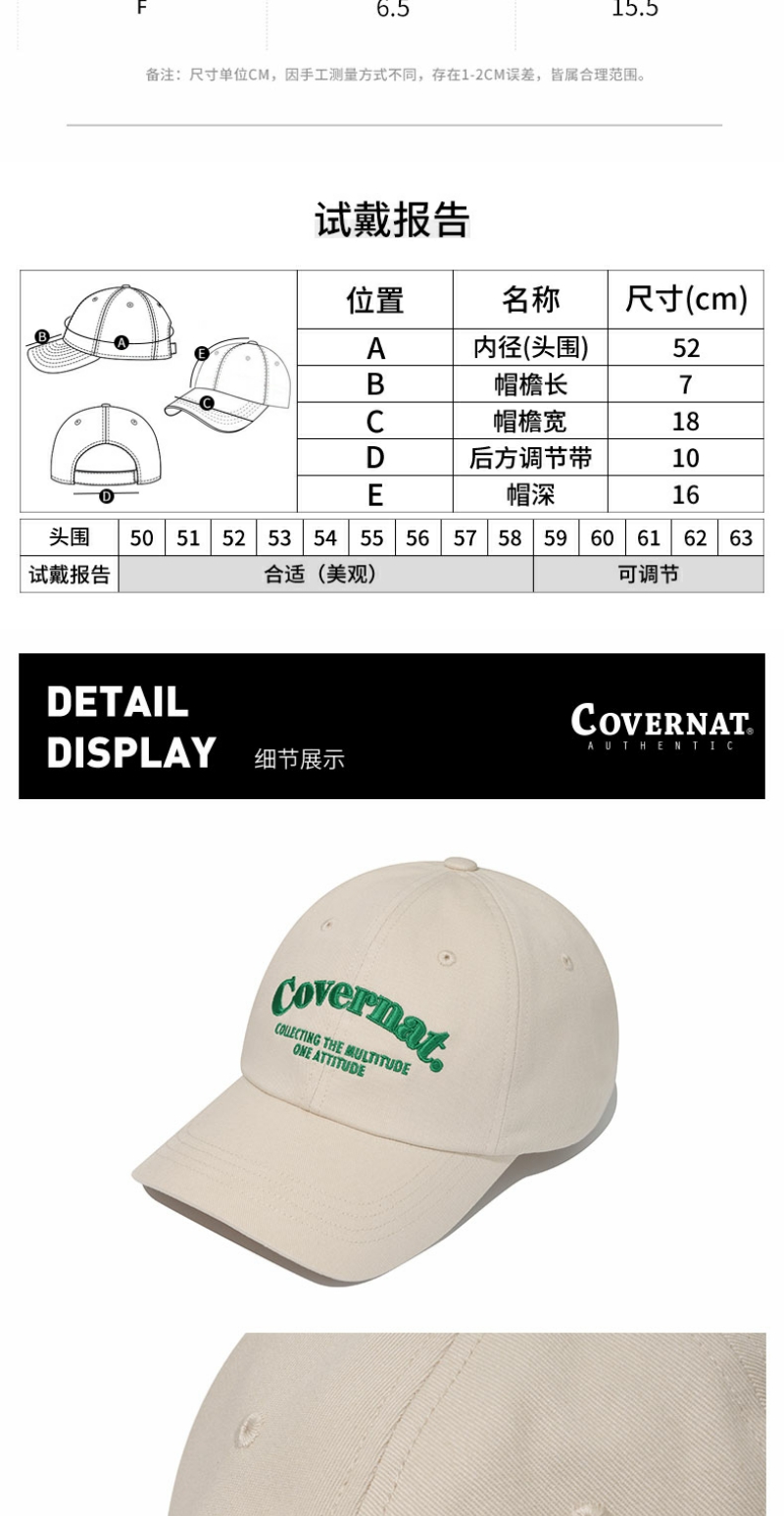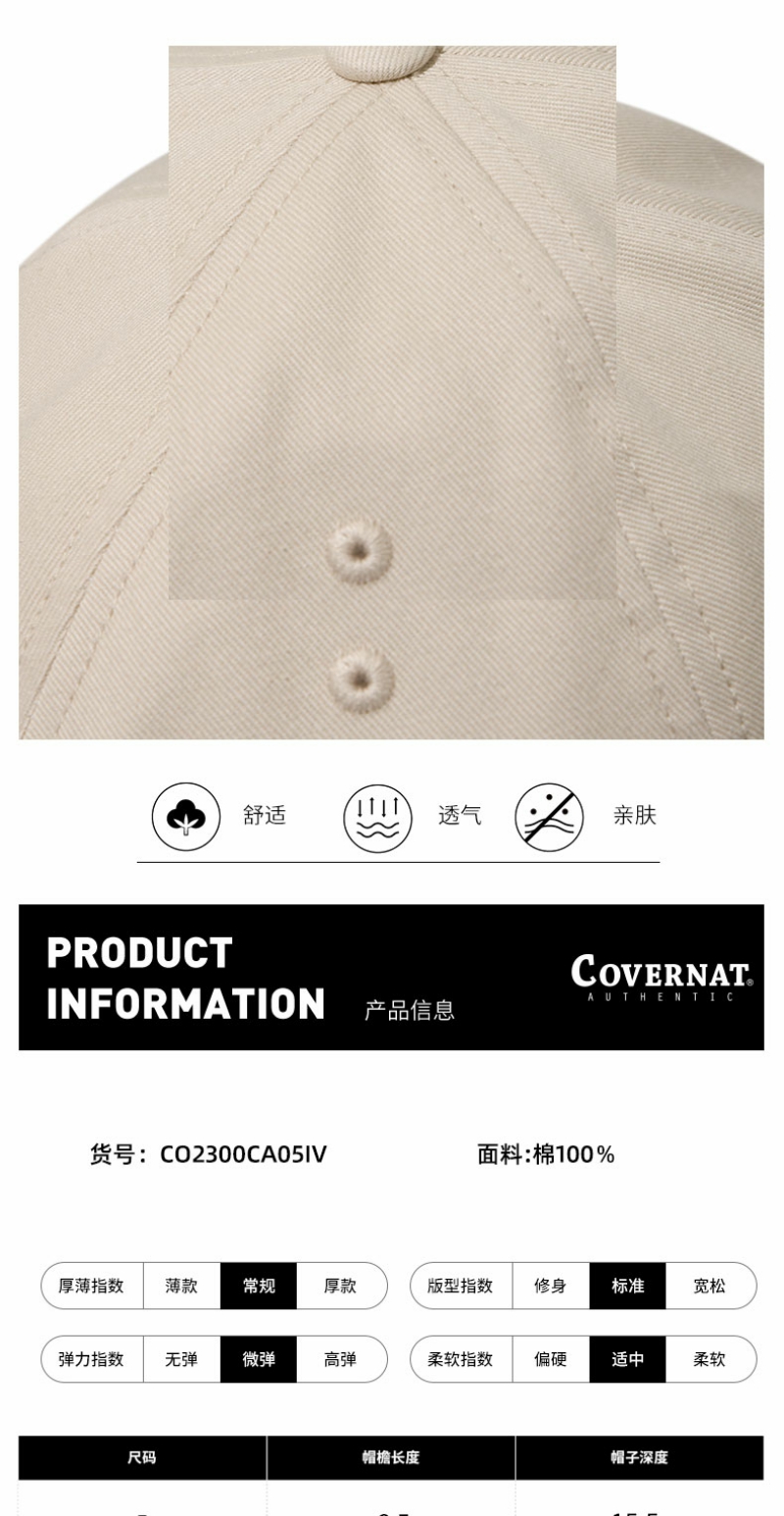 Covernat棒球帽夏鸭舌帽显脸小男女帽子街头防晒遮阳帽CO2300CA05