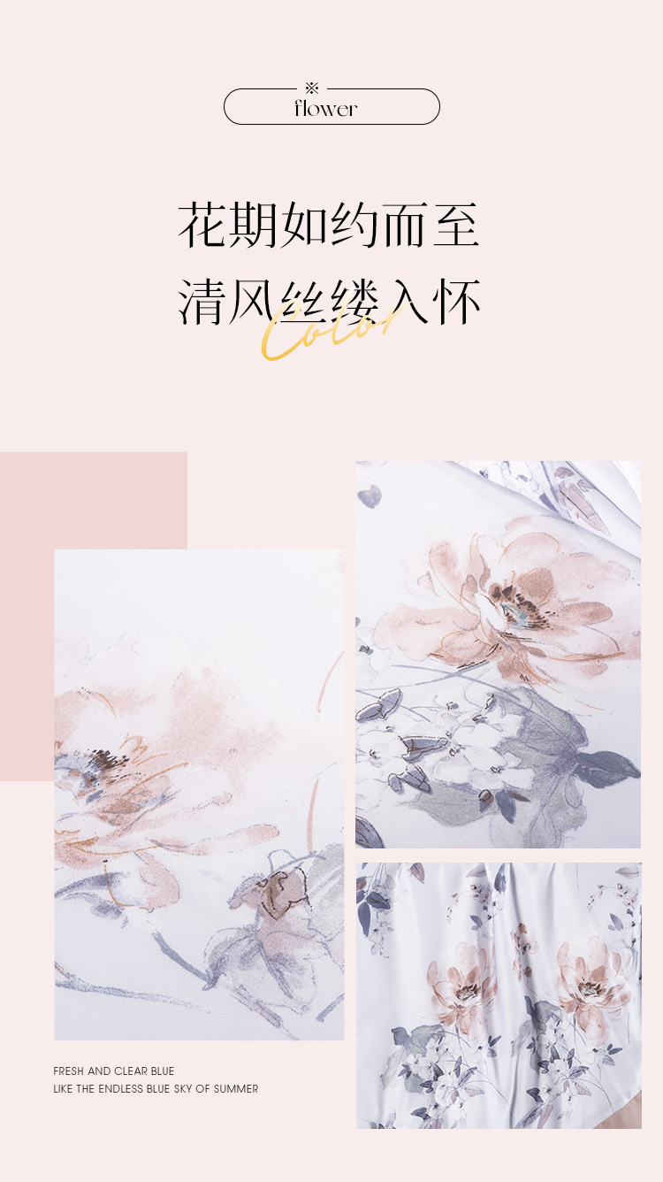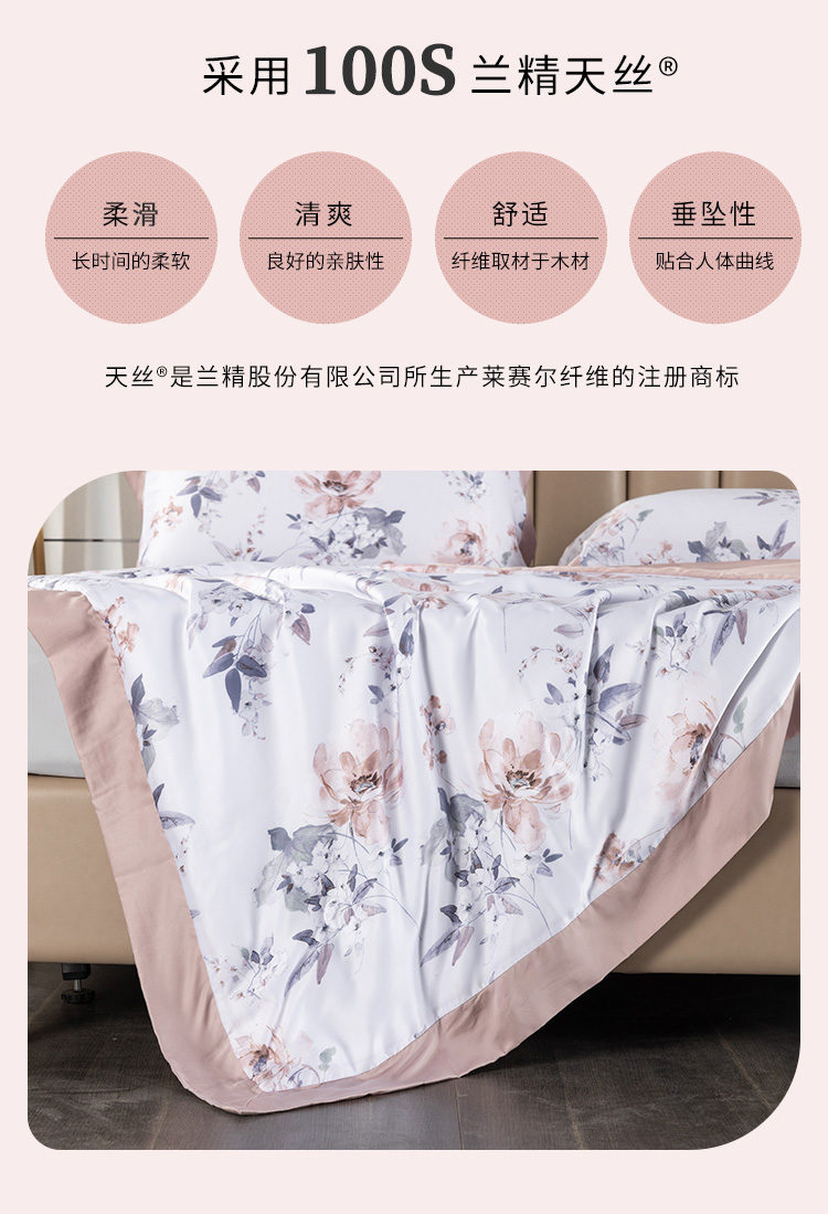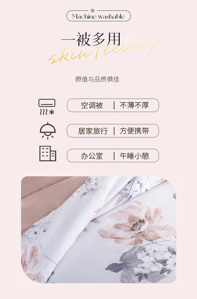 多喜爱 100S兰精天丝空调被 花朝如约水洗纯蚕丝夏薄被(粉/蓝)(单件不含枕袋)cs