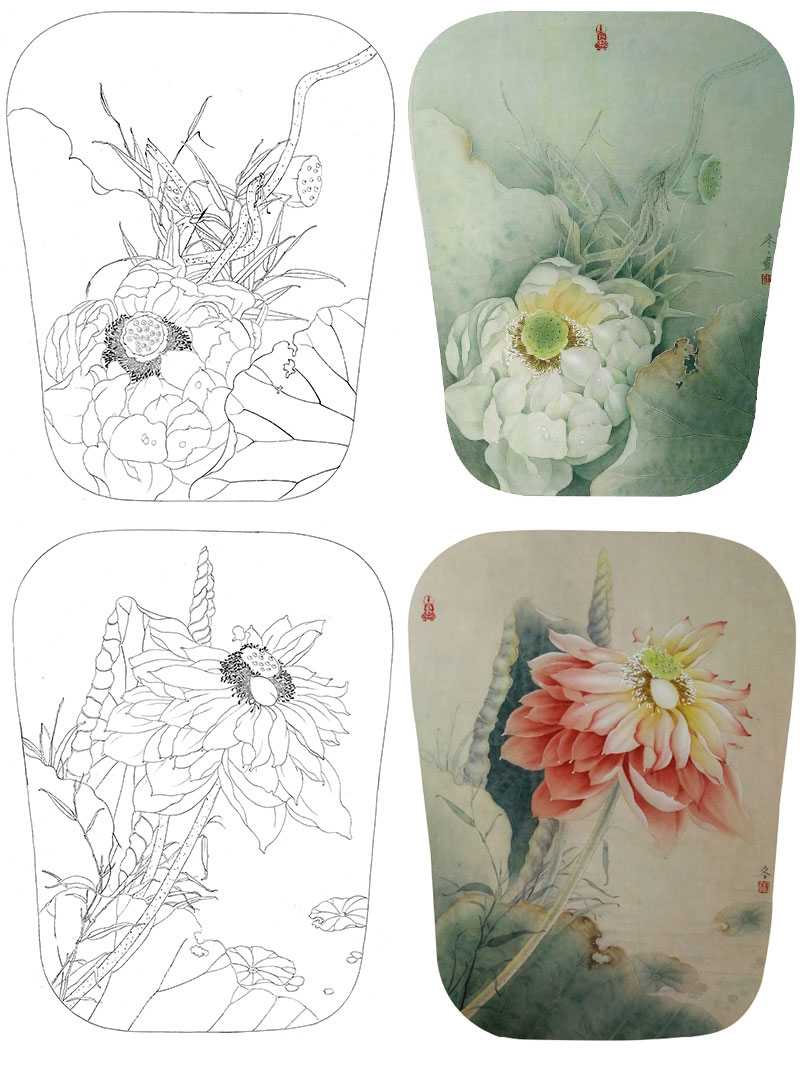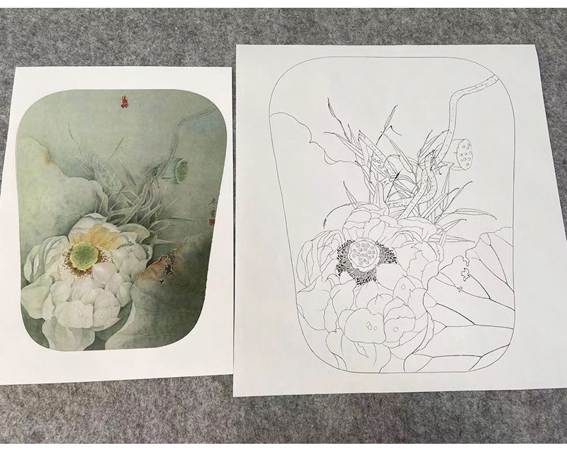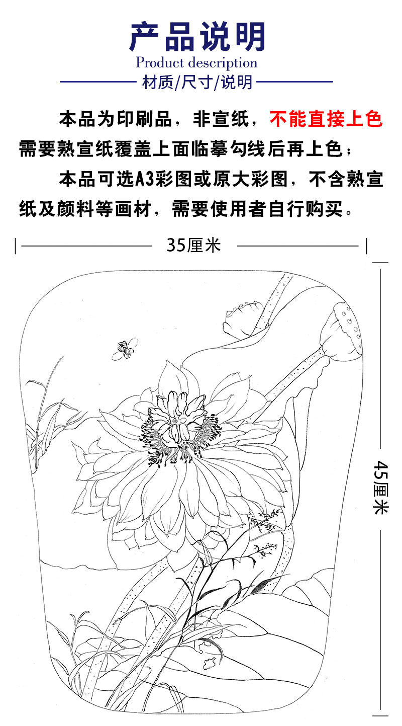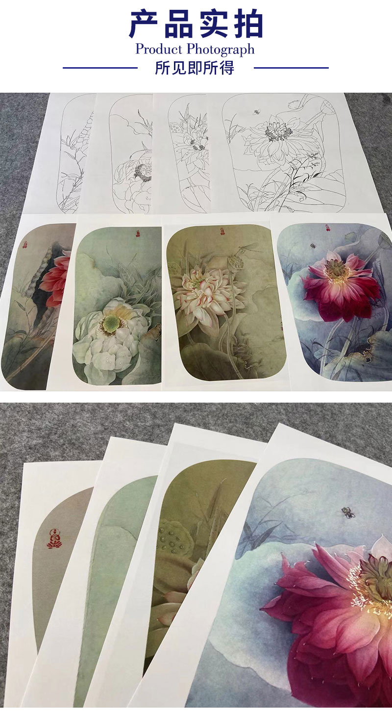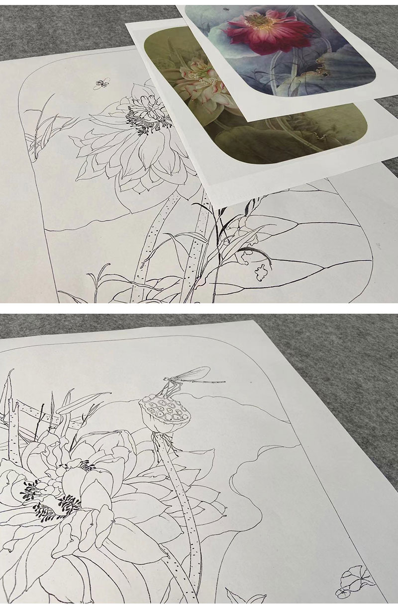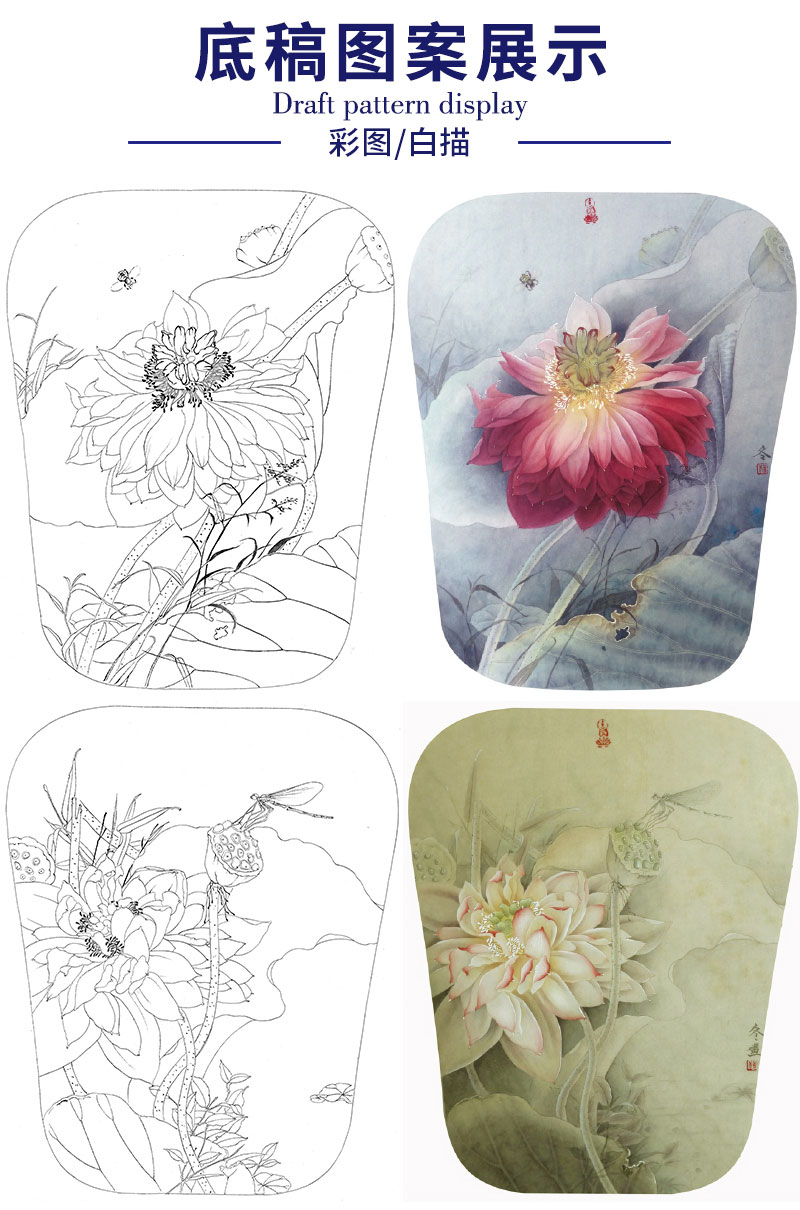 杨冬冬工笔画白描底稿荷花蜻蜓一套四幅初学者尺寸35*45厘米TY07
