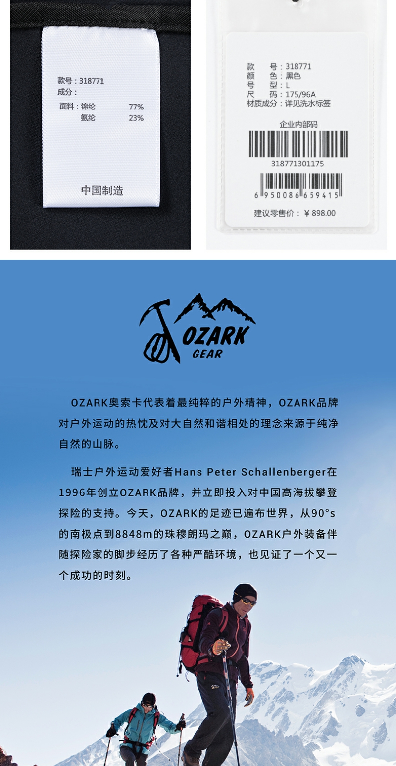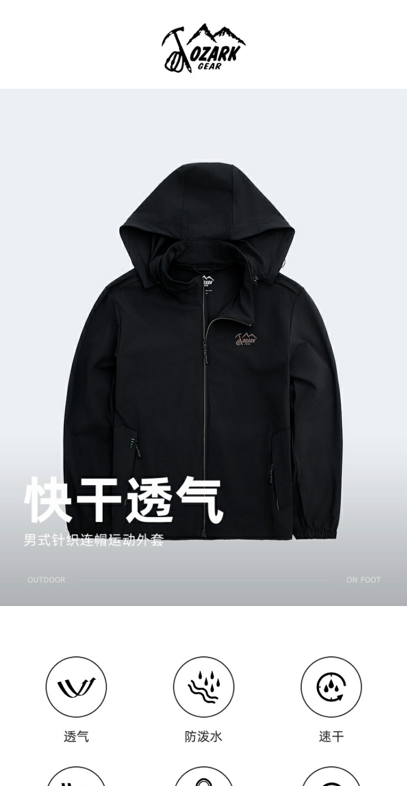 OZARK奥索卡冲锋衣春新款官方正品高端品牌休闲运动徒步户外套男318771