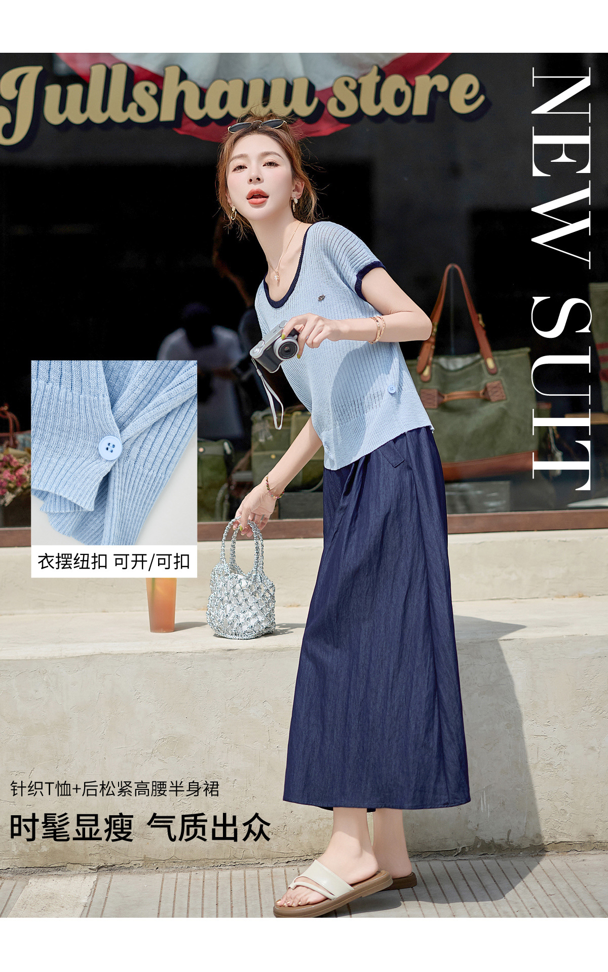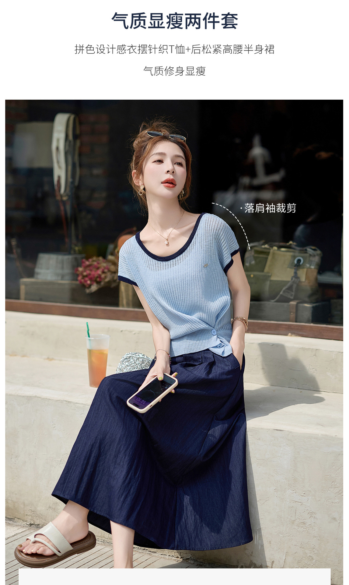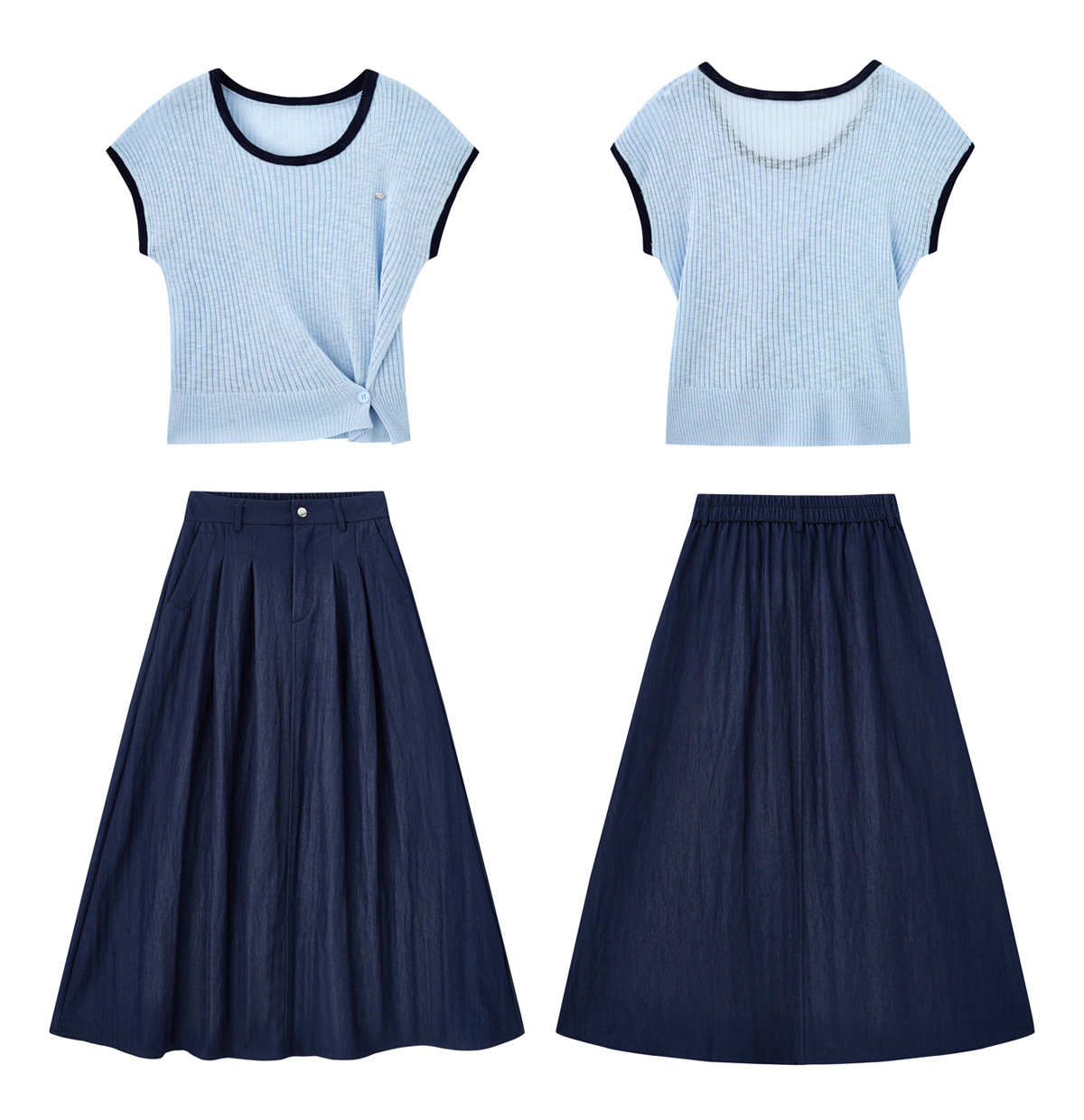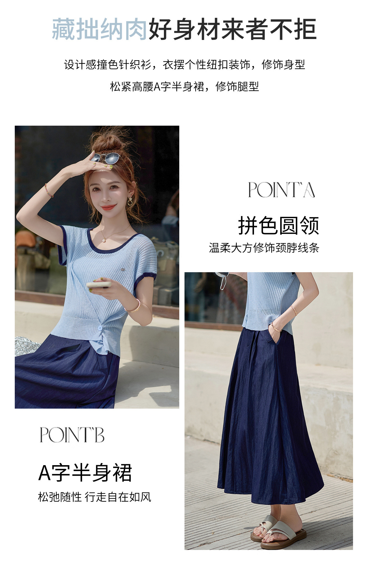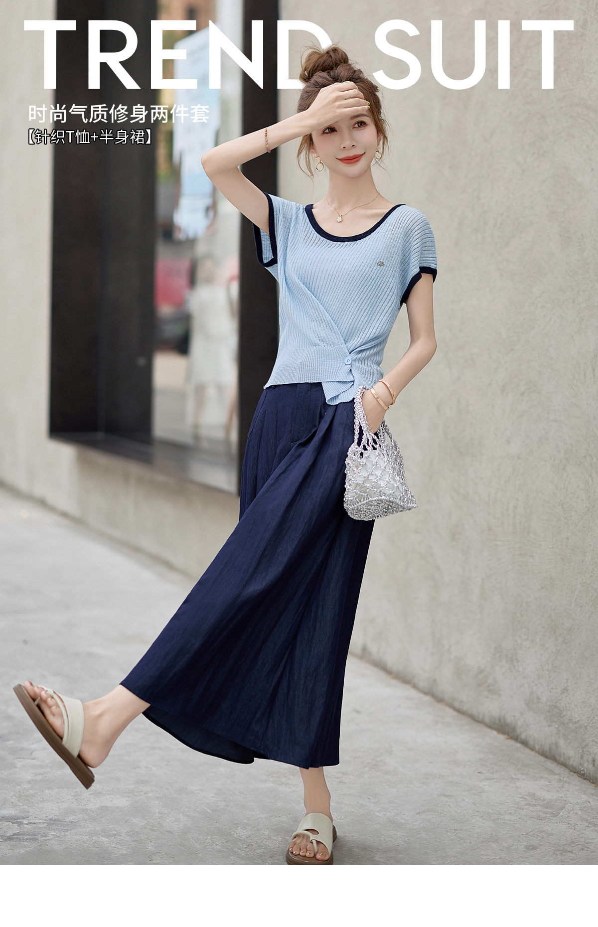 FY2585A时尚气质套装2025夏季高级感法式收腰遮肚子显瘦减龄半身裙两件套