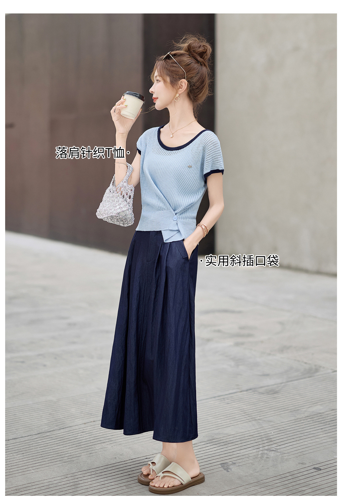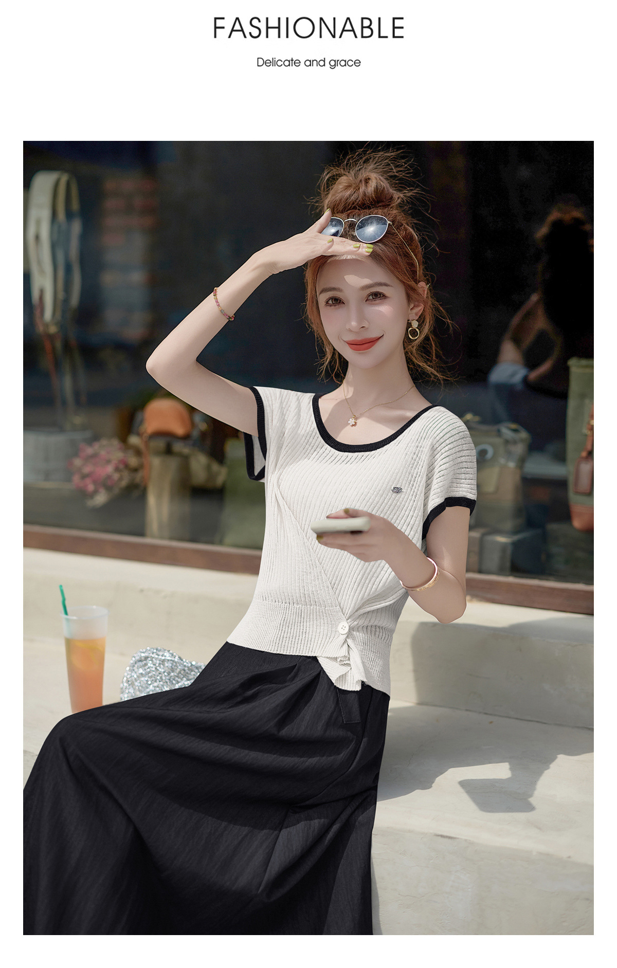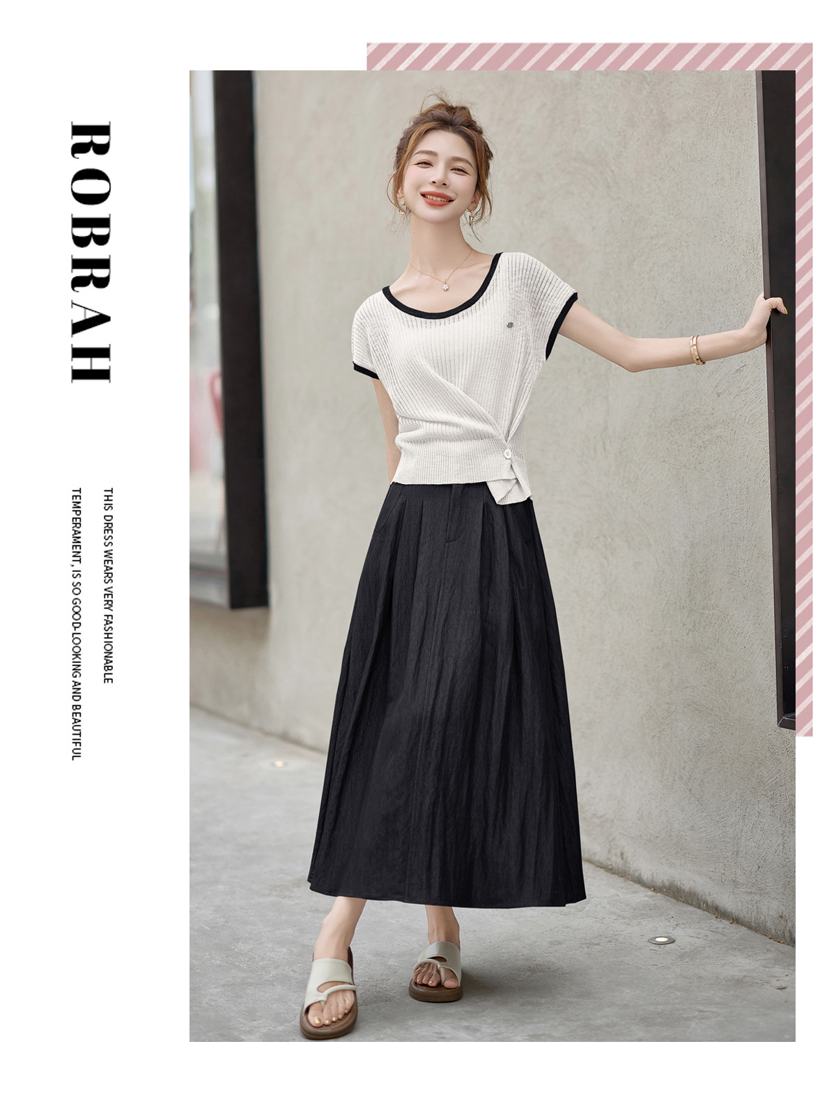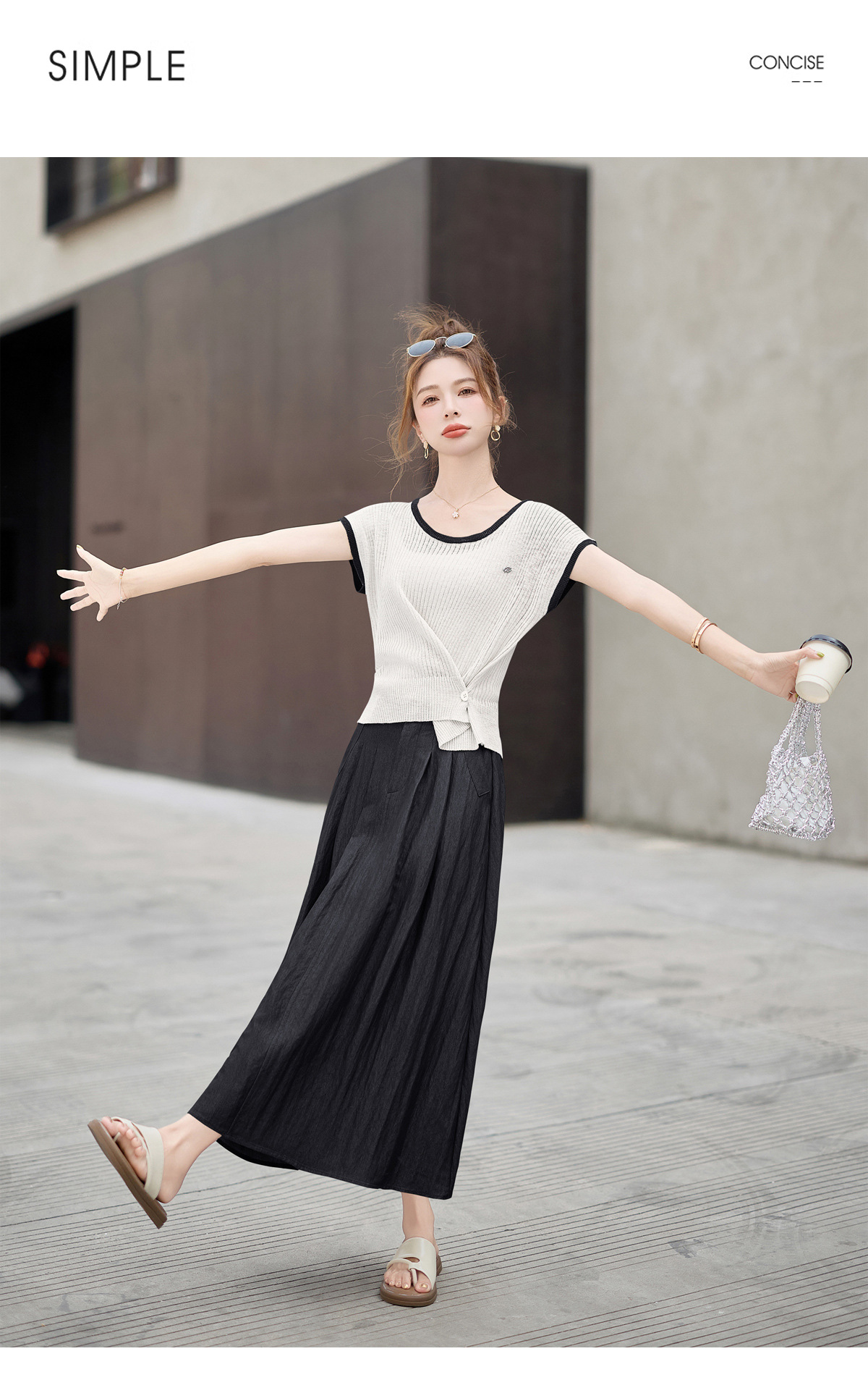 FY2585A时尚气质套装2025夏季高级感法式收腰遮肚子显瘦减龄半身裙两件套