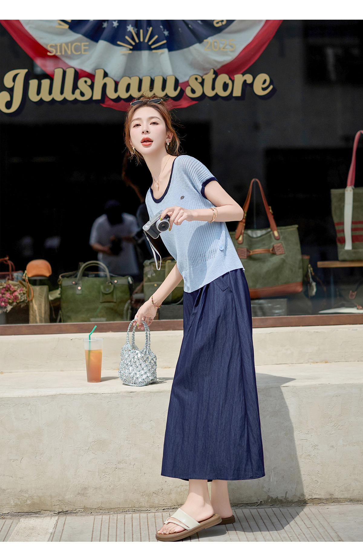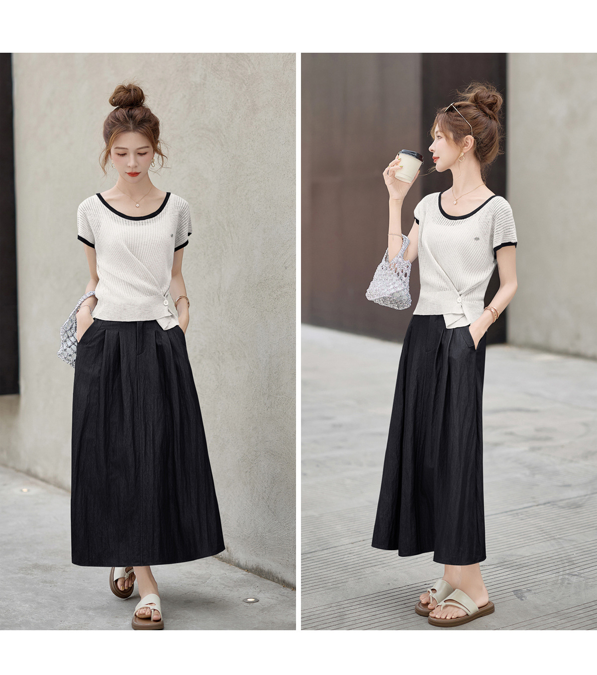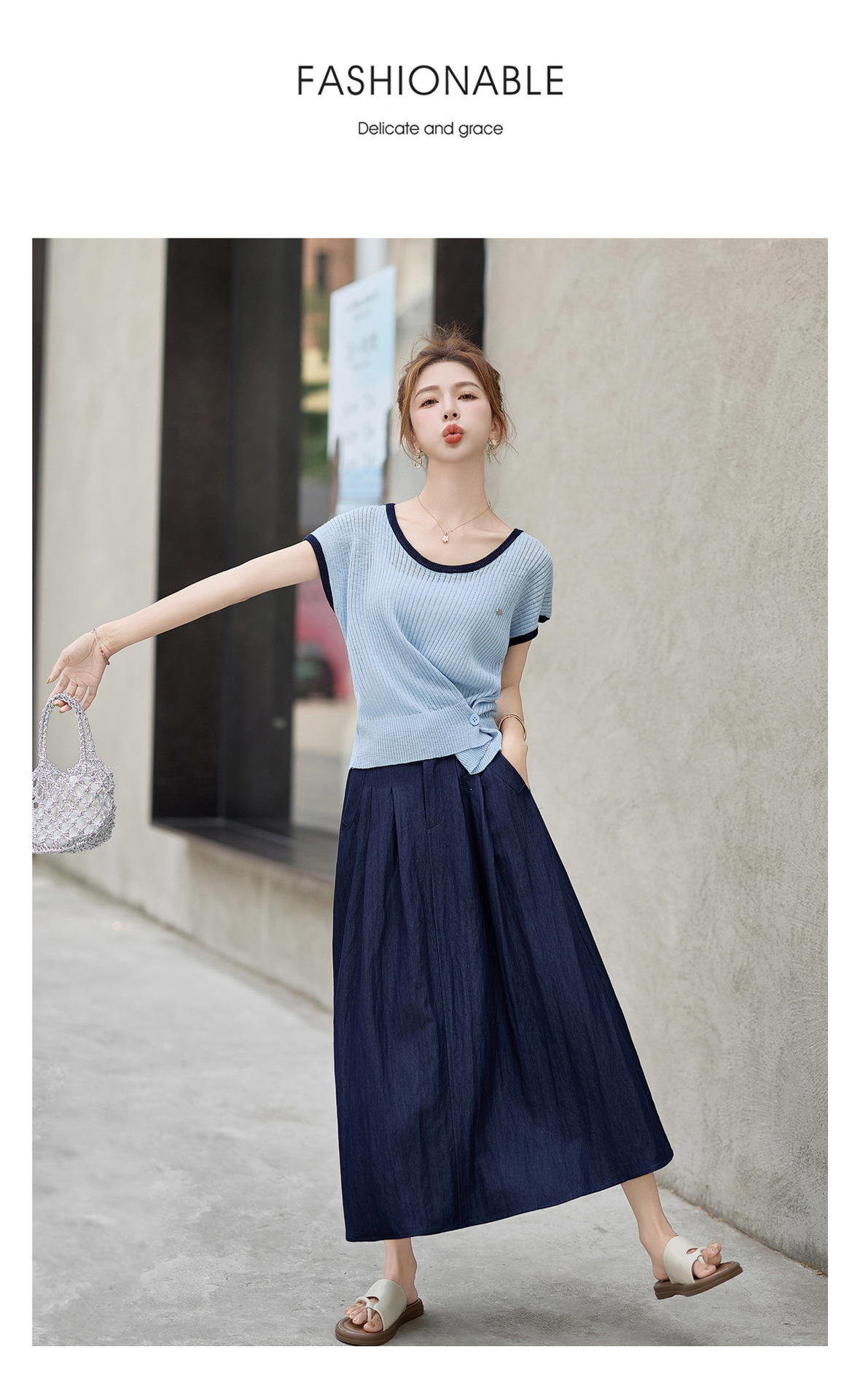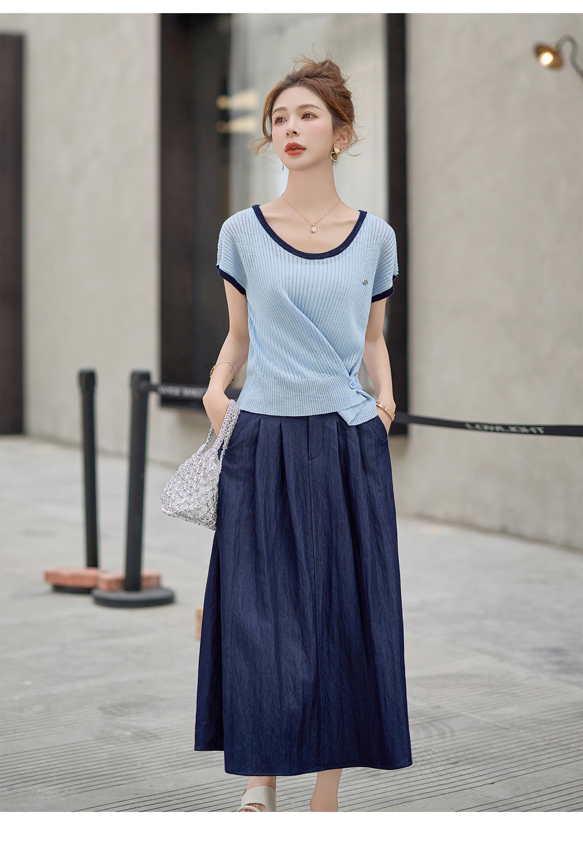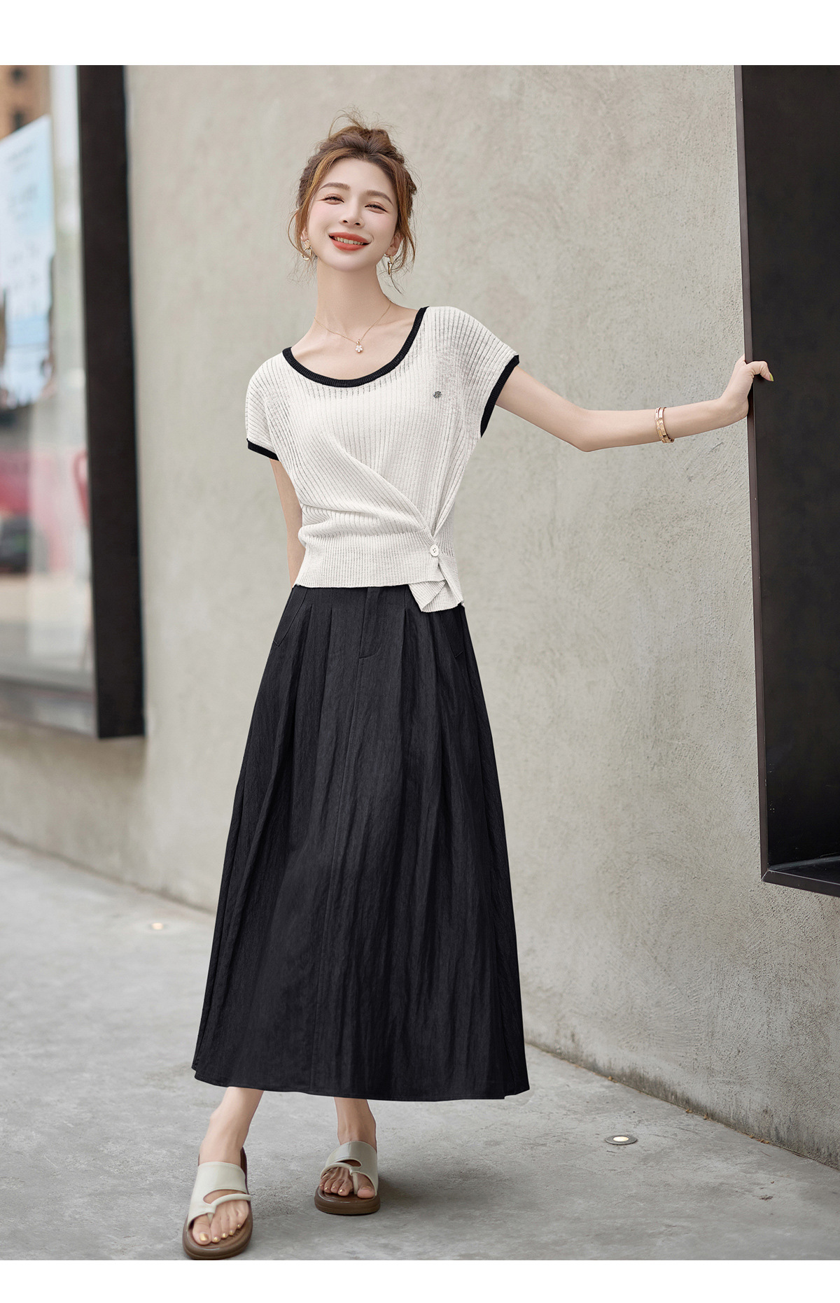 FY2585A时尚气质套装2025夏季高级感法式收腰遮肚子显瘦减龄半身裙两件套