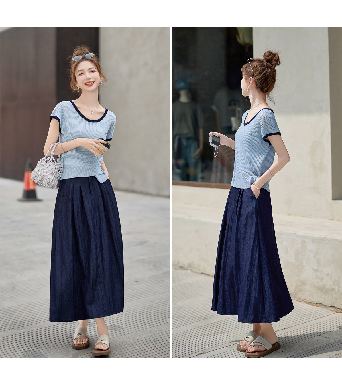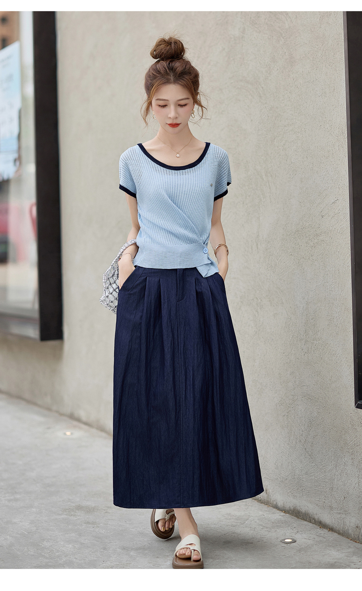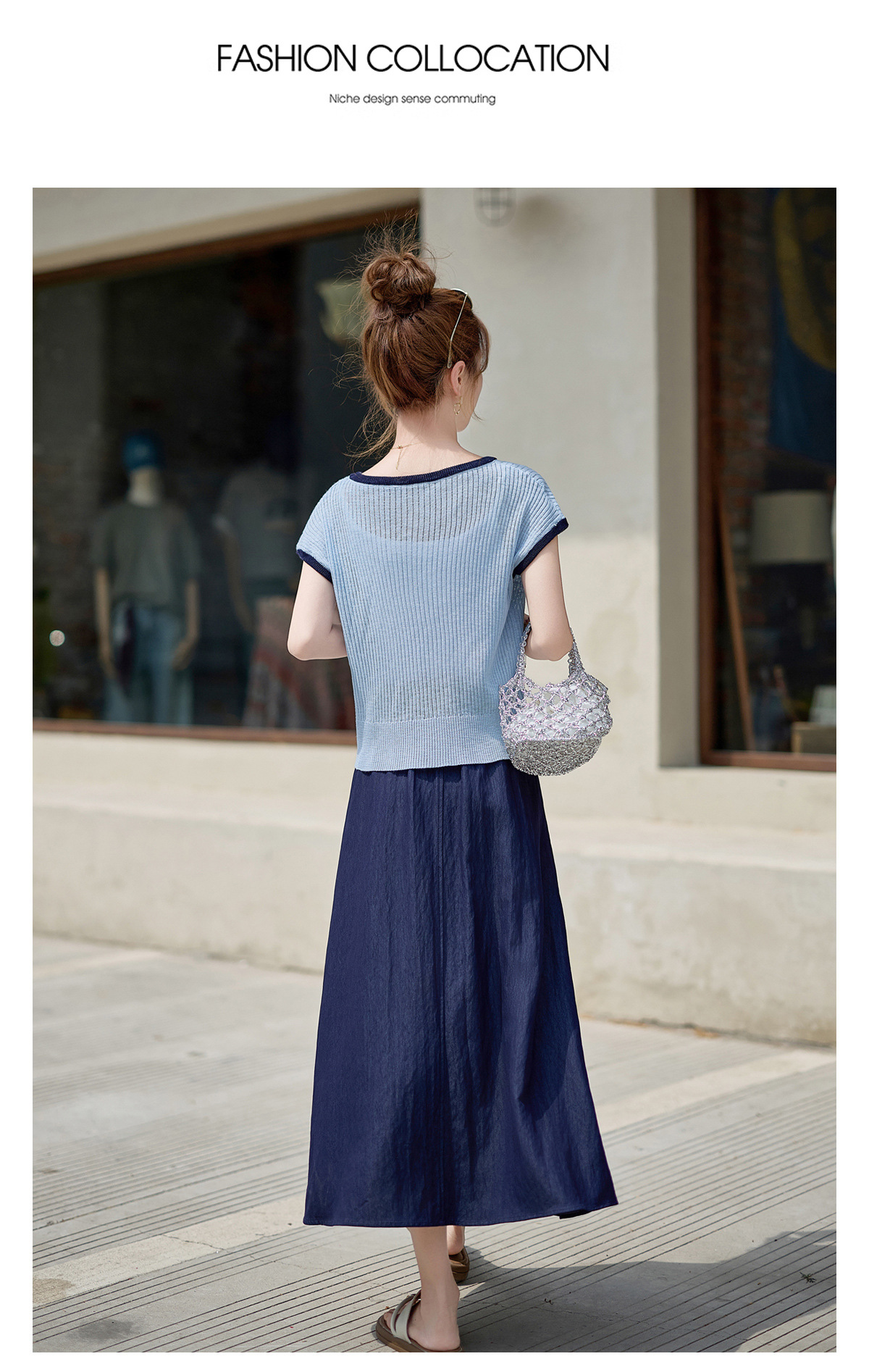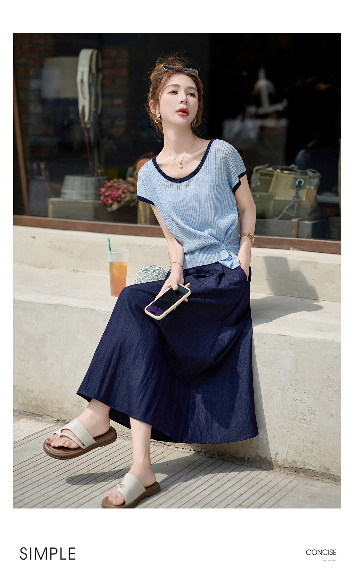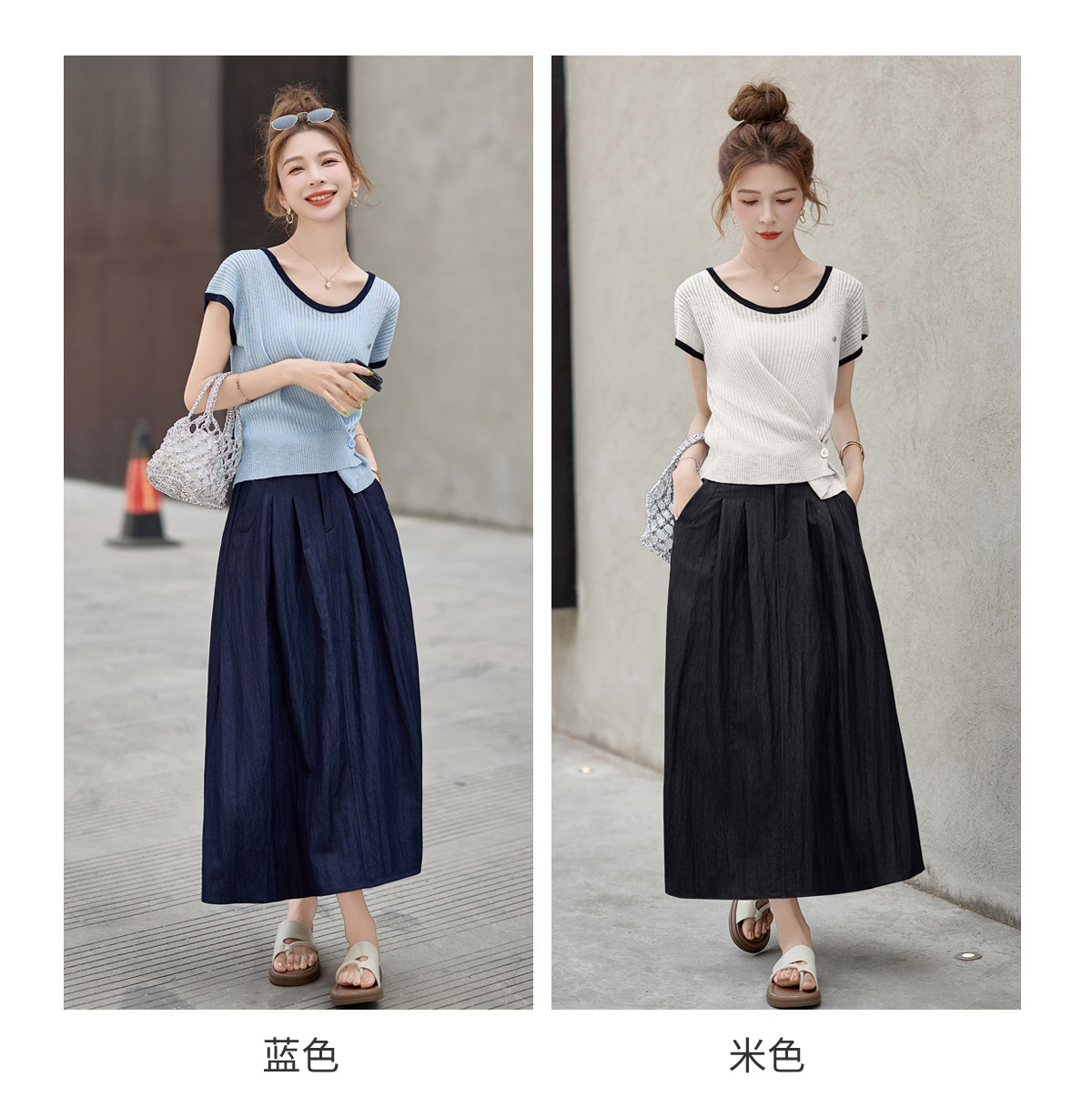 FY2585A时尚气质套装2025夏季高级感法式收腰遮肚子显瘦减龄半身裙两件套