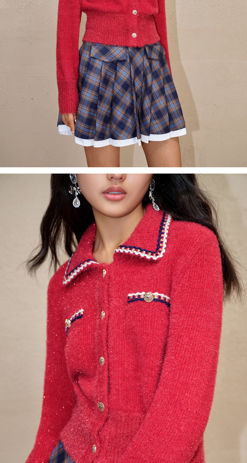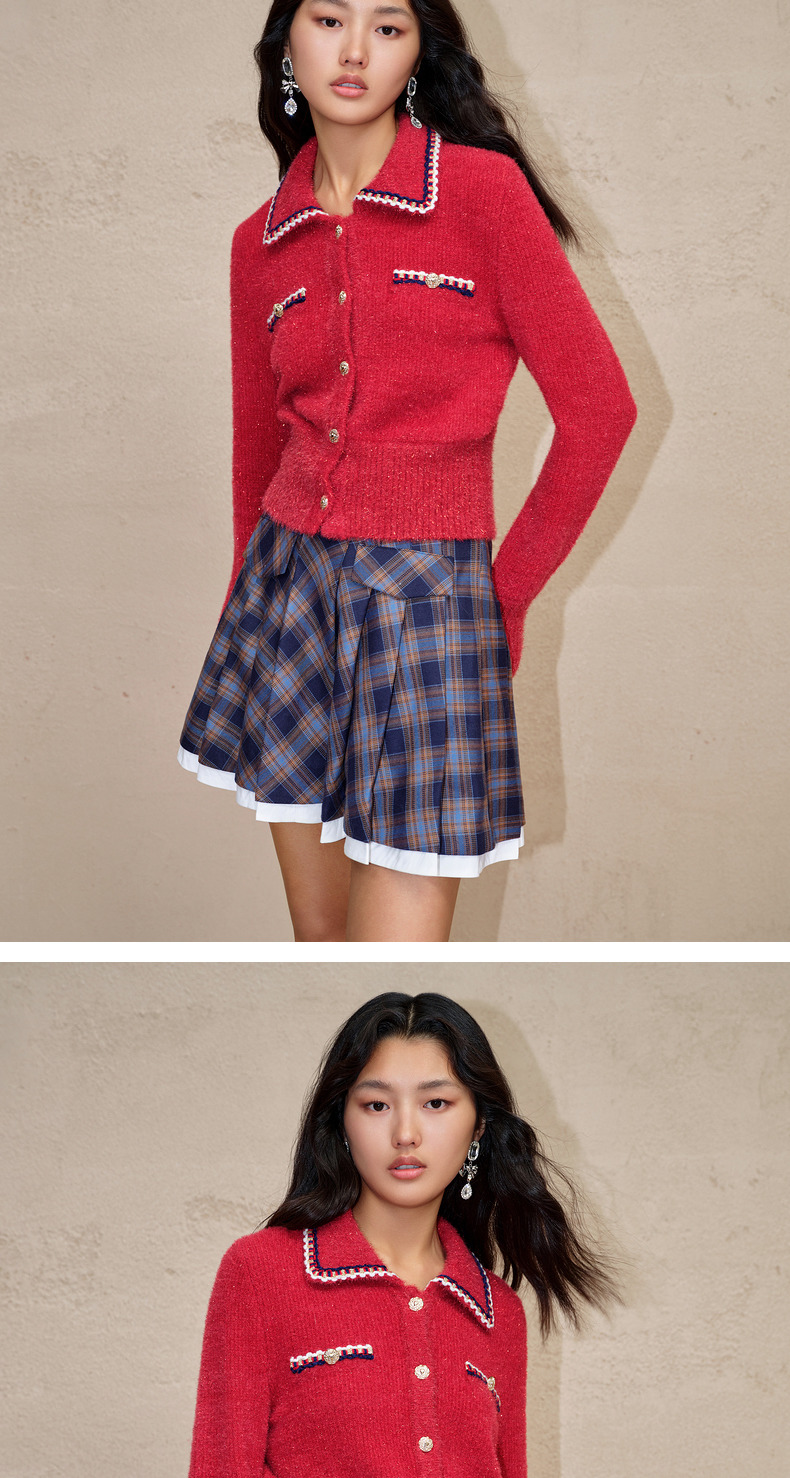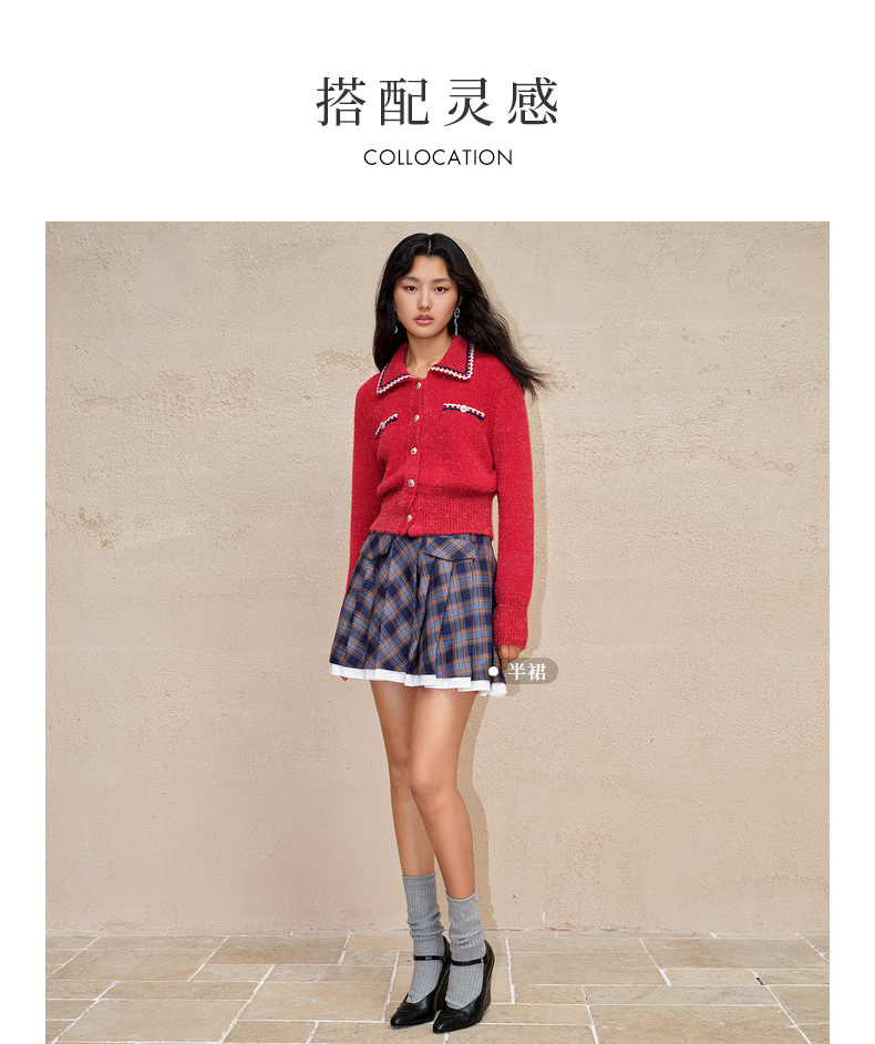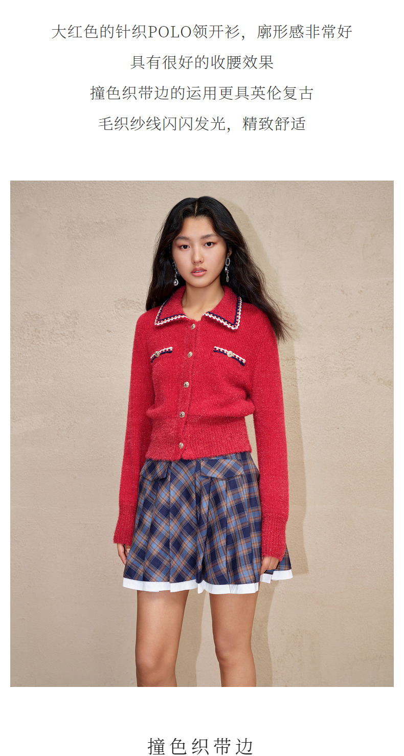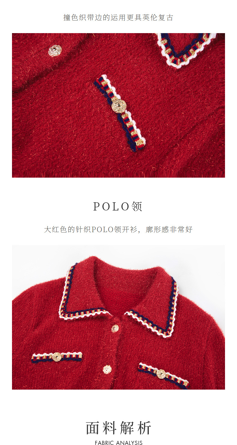 MAXRIENY英伦千金小香复古POLO领针织外套收腰(货号:MC88JA586)