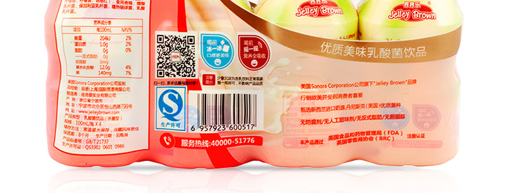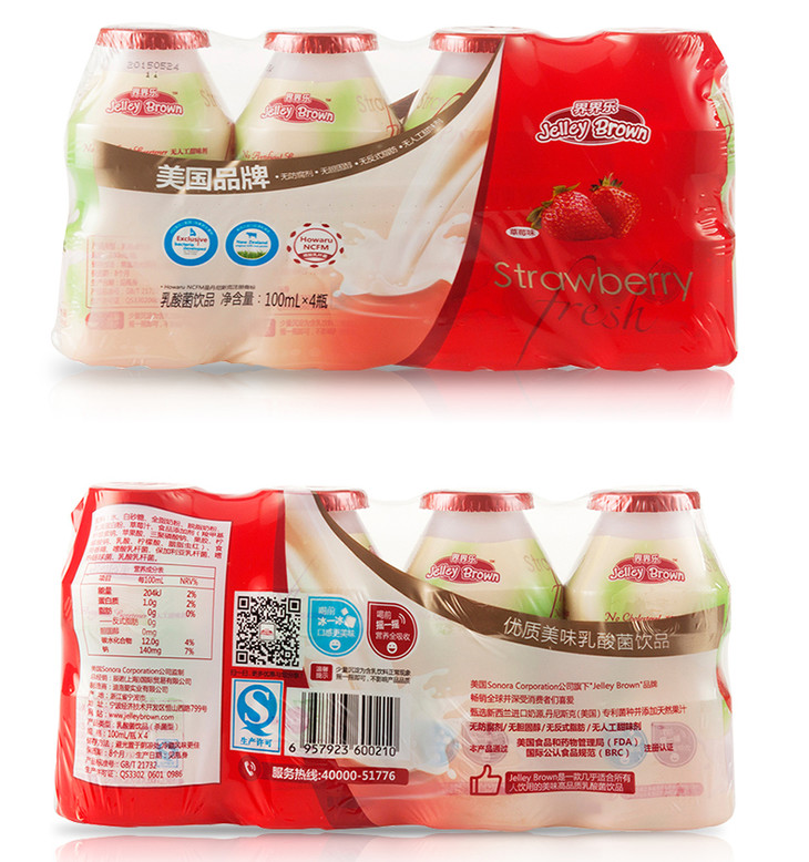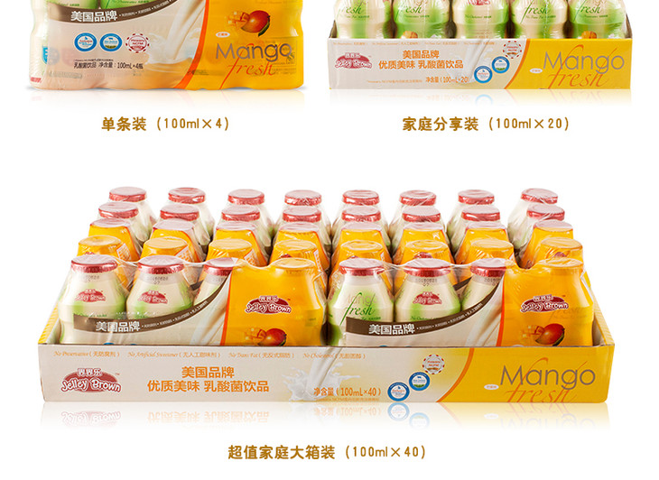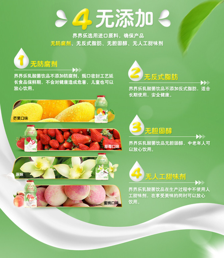 界界乐乳酸菌原味、草莓、芒果、蓝莓、水蜜桃(100ml*4瓶)