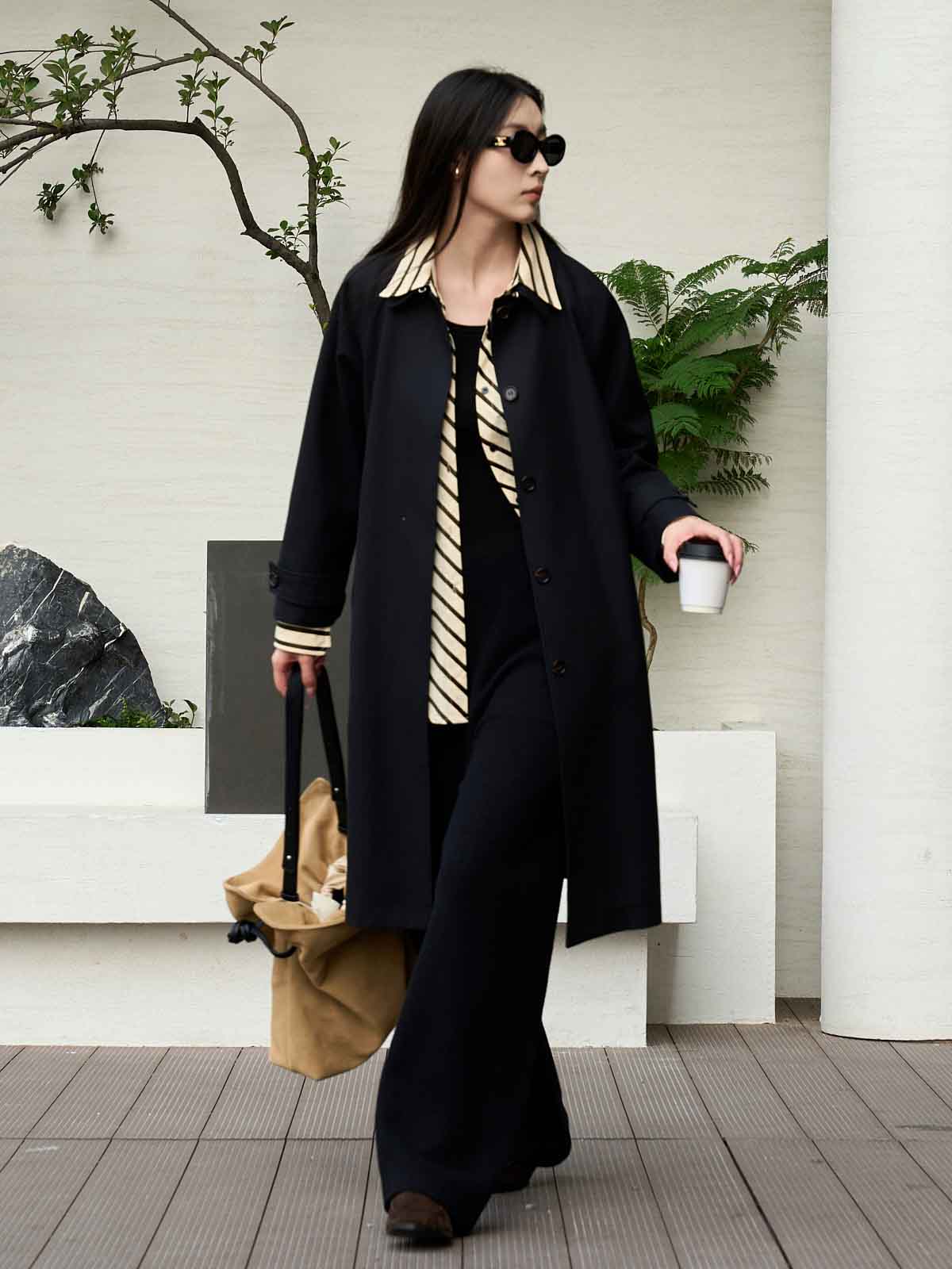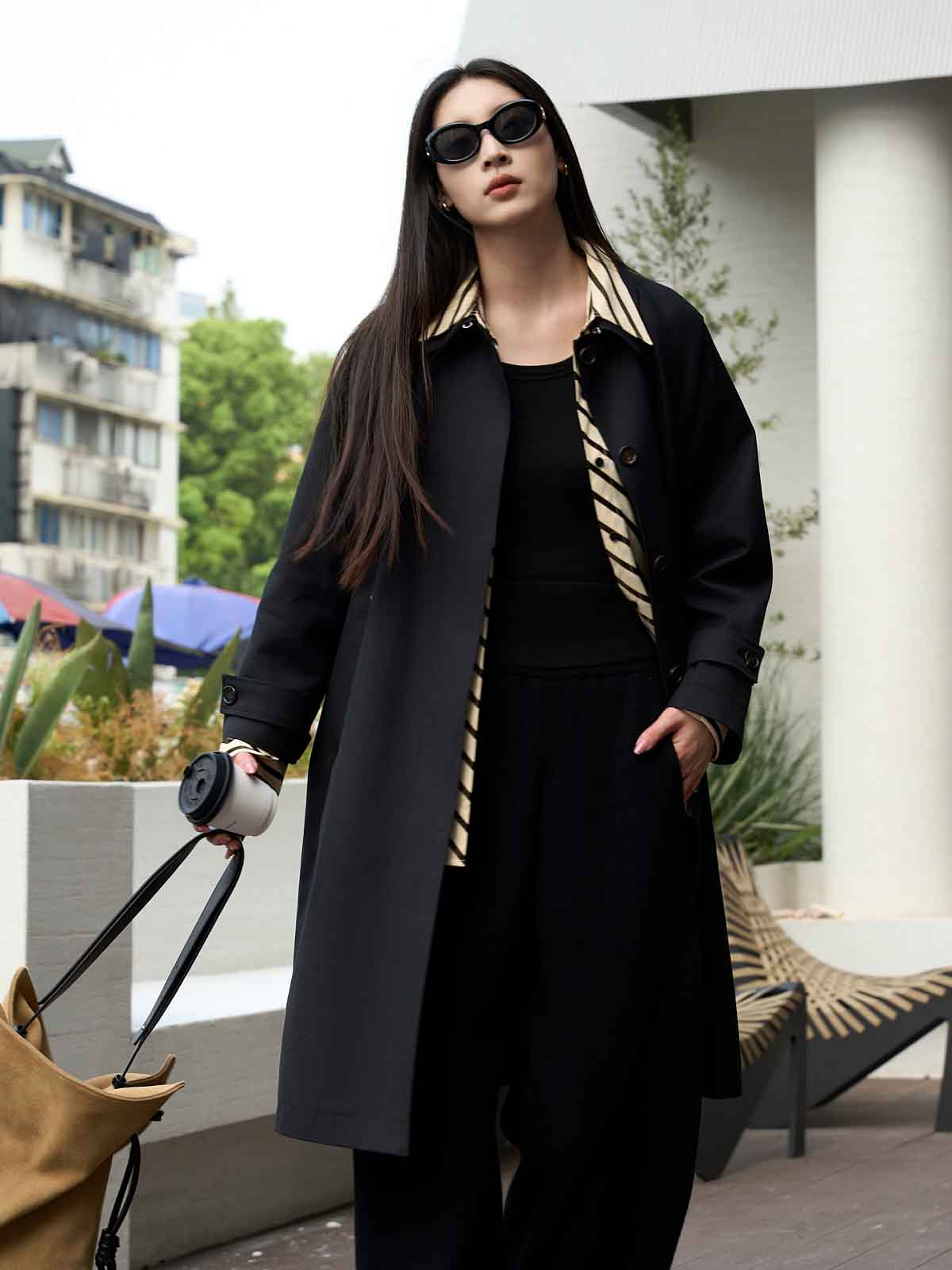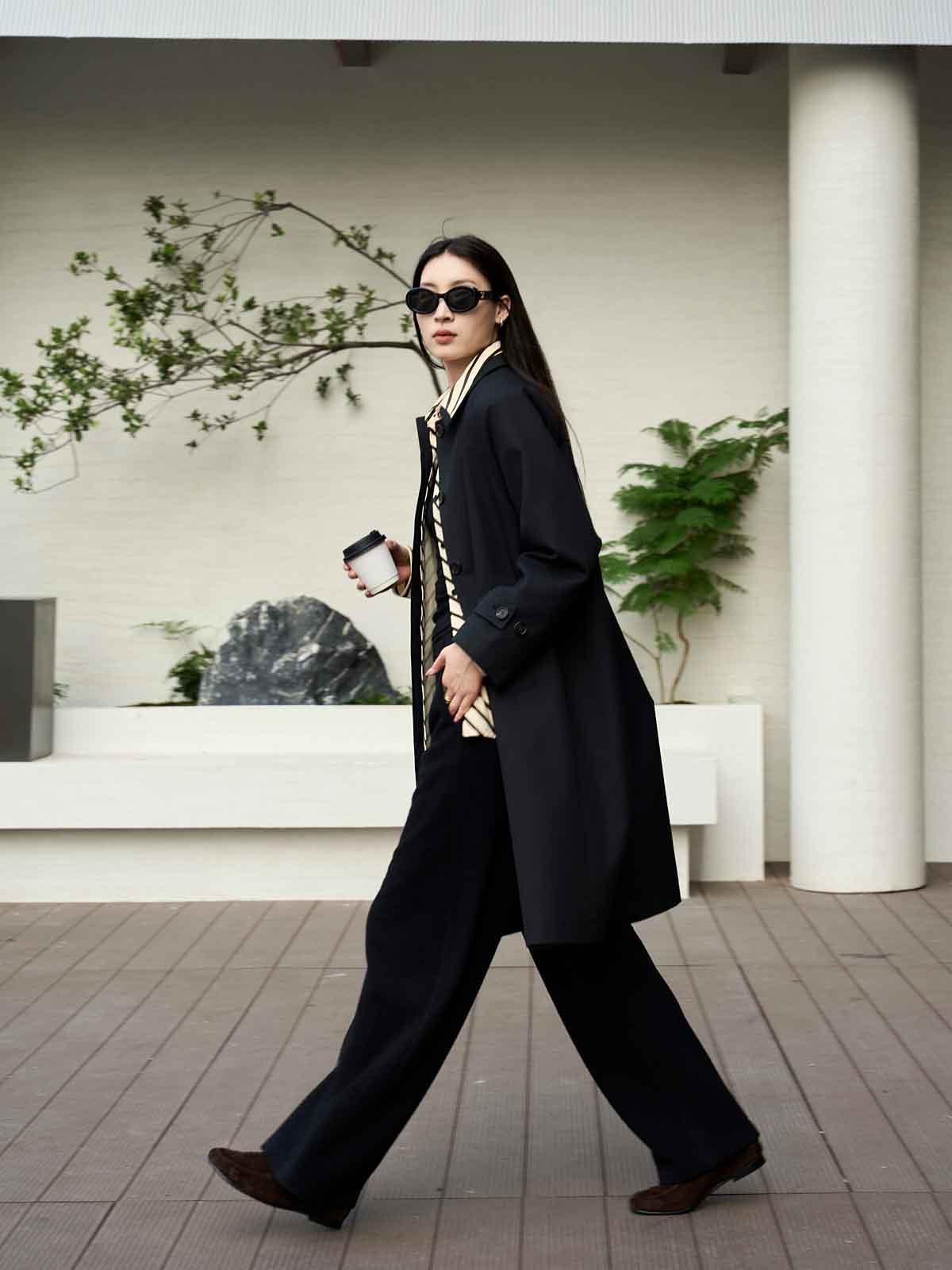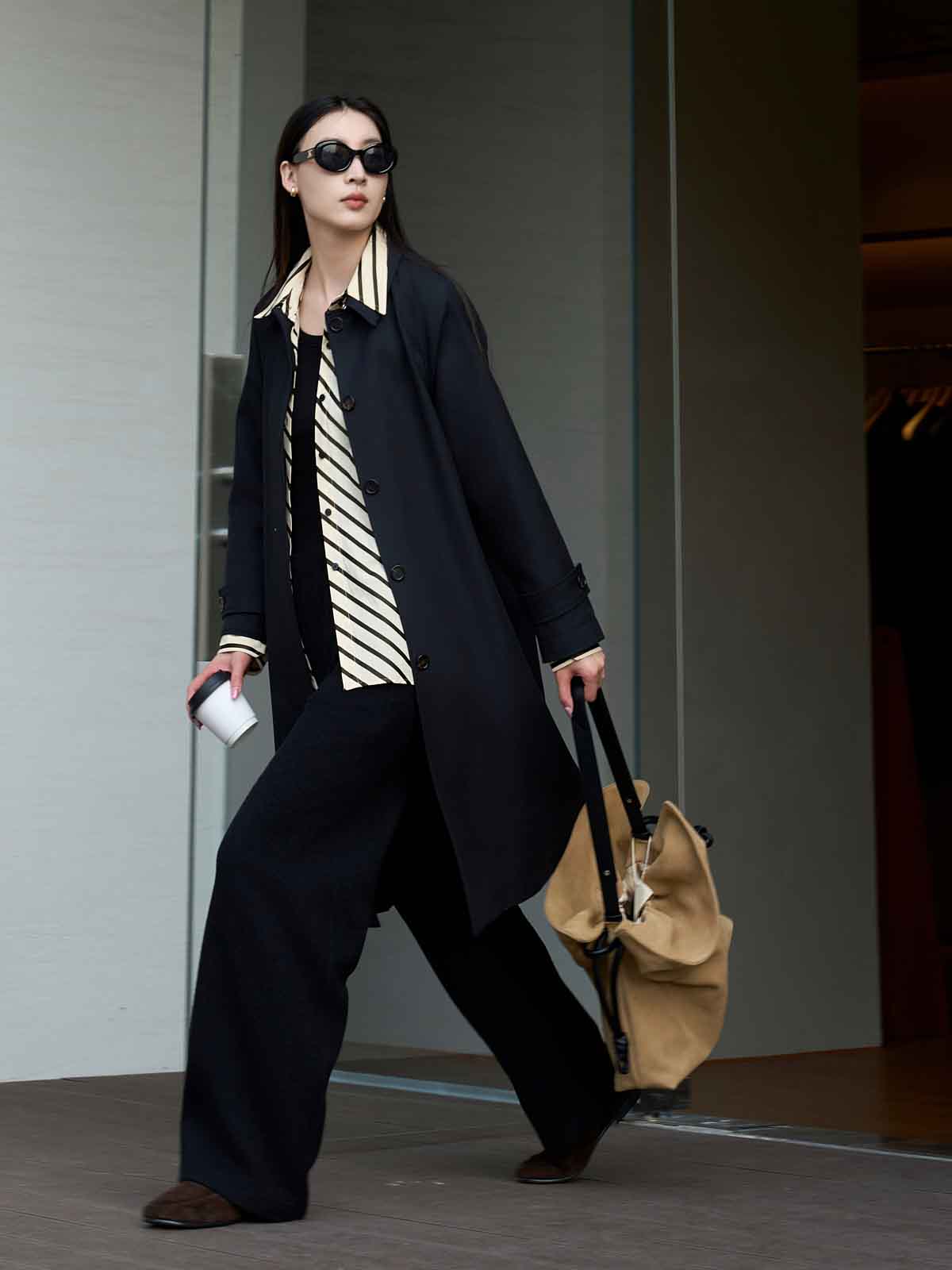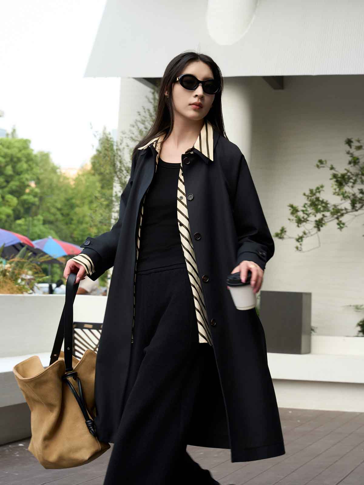时尚界永不过时的经典单品~七分袖黑色长款风衣外套