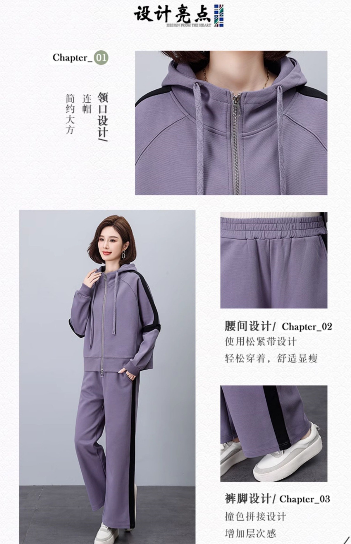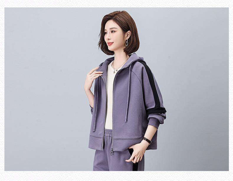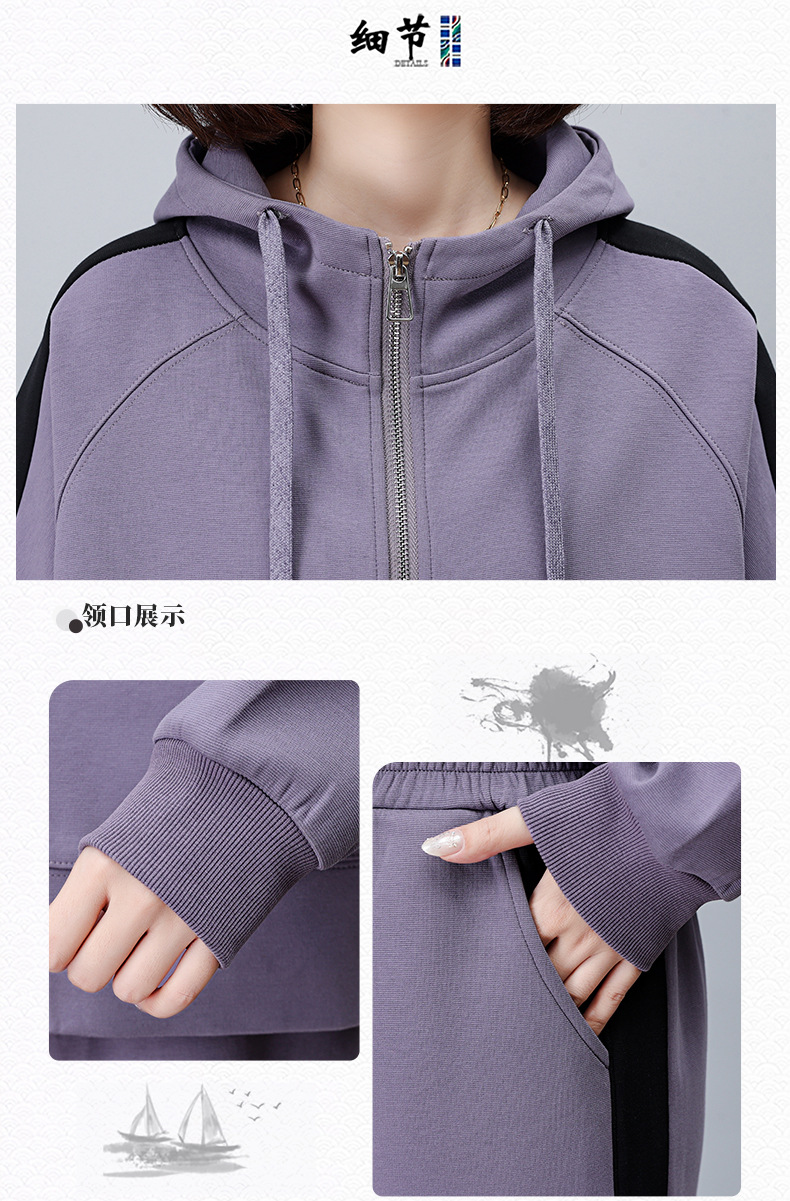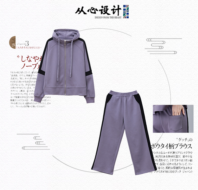 气质时尚减龄运动休闲,撞色卫衣两件套HR-YQL1503