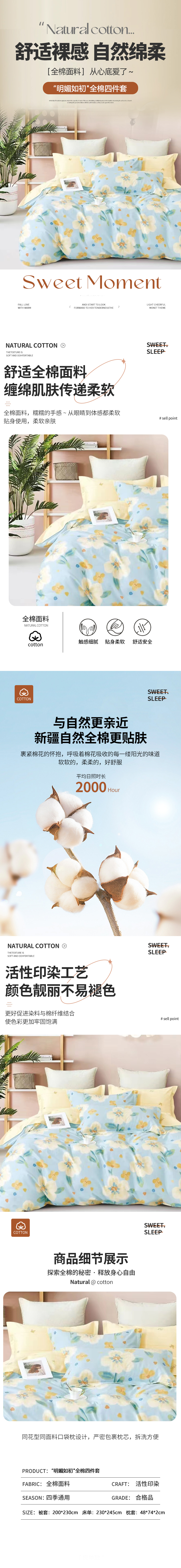 洁丽雅 “明媚如初"全棉四件套 JLY-TJ869 被套 200*230cm