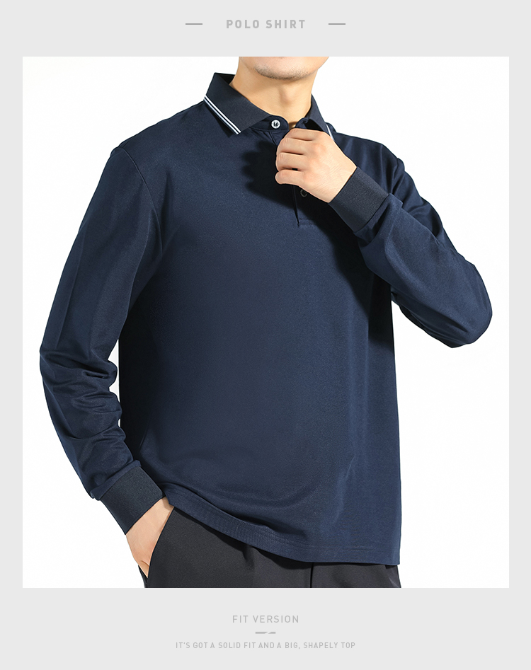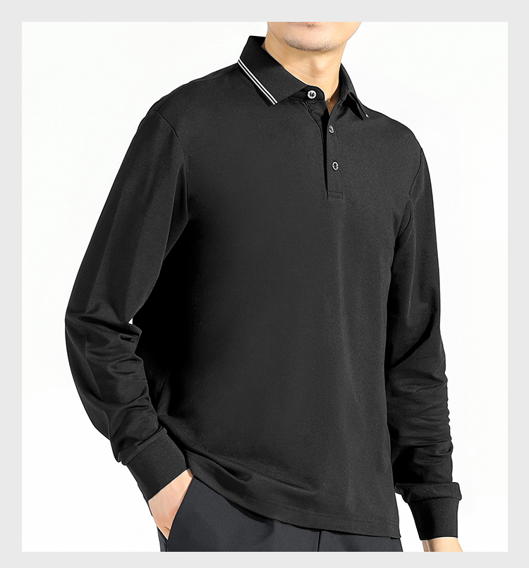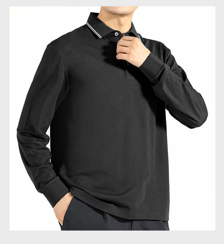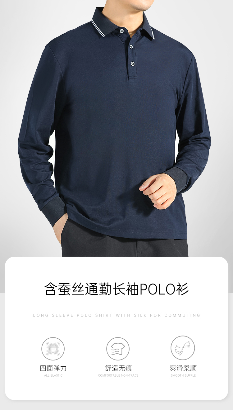 【含蚕丝通勤长袖Polo衫】爽滑无痕Polo杉撞色翻领打底杉