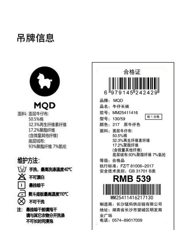【MQD】童装男大童冬季新款儿童休闲风长裤宽松简约版加绒牛仔裤