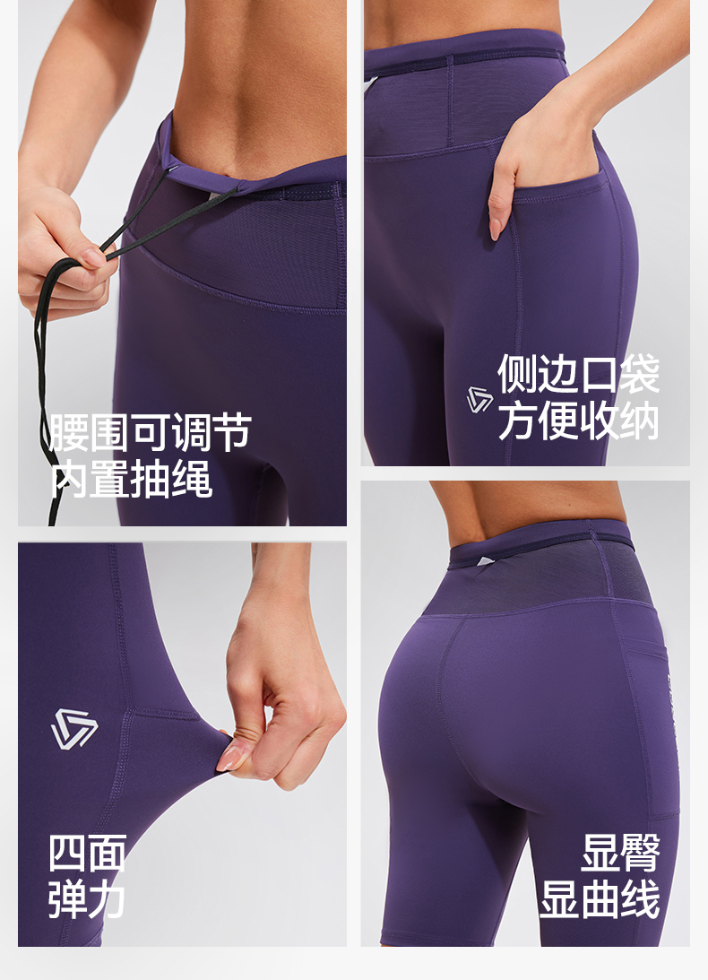 科里芙压缩裤高腰夏季跑步速干弹力多口袋裸感运动多功能运动短裤