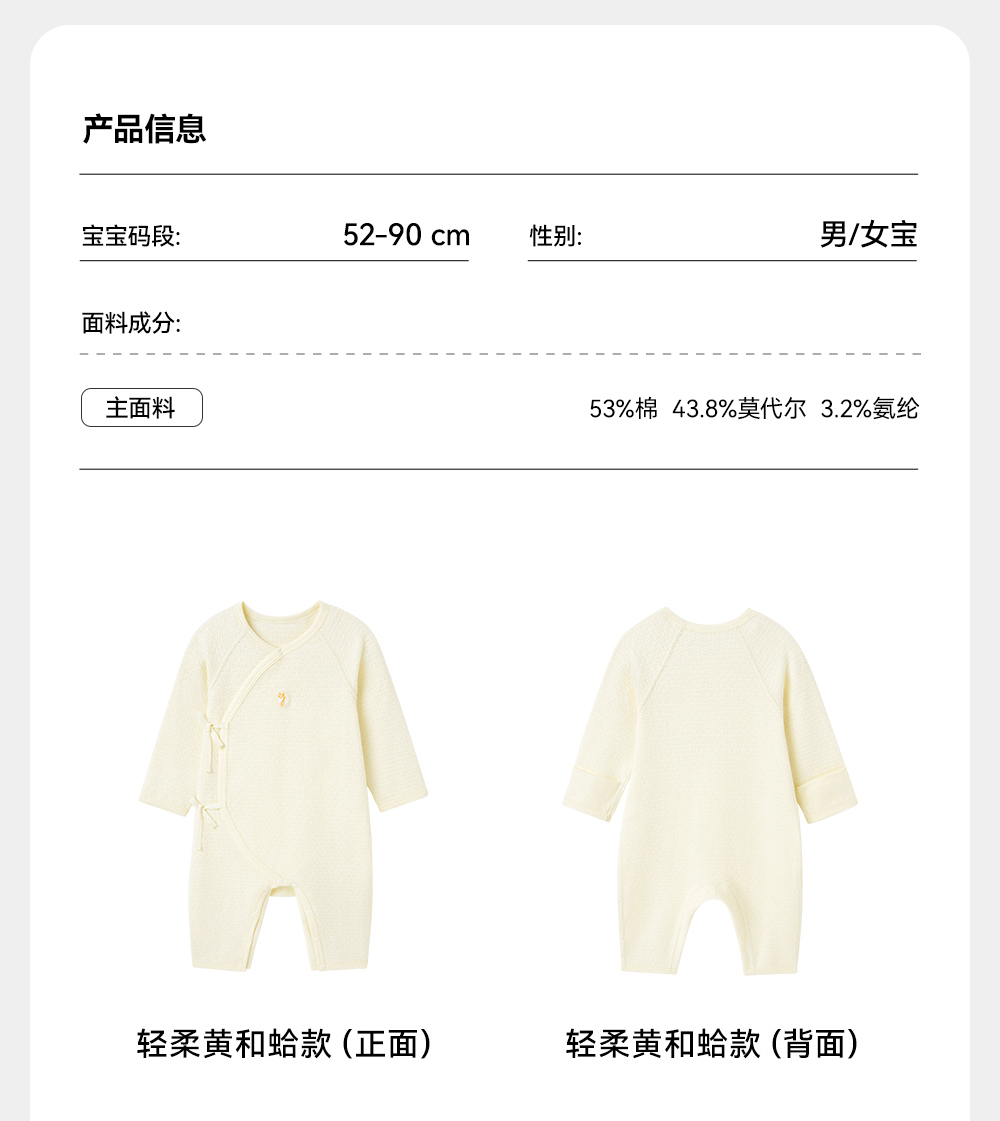 【商场同款】英氏婴儿莫代尔衣服秋冬夹层连体衣新生宝宝爬服新款