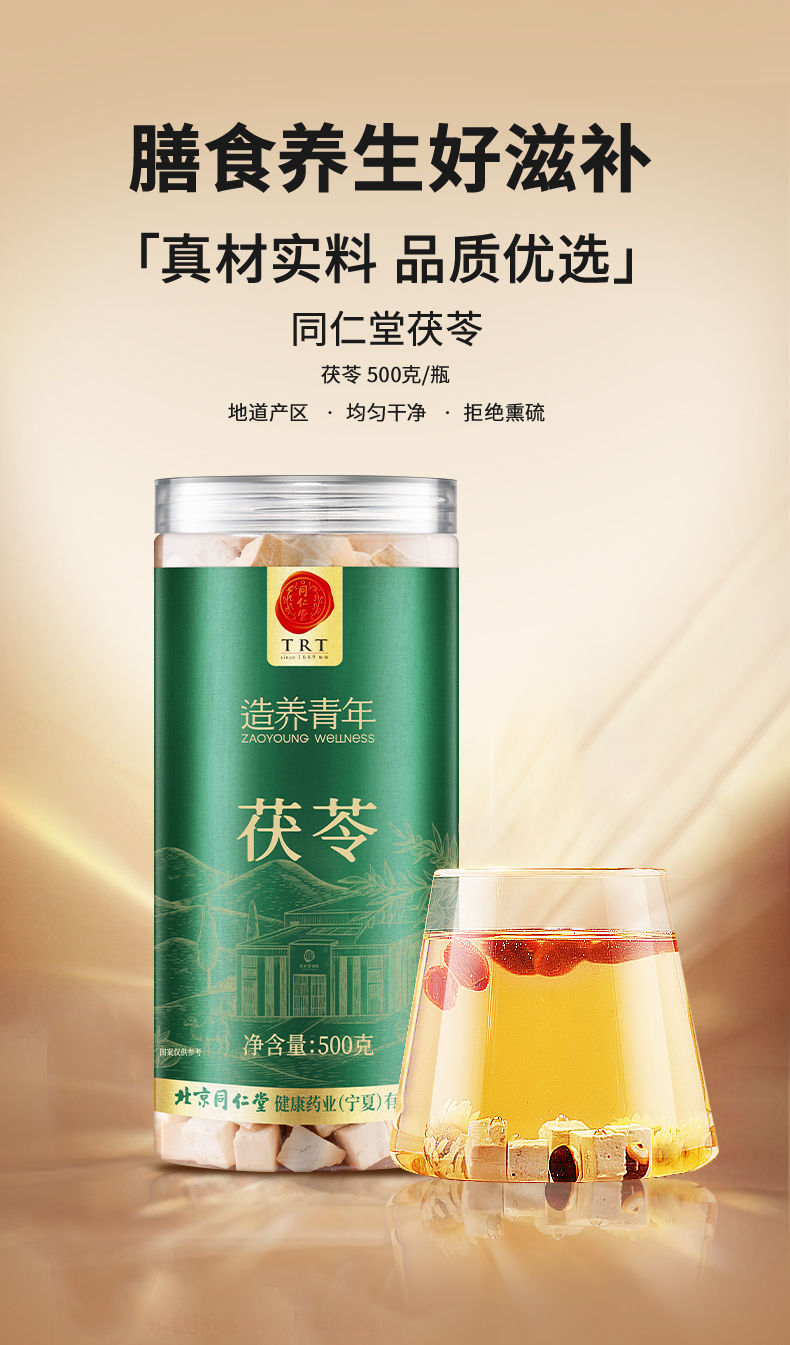 【正宗同仁堂品牌】北京同仁堂 茯苓500克 清爽温润 清香绵软 湖北优质茯苓 拒绝熏硫SY