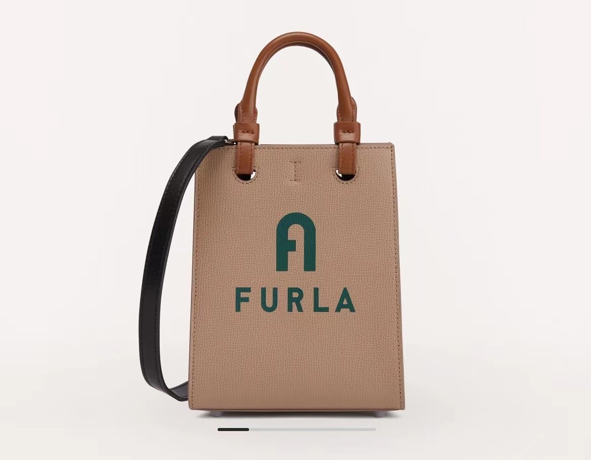 Furla VarsityStyle迷你托特包,品牌标识图案粒纹皮革精制。竖版设计,适合收纳智能手机和其他小件个人随身物品,如钱包或唇膏。配有双手柄和饰皮革嵌件的可调节可拆卸肩带,可作为单肩包或斜挎包使用,携带舒适。