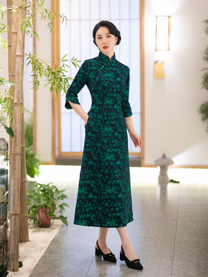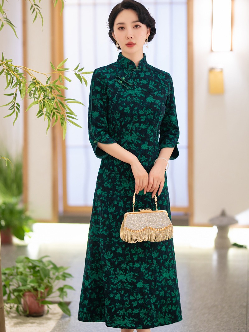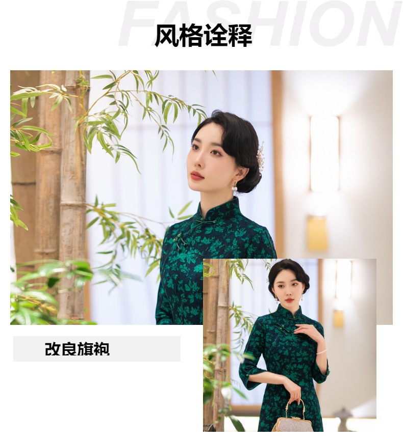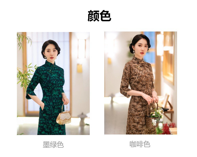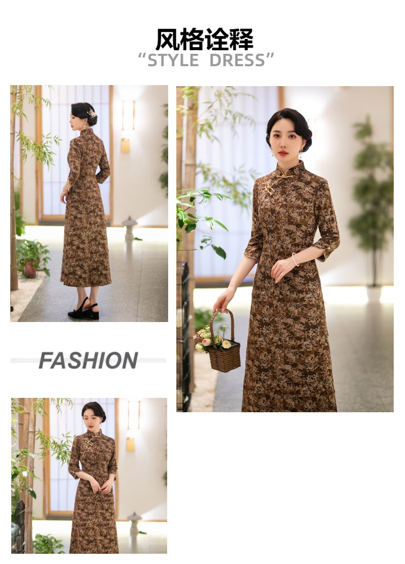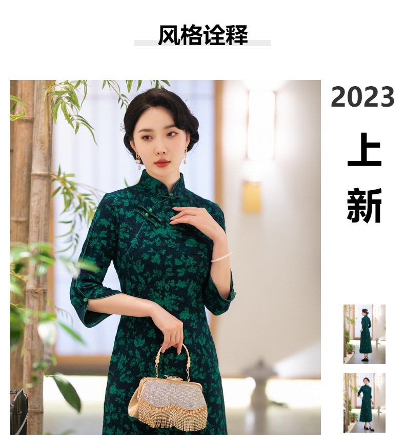 碎花连衣裙长袖女中高贵气质旗袍SYG-713