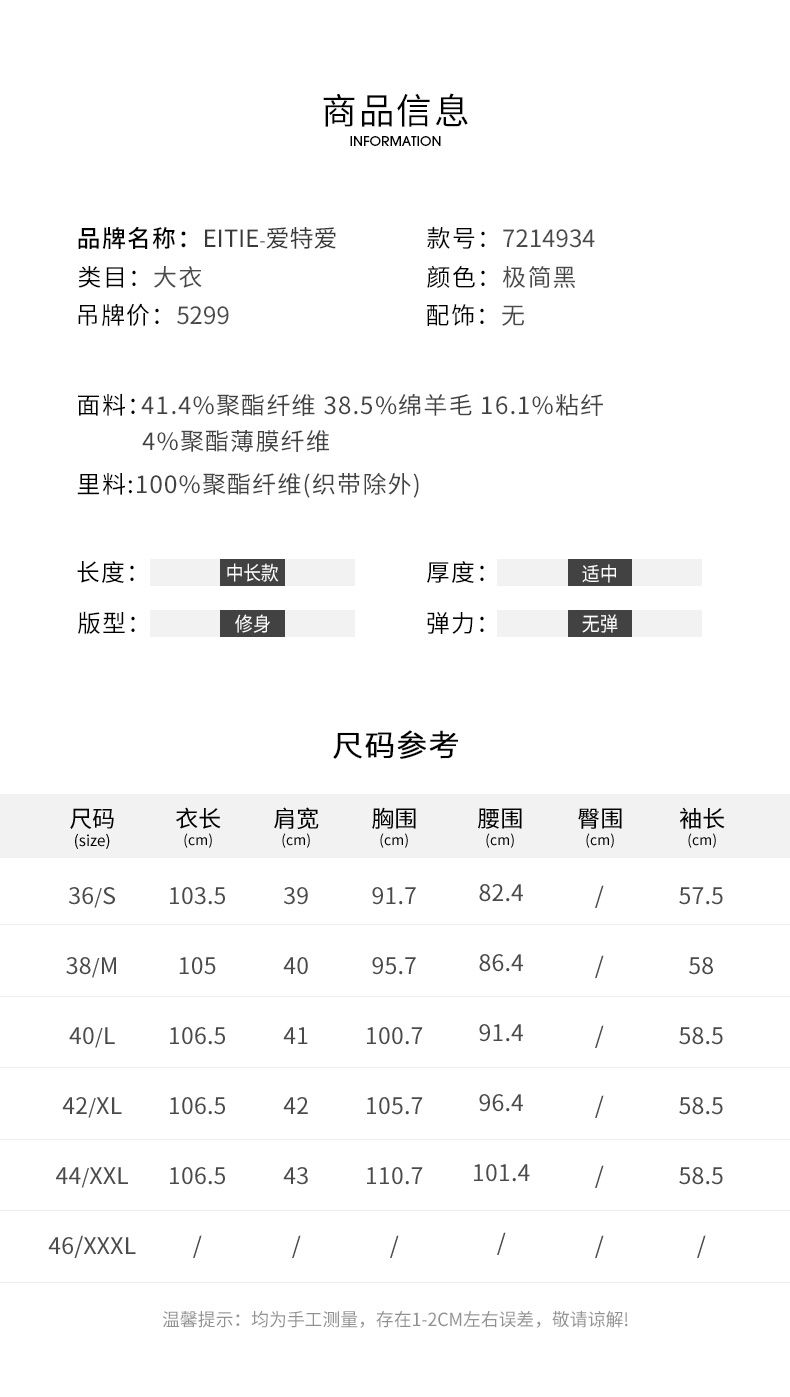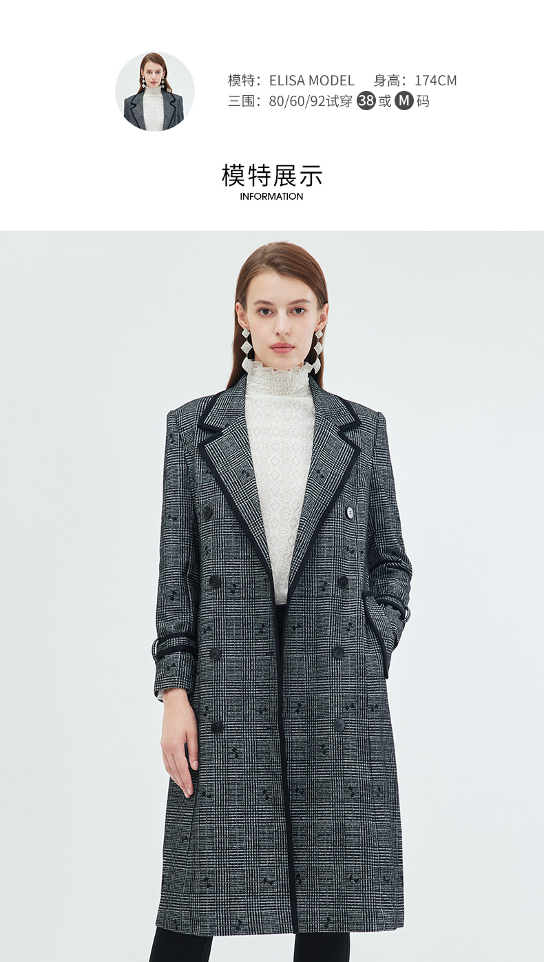 EITIE爱特爱冬季新款经典双排扣大气外套女大衣7214934
