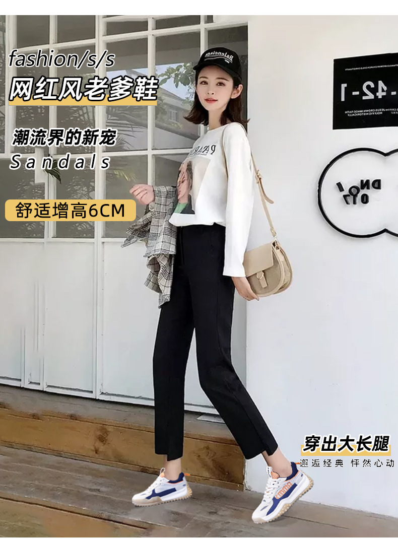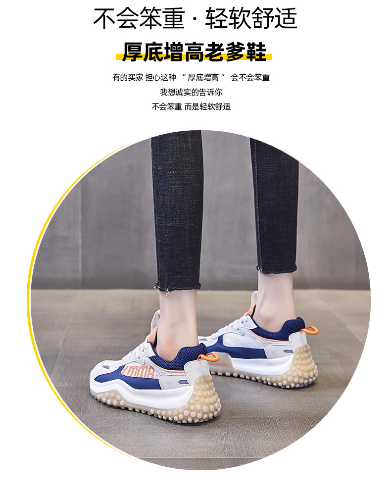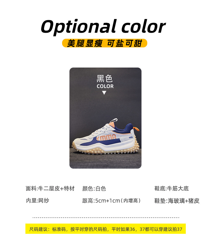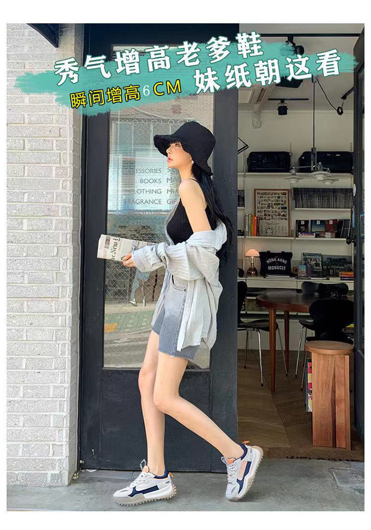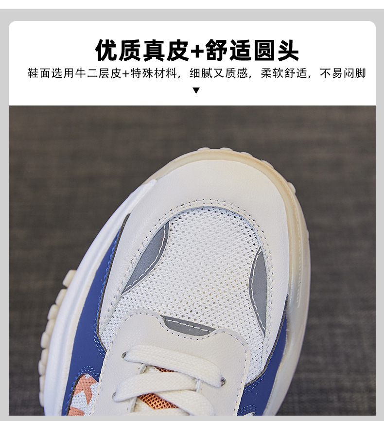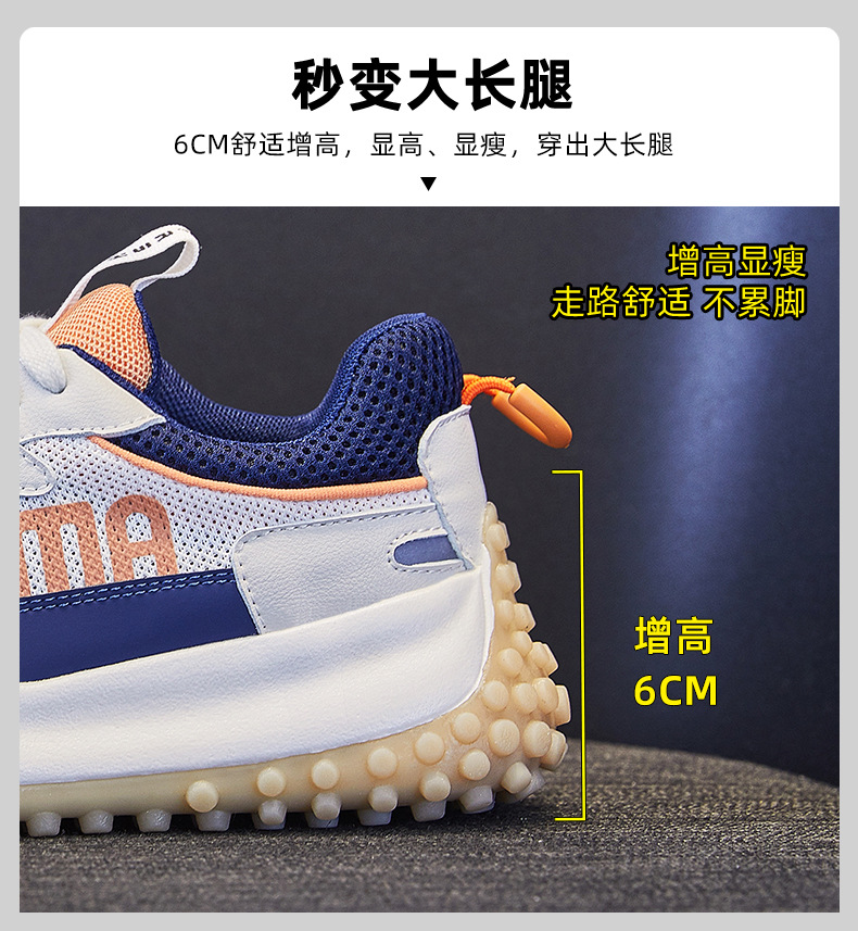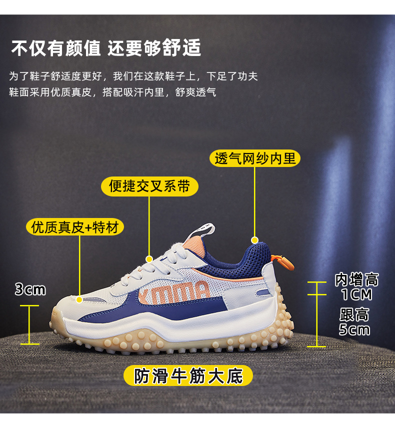 内增高休闲真皮牛筋底,百搭ins潮运动老爹鞋LMS-PM10