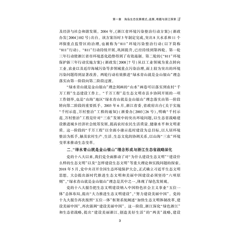 本书立足浙江省社科赋能山区(海岛)高质量发展行动要求,开展以嵊泗县作为浙江省唯一全域海岛县高质量特色发展样本的调研考察,探寻嵊泗县如何践行“绿水青山就是金山银山”的生态发展理念,梳理“生态立县”战略以及“生态优先、绿色发展”的二十年发展历程,循迹溯源“绿水青山就是金山银山”海岛版发展思想、首创示范与典型案例,凝练深化海岛县高质量发展特色之路,以及可供借鉴、具有示范效应的经验启示,助力山区(海岛)高质量发展。