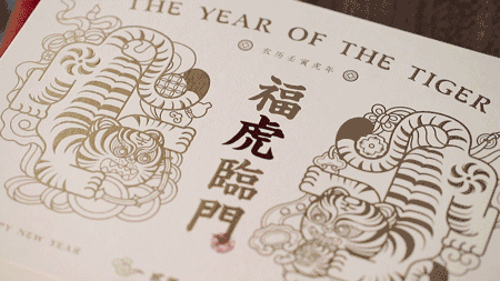 纪念礼盒上的两只虎以中国传统的剪纸风格设计,充满了吉祥“年味”: