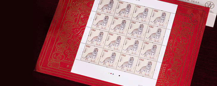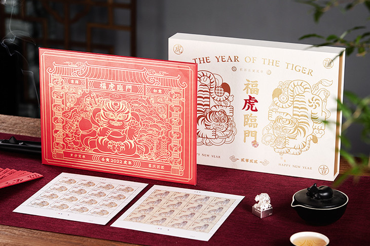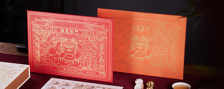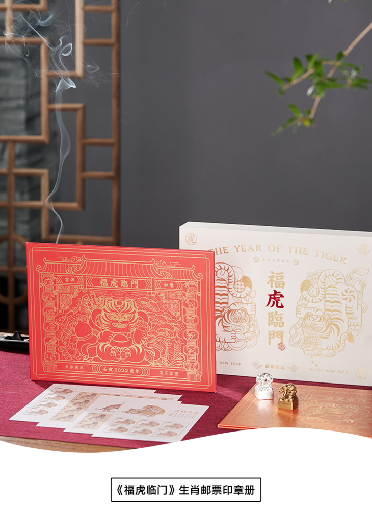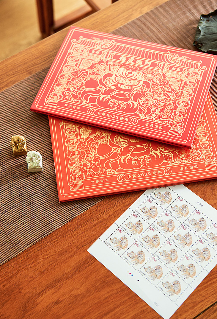 这个邮票纪念册犹如一盒吉祥宝物,展开便是虎年开门红,藏着中国人的福气。